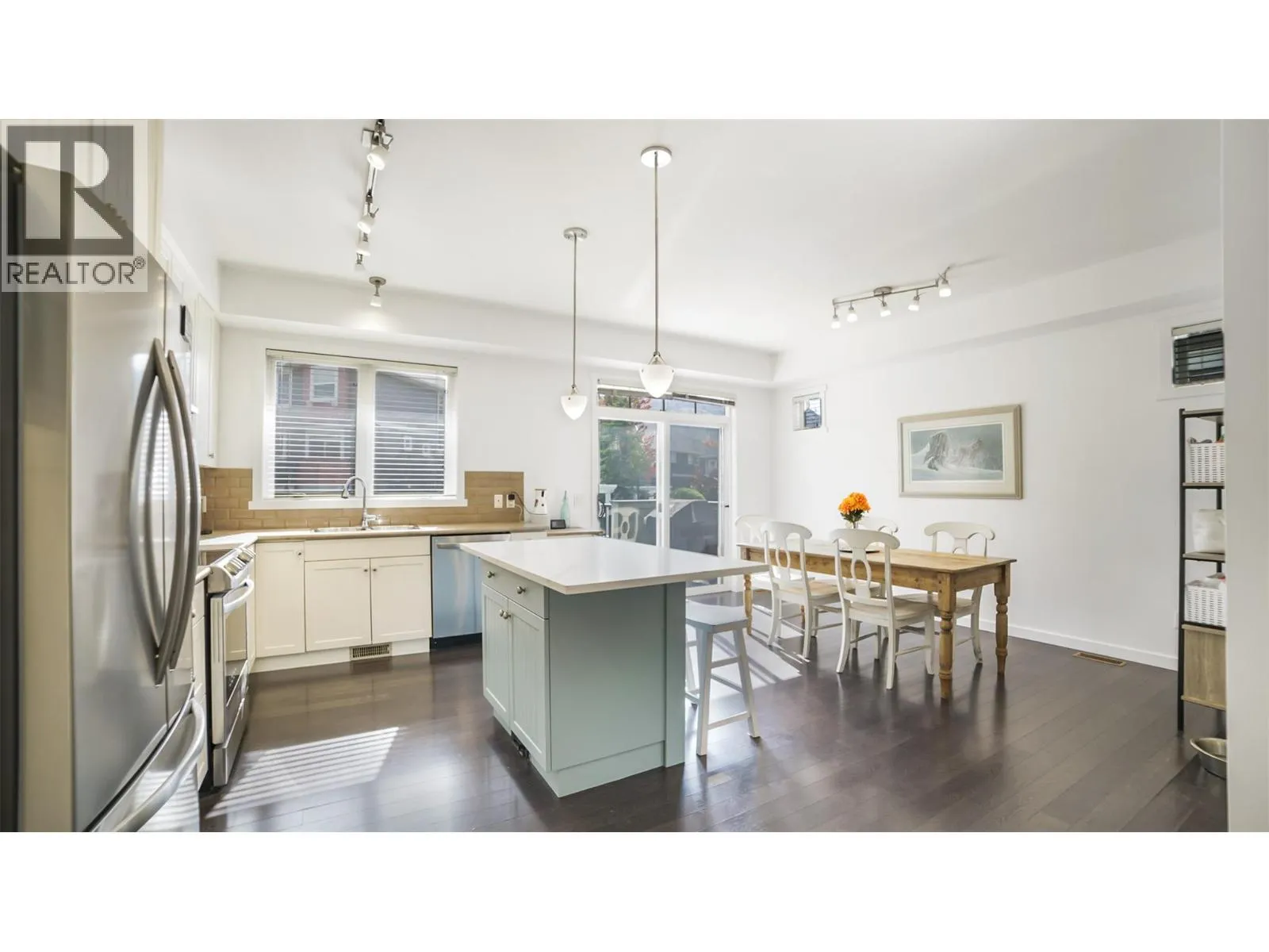 Welcome to 5485 South Perimeter Way in Kettle Valley! This 4 bed, 4 bath townhome offers 1888 sq ft of bright and functional living space designed with families in mind. The open concept main floor is filled with natural light and features 9â ceilings, oversized windows, a kitchen with stainless steel appliances, and a large island. From the kitchen, step out to your patio overlooking the community park. Perfect for BBQs or keeping an eye on the kids. A fenced front yard adds even more space for pets and play. Upstairs, the large primary suite has a walk in closet and a 5 piece ensuite with dual sinks, a soaker tub, and a glass shower. Two additional bedrooms, a full bath, and convenient laundry complete the upper level. The finished lower level has a fourth bedroom plus direct access to a rare double garage with extra storage. With guest parking out back, Amberhillâs private playground, and close proximity to Chute Lake Elementary, hiking trails, and the Village Centre, this home delivers community and convenience. Recent updates include a 2023 heat pump rated to â30 C, new stainless steel kitchen appliances (2022â23), washer/dryer (2022â24), and a full interior repaint in 2024. Enjoy peace of mind for years to come. (id:27476)
