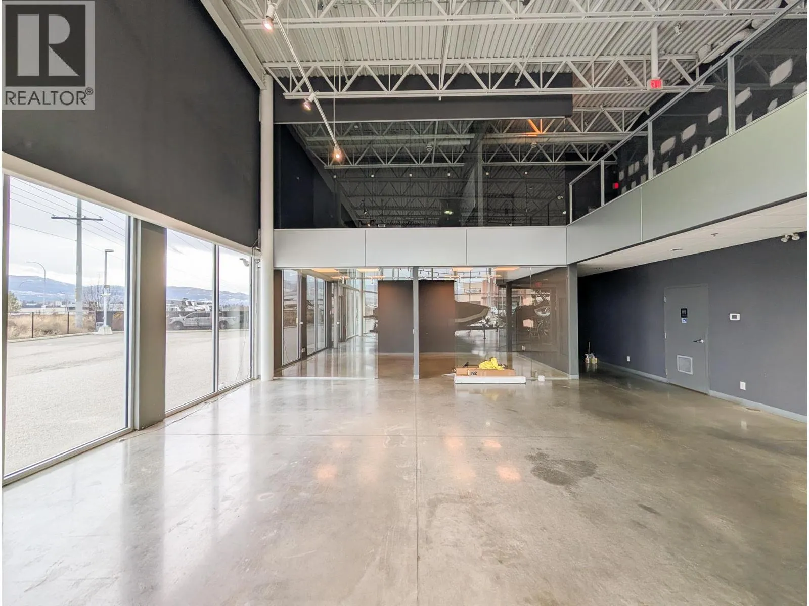 Rare opportunity to lease 14,468 sq. ft. of AAA showroom, shop, and office space, including a bonus 18,000+ sq. ft. Secured yard area. The property benefits from excellent exposure to Highway 97 and convenient access off McCurdy Road. The showroom features expansive glazing, a 16â overhead door, and a large open layout adjacent to a reception area, three private offices, two washrooms, and a storage area. The mezzanine includes one private office, one boardroom, one washroom, an open work area, a staff room, and storage. The shop space on the west side of the building features three 14â overhead doors and 22â clear ceiling height. The additional shop space on the east side of the building includes three 10â overhead doors with direct access to the secured yard. The property is available immediately. Estimated additional rent for 2026 is $5.06/sf. (id:27476)