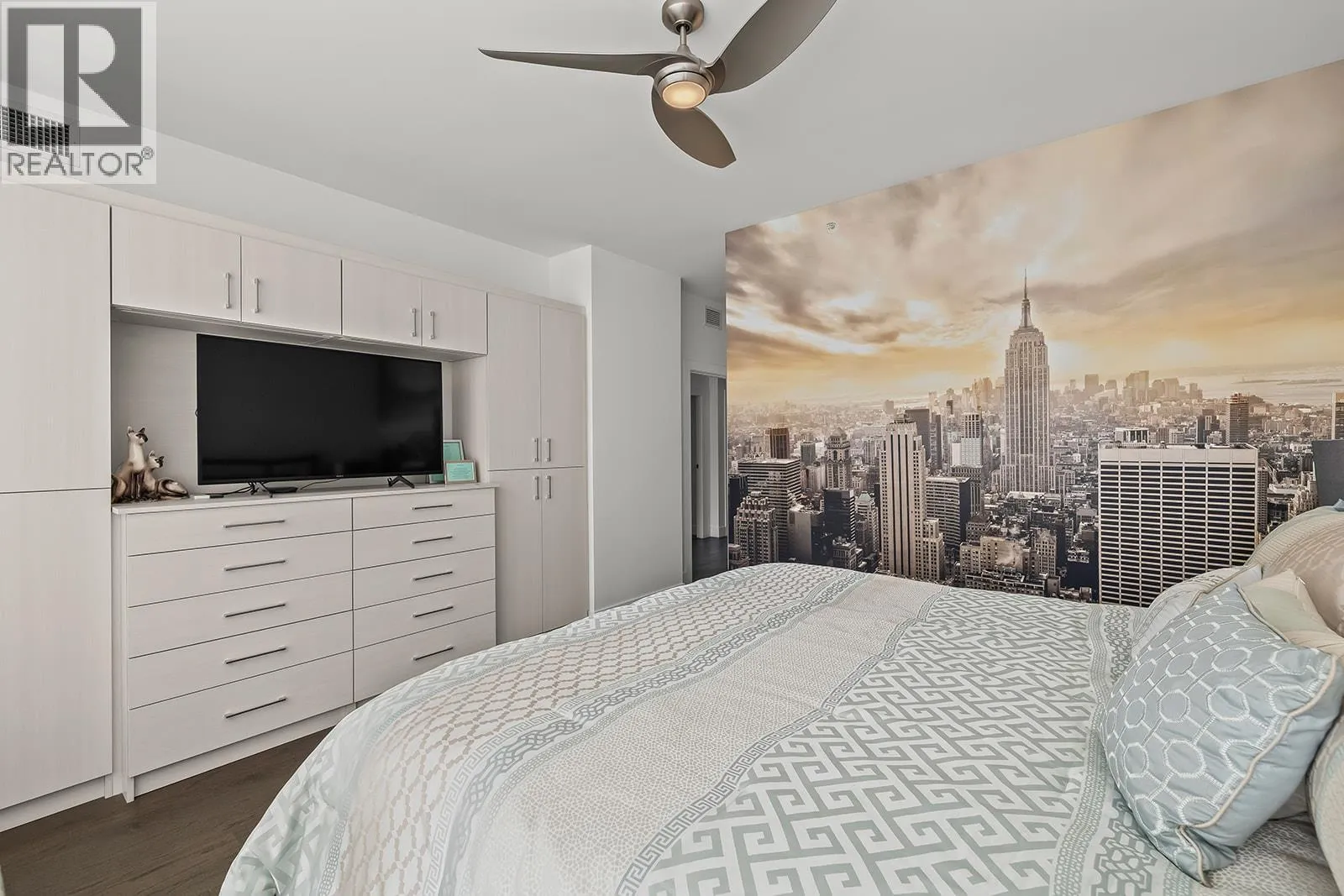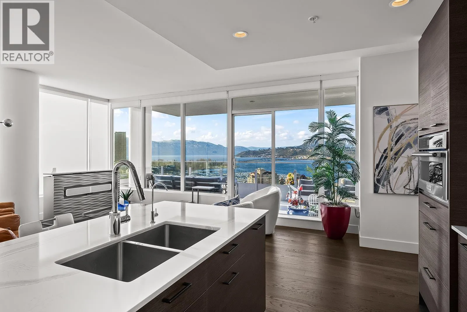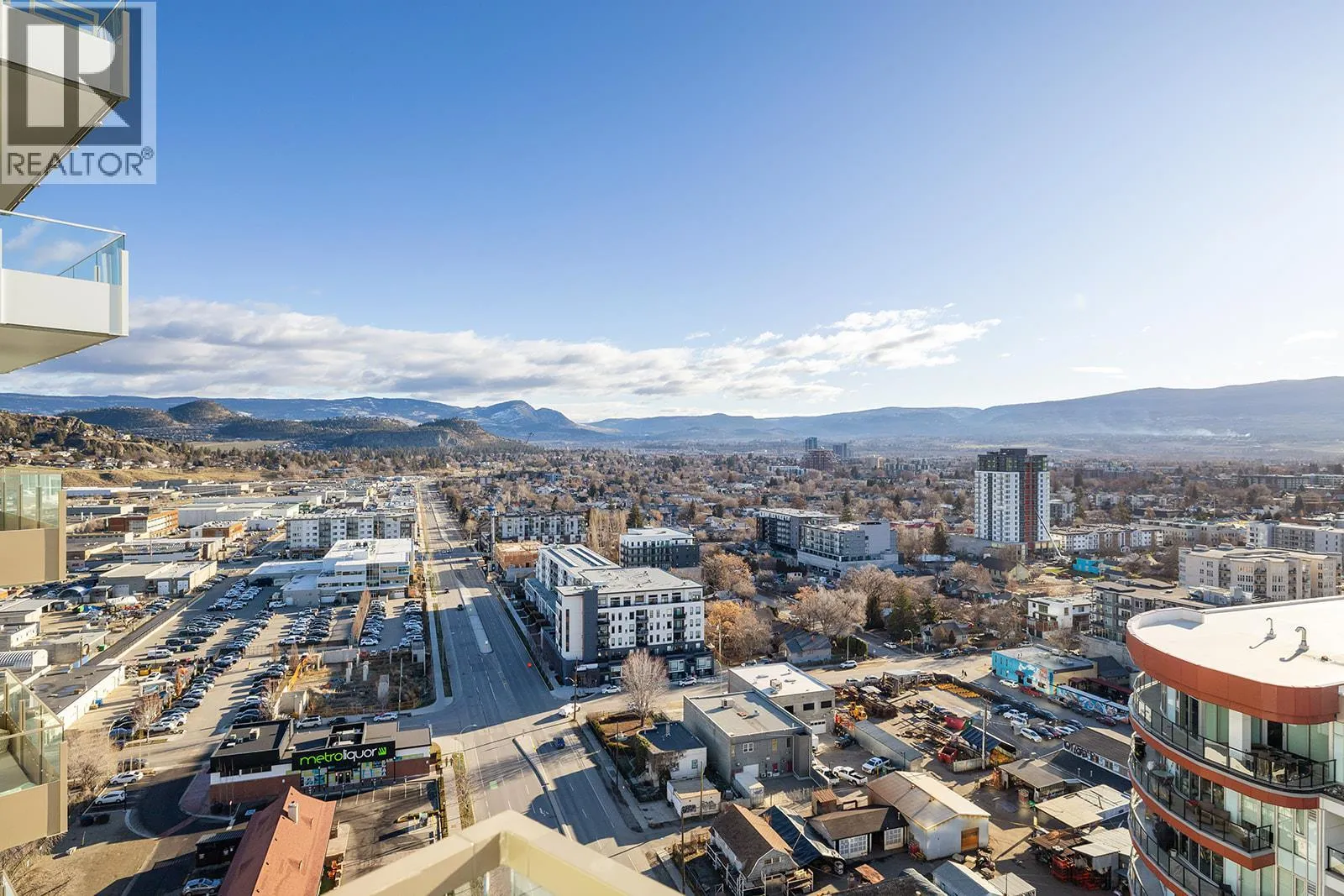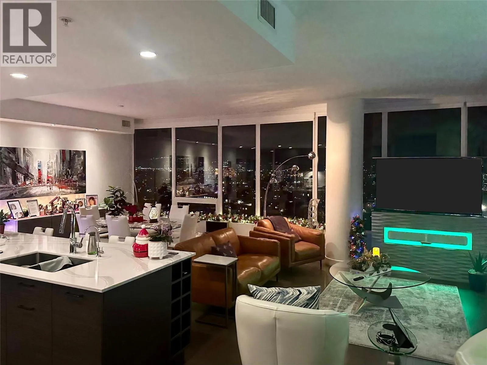 Experience elevated luxury in this stunning corner-unit residence, located at One Water. Step out onto the extended covered deck to take in the most majestic views in Kelowna. Equipped with a gas BBQ hookup, this outdoor space offers a front-row seat to the Yacht Club, the William R. Bennett Bridge, and breathtaking panoramic views of Okanagan Lake and the city skyline. The views continue throughout the home that has approximately $80,000 in meticulous upgrades designed to maximize functionality, storage, and style. The gourmet kitchen features a waterfall quartz countertop, a gas stove, upgraded microwave/convection oven, custom pull-out drawers, water purifier, and a dedicated pantry room with added shelving. The living area is highlighted by custom pot lighting above the hutch, while designer dimmer switches throughout allow you to set the perfect ambiance. The primary suite features custom cabinets with integrated lighting for added storage and aesthetics. The den has been professionally transformed into a functional workspace with a built-in office and cabinetry. Even the utility space has been enhanced with added storage beside the laundry. This offering is completed by a private storage locker that is conveniently larger than most of the standard units in the building. Residents of One Water enjoy first class amenities including two pools, hot tub, fire pits, fitness centre, guest suites and more, all within walking distance to the beach and all downtown has to offer! (id:27476)