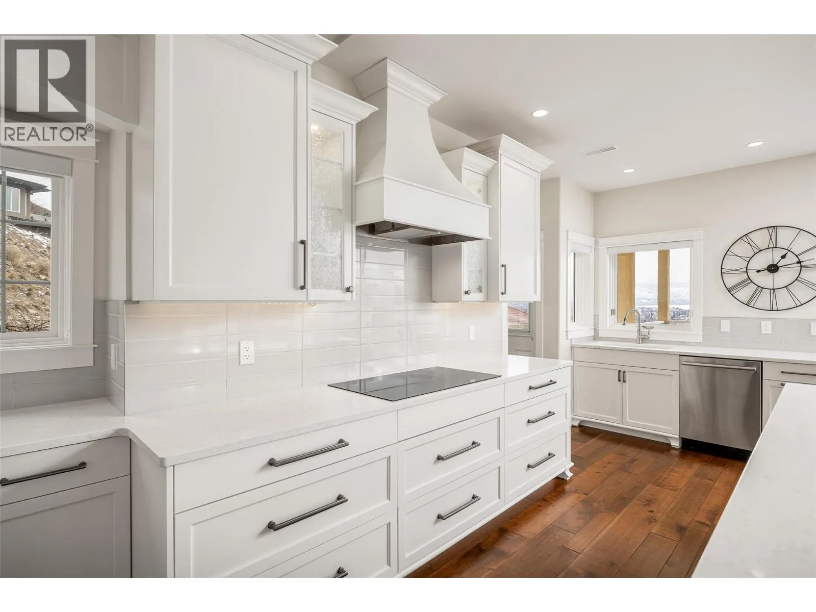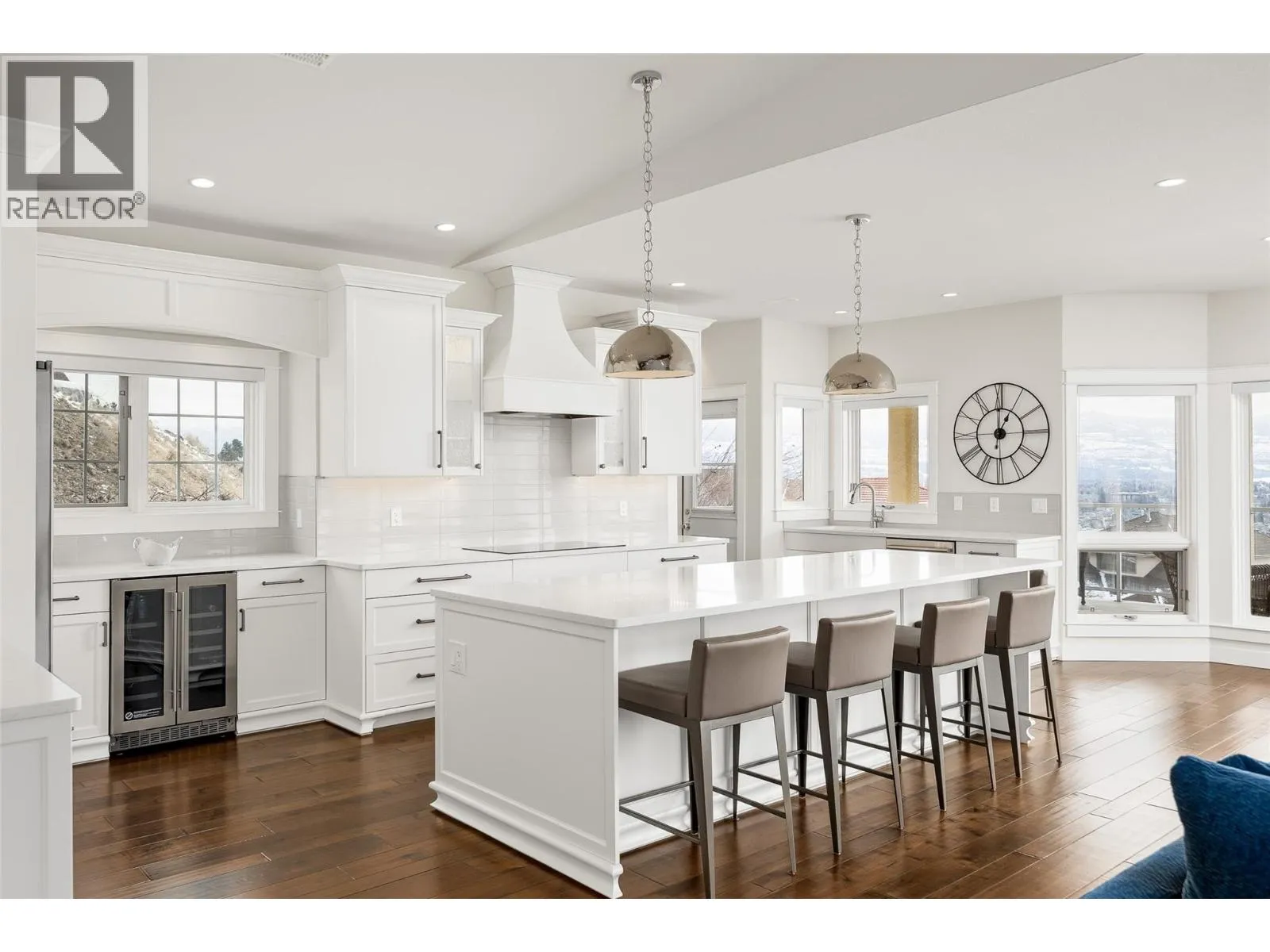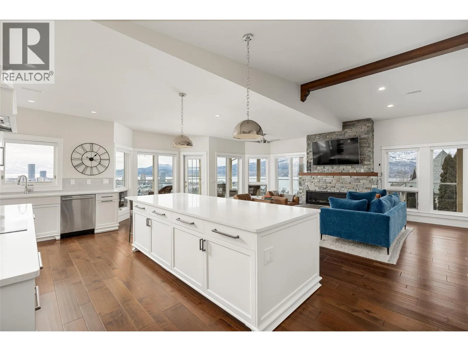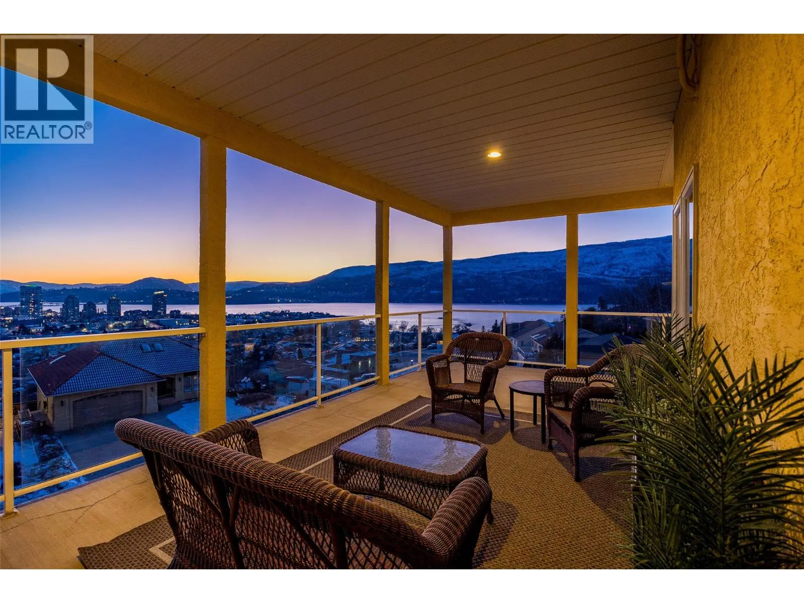 Experience the luxury of penthouse views and total privacyâwithout the rules or costs of strata living. Perched on top of the city yet only minutes from the vibrant downtown core, this exquisite and private hillside estate is nestled into the scenic slopes of Knox Mountain, offering a true âpenthouse-likeâ experience with breathtaking 180-degree lake views. Enjoy high-end living and a low-maintenance lifestyle, all while being surrounded by the established and serene Mount Royal neighbourhood. Inside, the home boasts over $300K in meticulous renovations and features a state-of-the-art kitchen, open-concept living with views from every corner of the home, and two expansive decks perfect for enjoying breathtaking sunsets, city lights, and the serene surroundings. The versatile lower level currently functions as a fully finished 1 bed/ 1 bath legal suite which could easily be converted into an expansive wet bar and entertainment zone to suit your needs. Set on a private 0.4-acre lot, the low-maintenance yard ensures tranquility and privacy, with ample parking for an RV or boat. Located within minutes of scenic walking trails, beaches, boat launch, dog park, and the bustling downtown core â This home is the epitome of luxury, privacy, and convenience, offering the ultimate elevated lifestyle. Contact our team for a full feature list and to book your private viewing of this incredible home. (id:27476)