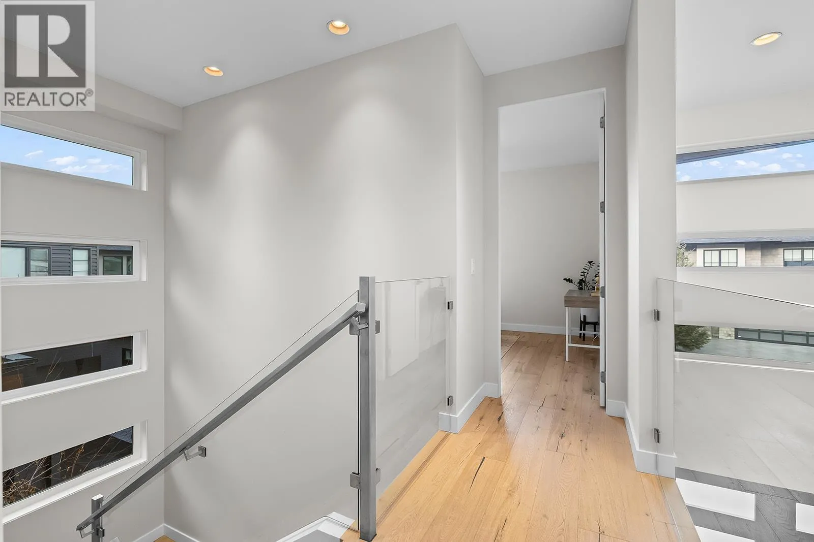 Welcome to 1091 Westpoint Drive, a stunning executive home perched at the summit of Woodland Hills, one of Kelownaâs most prestigious addresses. With over $350,000 in recent improvements and upgrades, this residence has been thoughtfully designed, built, & finished to reflect its elite setting. This is a home that truly rewards coming homeâideal for busy professionals, productive work-from-home days, entertaining friends & family, or enjoying relaxed family weekends. The main floor layout is exceptional, featuring a spacious great room with generous living & dining areas capable of hosting a dozen or more guests. The gourmet kitchen will impress any home chef, offering premium appliances including a double-door refrigerator, 6-ring gas stove, oversized island, & Quartz countertops. A large office/den with a striking floating carbon fibre desk accommodates multiple workstations & a glass-fronted wine room adds function & flair. The primary suite on the main floor is a private retreat, complete with a spa-inspired ensuite featuring a soaker tub, walk-in shower, & direct access to a primary-adjacent hot tub. Upstairs, four additional spacious bedrooms are connected by a central loft and media area with a built-in wet bar, plus access to two upper decks, one with outdoor fireplace & lake view. Additional features include white oak plank flooring, in-floor heating on the main, instant hot water on demand, smart lighting, 6-zone audio, & dual 5.1 surround systems. (id:27476)
