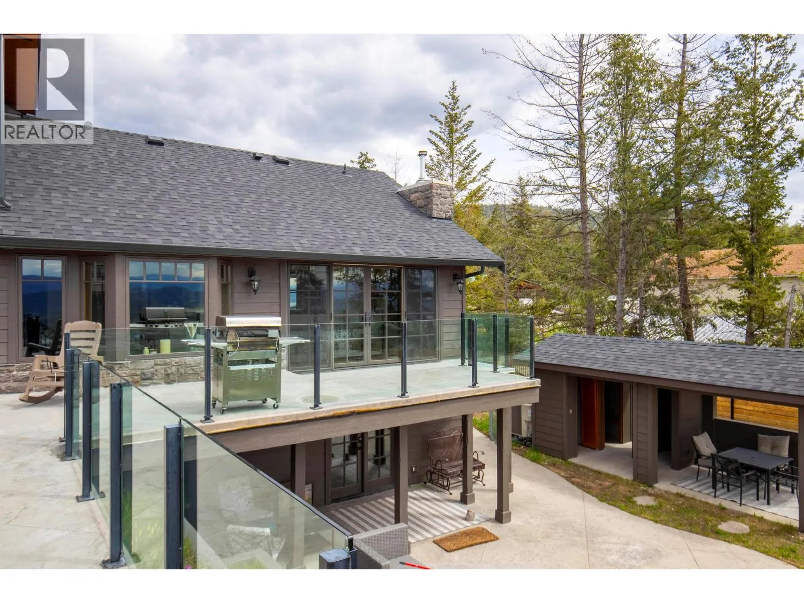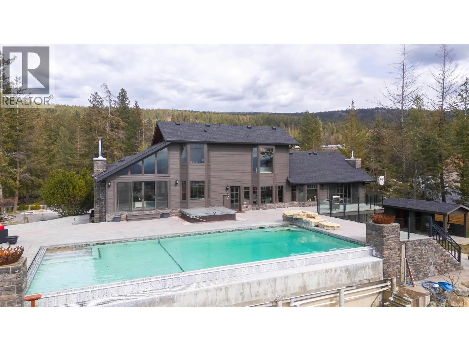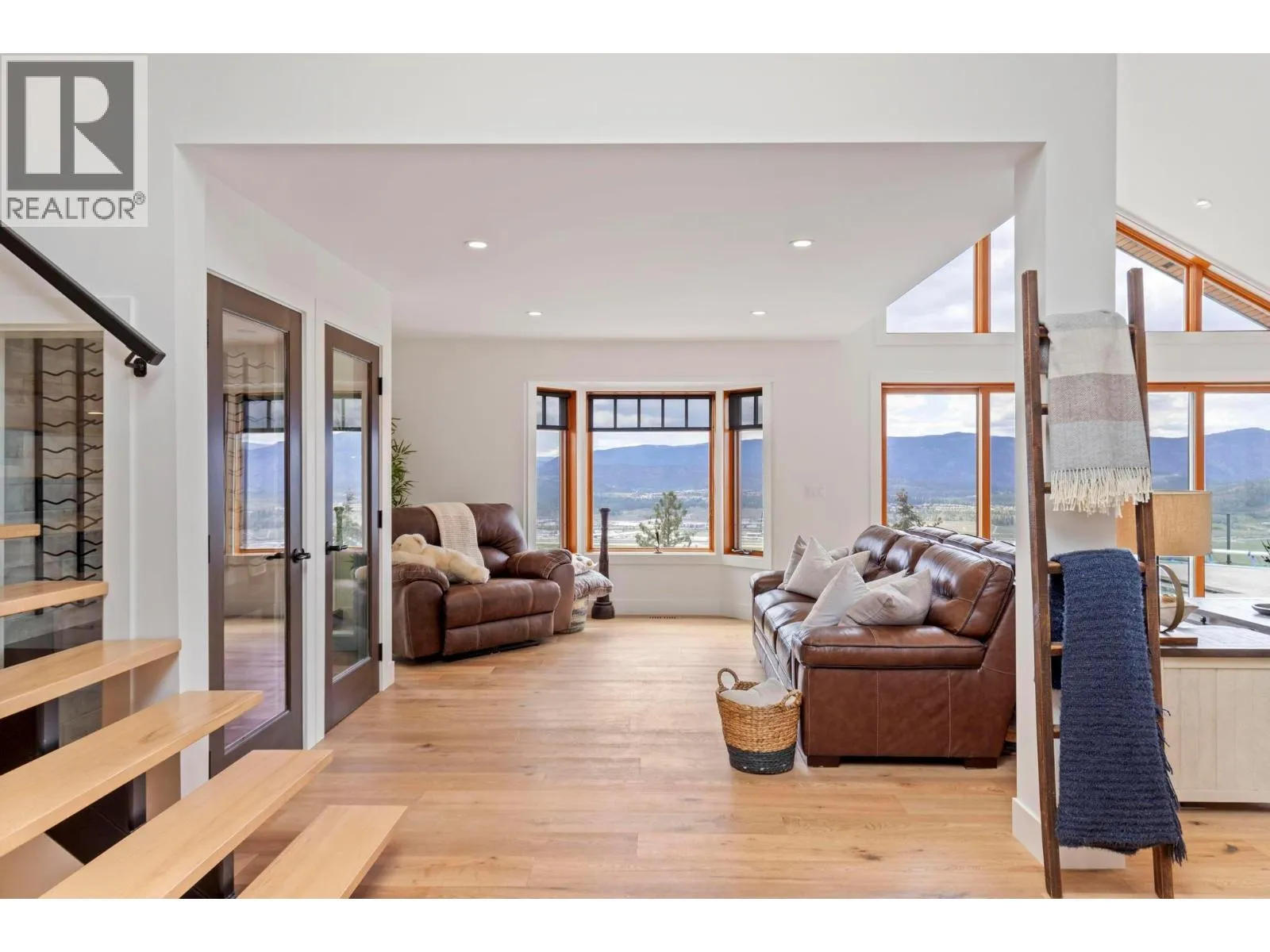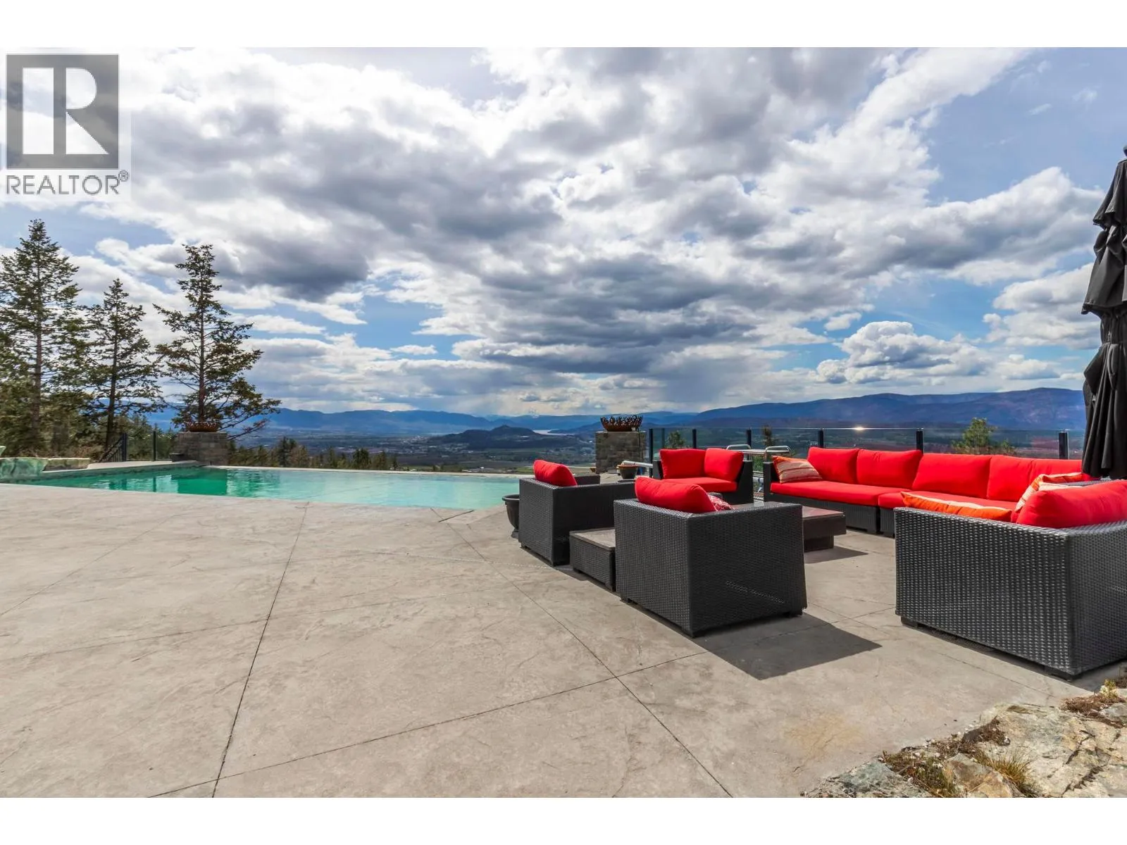 Over 6000 square foot recently renovated six bedroom, six bathroom residence situated on 9.364 acres of land in the Ellison area of Kelowna with a huge pool, lake views, and more. The home has been renovated from top to bottom and down to the studs, including newer electrical, plumbing, drywall, insulation, exterior (including roof), all cosmetic finishings, and more, making this a showstopping renovation by Caliber Developments. Through the gated entry, you are immediately drawn to the wood and stone exterior of the home, with a huge oversized triple car garage and additional side garage, perfect for a dedicated workshop. The living room with over height ceilings/windows is complimented by a wood-burning stove and a cooled wine room. Down a half-level is the new kitchen, complimented by brand-new appliances, an emphatic double island, and a family room, all opening up to the outdoor living space for a perfect indoor/outdoor transition. Off the kitchen is a powder room, and bedroom/office. Upstairs, the family-friendly layout offers three bedrooms, including a spacious master bedroom with his/her sinks, a freestanding tub, and tiled shower. There is a 35' by 34' recreational room, perfect for a studio/office, gym, kids room, etc, with a bathroom and rough-ins for a bar. There is a fully self-contained legal suite in the basement, great for guests! Outside, the infinity pool offers expansive views of the lake and valley ahead, and concrete areas for entertaining. (id:27476)