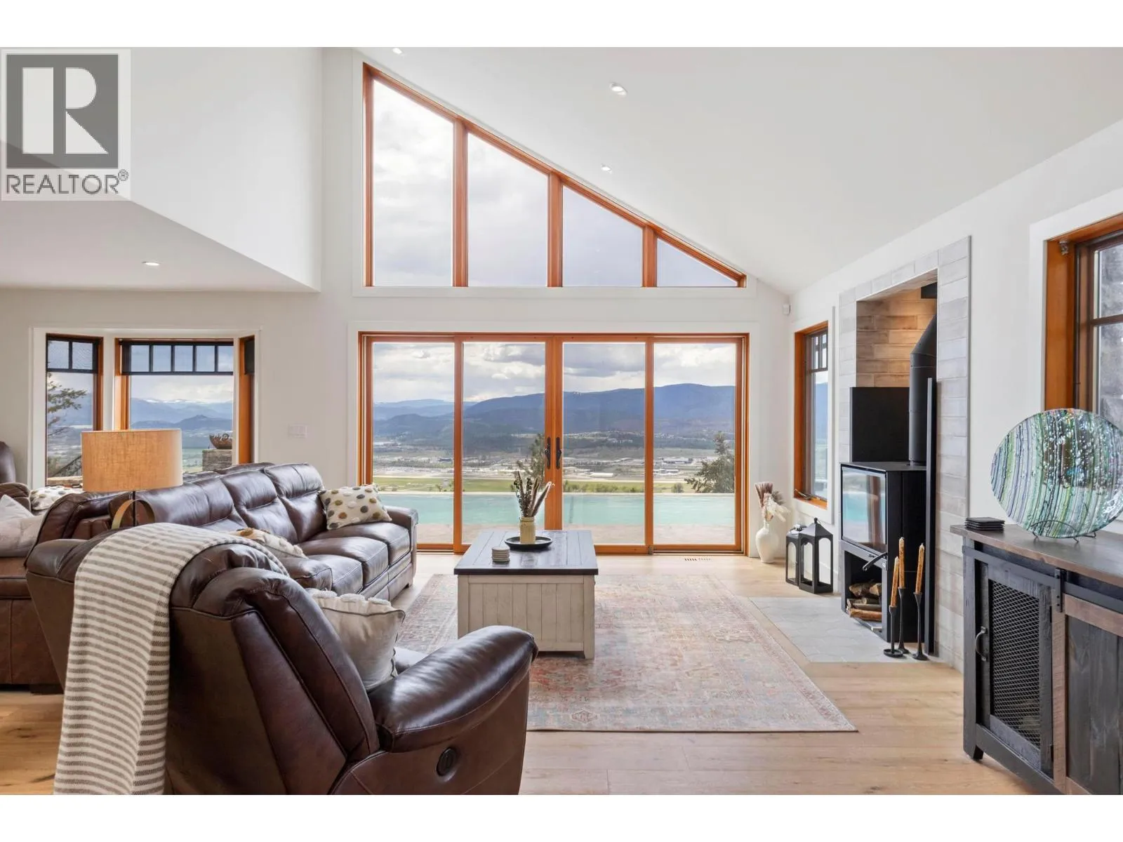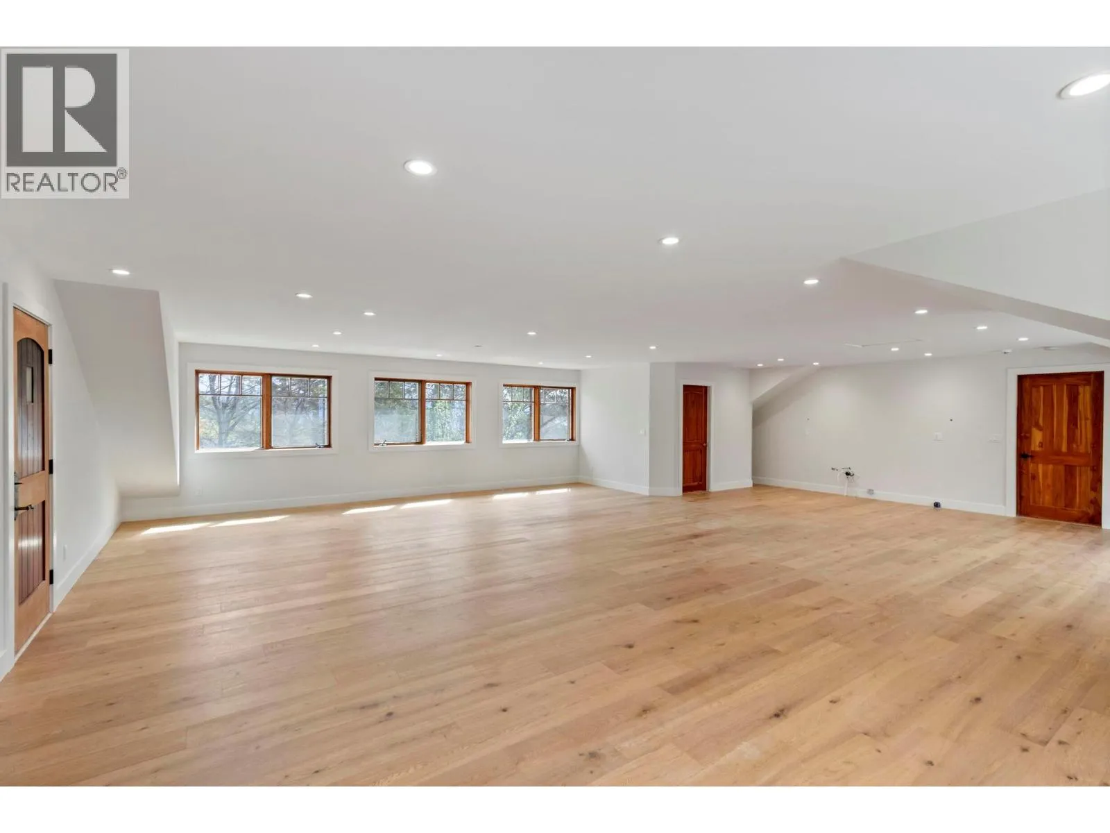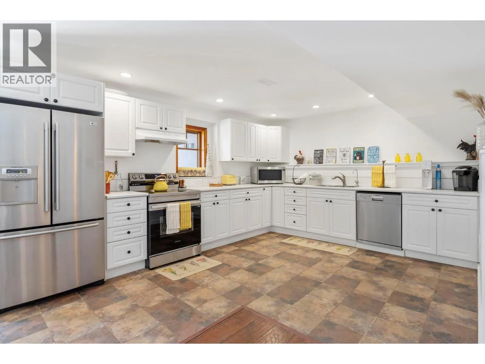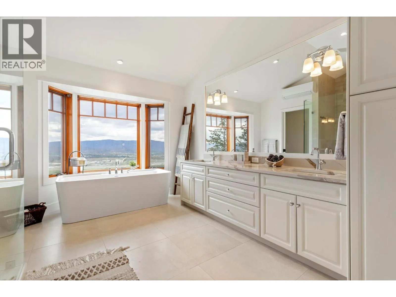 Over 6000 square foot recently renovated six bedroom, six bathroom residence situated on 9.364 acres of land in the Ellison area of Kelowna with a huge pool, lake views, and more. The home has been renovated from top to bottom and down to the studs, including newer electrical, plumbing, drywall, insulation, exterior (including roof), all cosmetic finishings, and more, making this a showstopping renovation by Caliber Developments. Through the gated entry, you are immediately drawn to the wood and stone exterior of the home, with a huge oversized triple car garage and additional side garage, perfect for a dedicated workshop. The living room with over height ceilings/windows is complimented by a wood-burning stove and a cooled wine room. Down a half-level is the new kitchen, complimented by brand-new appliances, an emphatic double island, and a family room, all opening up to the outdoor living space for a perfect indoor/outdoor transition. Off the kitchen is a powder room, and bedroom/office. Upstairs, the family-friendly layout offers three bedrooms, including a spacious master bedroom with his/her sinks, a freestanding tub, and tiled shower. There is a 35' by 34' recreational room, perfect for a studio/office, gym, kids room, etc, with a bathroom and rough-ins for a bar. There is a fully self-contained legal suite in the basement, great for guests! Outside, the infinity pool offers expansive views of the lake and valley ahead, and concrete areas for entertaining. (id:27476)