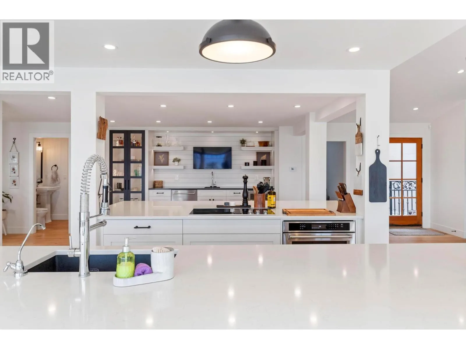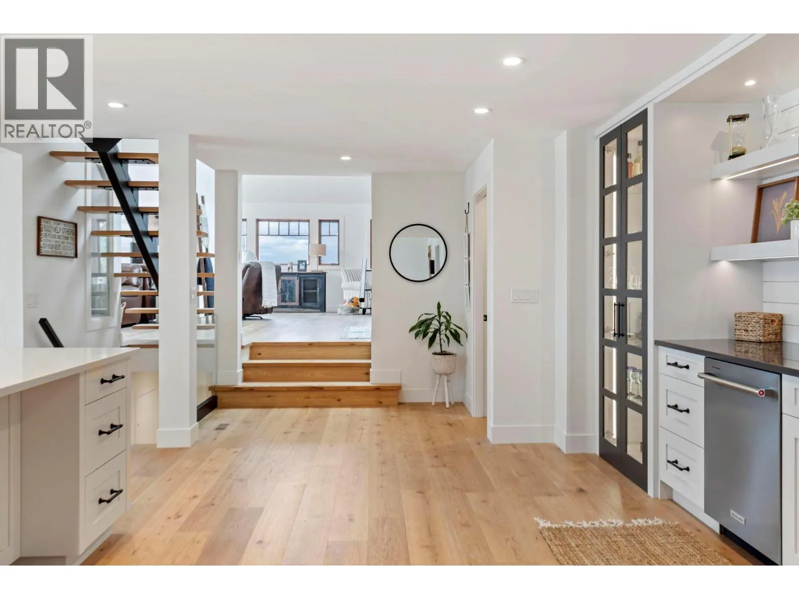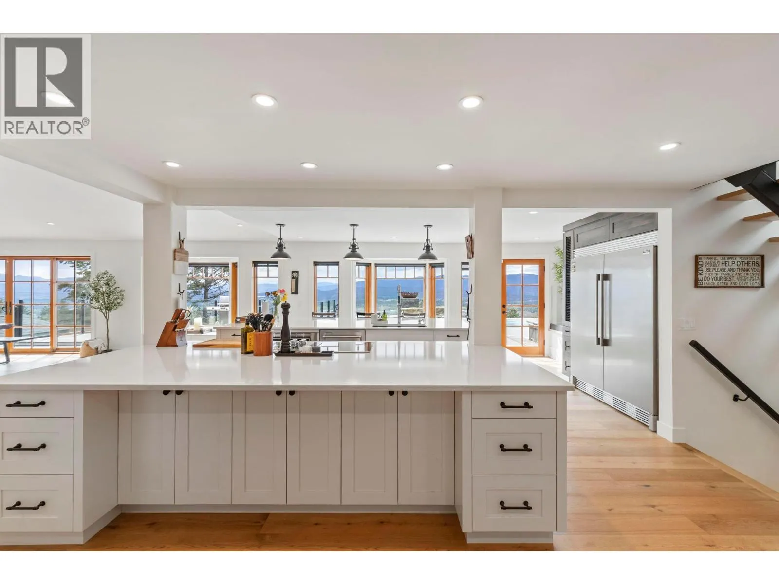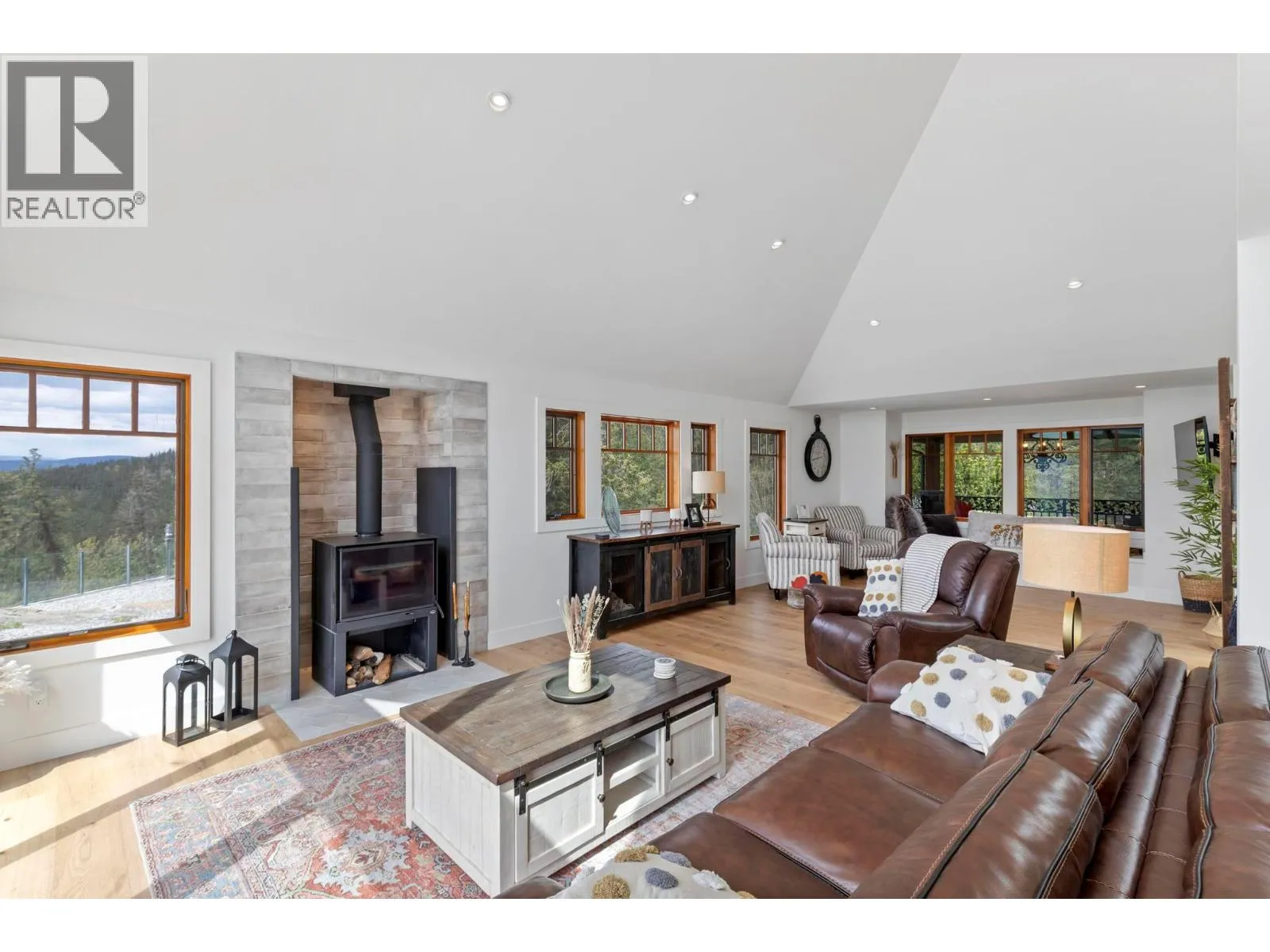 Over 6000 square foot recently renovated six bedroom, six bathroom residence situated on 9.364 acres of land in the Ellison area of Kelowna with a huge pool, lake views, and more. The home has been renovated from top to bottom and down to the studs, including newer electrical, plumbing, drywall, insulation, exterior (including roof), all cosmetic finishings, and more, making this a showstopping renovation by Caliber Developments. Through the gated entry, you are immediately drawn to the wood and stone exterior of the home, with a huge oversized triple car garage and additional side garage, perfect for a dedicated workshop. The living room with over height ceilings/windows is complimented by a wood-burning stove and a cooled wine room. Down a half-level is the new kitchen, complimented by brand-new appliances, an emphatic double island, and a family room, all opening up to the outdoor living space for a perfect indoor/outdoor transition. Off the kitchen is a powder room, and bedroom/office. Upstairs, the family-friendly layout offers three bedrooms, including a spacious master bedroom with his/her sinks, a freestanding tub, and tiled shower. There is a 35' by 34' recreational room, perfect for a studio/office, gym, kids room, etc, with a bathroom and rough-ins for a bar. There is a fully self-contained legal suite in the basement, great for guests! Outside, the infinity pool offers expansive views of the lake and valley ahead, and concrete areas for entertaining. (id:27476)