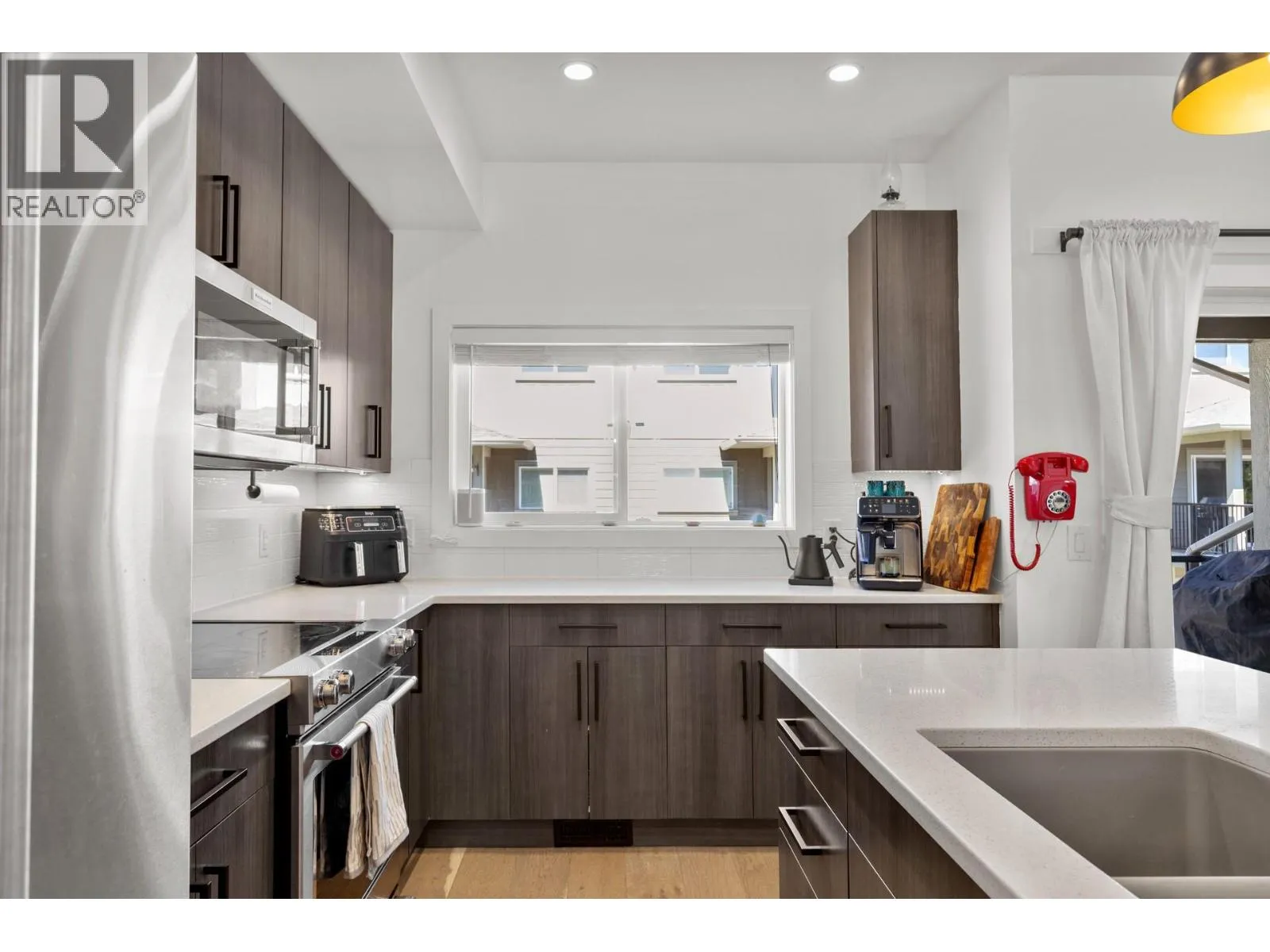 Located in the heart of North Glenmore, The Grove Townhome Community offers the perfect balance of convenience and outdoor living. Surrounded by scenic bike routes and walking paths, this home is just minutes from grocery stores restaurants, schools, and more. This spacious 3 bedroom, 3 bathroom, 1,676 sqft townhome stands out with top-tier upgrades and thoughtful enhancements throughout. The kitchen features granite countertops, upgraded stainless steel appliances, a clever built-in tech drawer, and pantry with smooth-sliding drawersâideal for keeping everything organized. The reverse osmosis water system ensures clean, filtered drinking water right at your fingertips. The openconcept design allows for an abundance of natural light through large windows, while unique wooden feature walls add warmth and character. Enjoy two decks on the main level, perfect for morning coffee or winding down in the evening. A formal dining area, cozy nook, and spacious living room make the main floor perfect for entertaining or everyday comfort. Upstairs, youâll find three bedrooms and two full bathrooms, including a primary suite with a large walk-in closet, heated ensuite floors, and a private 3-piece ensuite. Freshly shampooed carpets, all new light fixtures, and built-in storage units to maximize space and style. Double-car garage with finished epoxy floor and fully finished bonus room with access to the yard. Visitor parking just steps away. (id:27476)