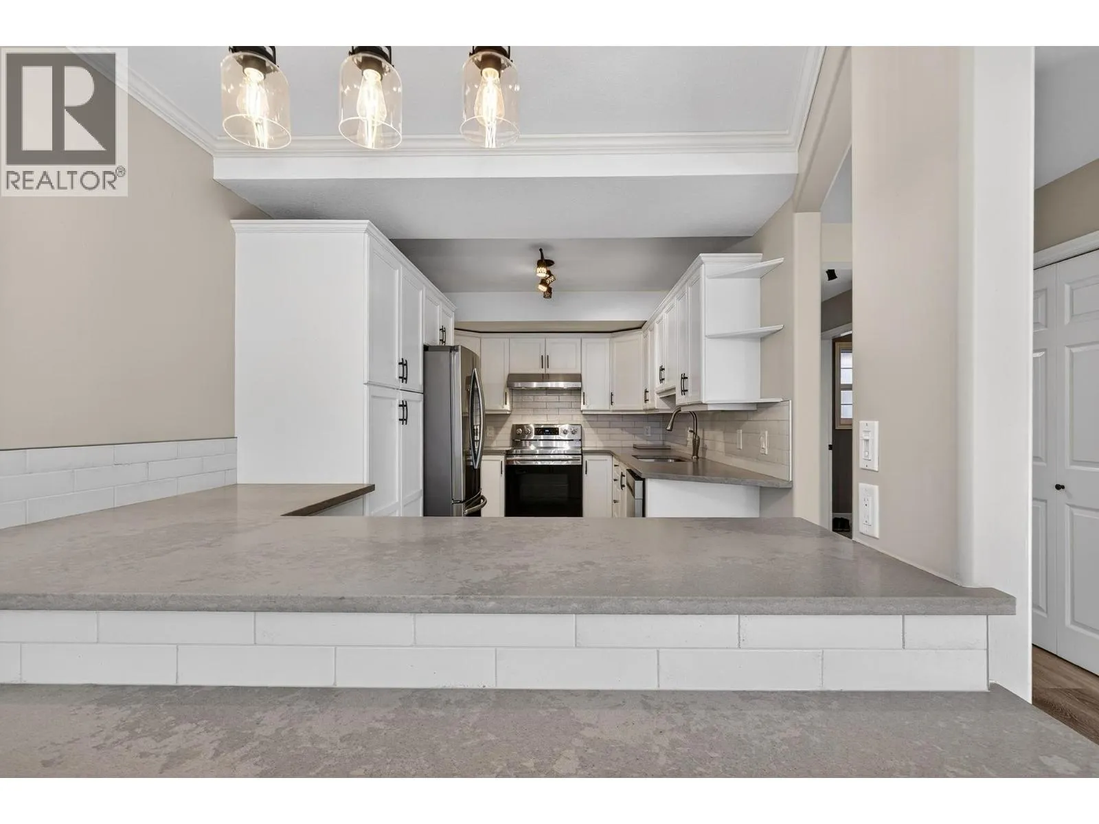 Located in the heart of desirable North Glenmore, this beautifully updated 2-bedroom, 3-bathroom townhome offers comfort, style, and unbeatable convenience. Thoughtfully refreshed with updated flooring, paint, baseboards, lighting, appliances, and renovated bathrooms, this home is truly move-in ready. Major mechanical upgrades include a newer furnace, air conditioning, and hot water tank (2020), providing added peace of mind. The inviting living room features a cozy corner fireplace and patio doors that open to the backyardâperfect for relaxing or entertaining. The spacious primary bedroom impresses with vaulted ceilings, a walk-in closet, and a beautifully updated ensuite. Upstairs laundry adds everyday convenience, while the versatile loft is ideal for a home office, reading nook, or flex space. Parking is a standout feature with two full parking spots, including an attached garage and a driveway large enough to comfortably fit a truck. The home is also pet friendly, making it a great option for animal lovers. The location truly canât be beatâclose to excellent schools, scenic walking trails, and within walking distance to grocery stores, pharmacies, coffee shops, a cozy pub, and health services. This is North Glenmore living at its best. Some photos are virtually staged. (id:27476)