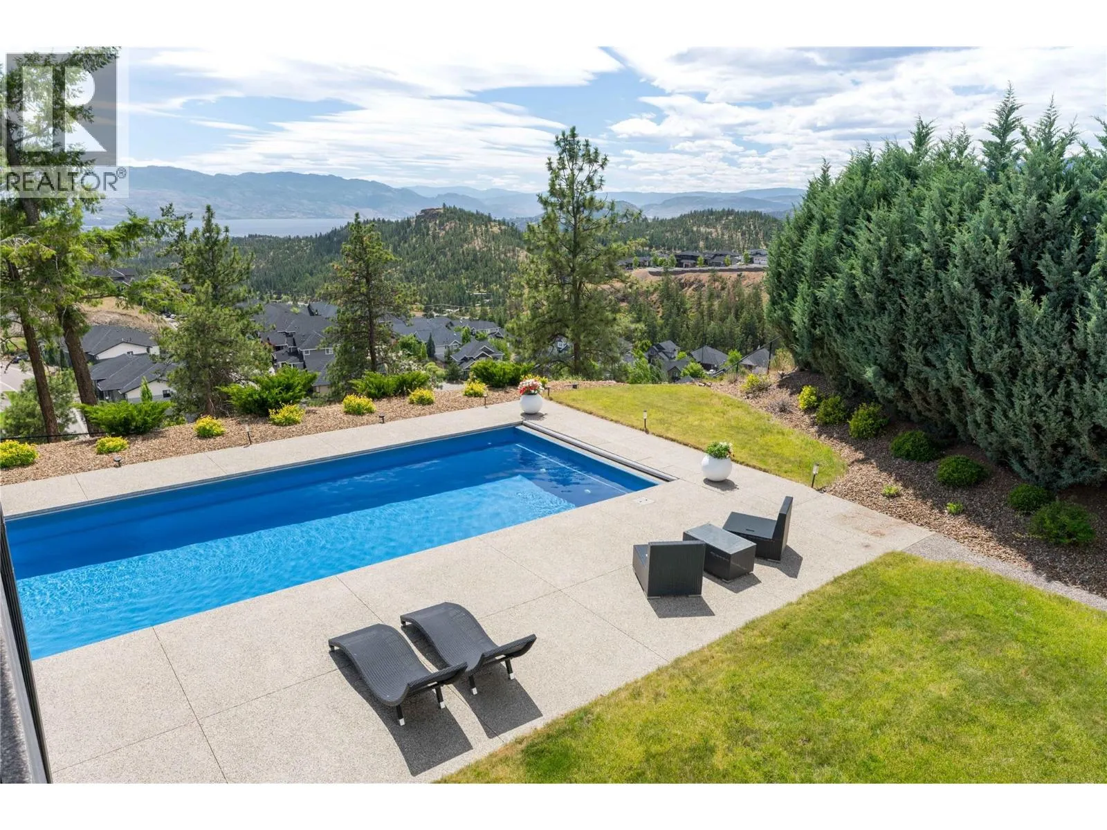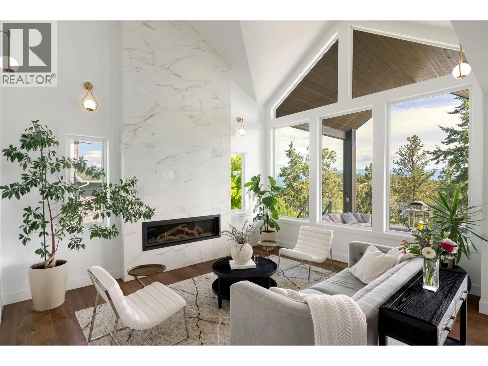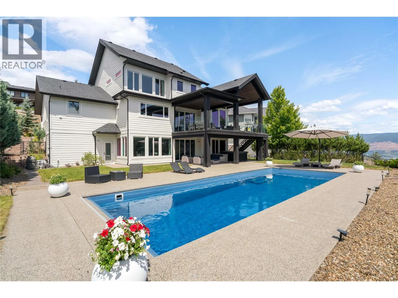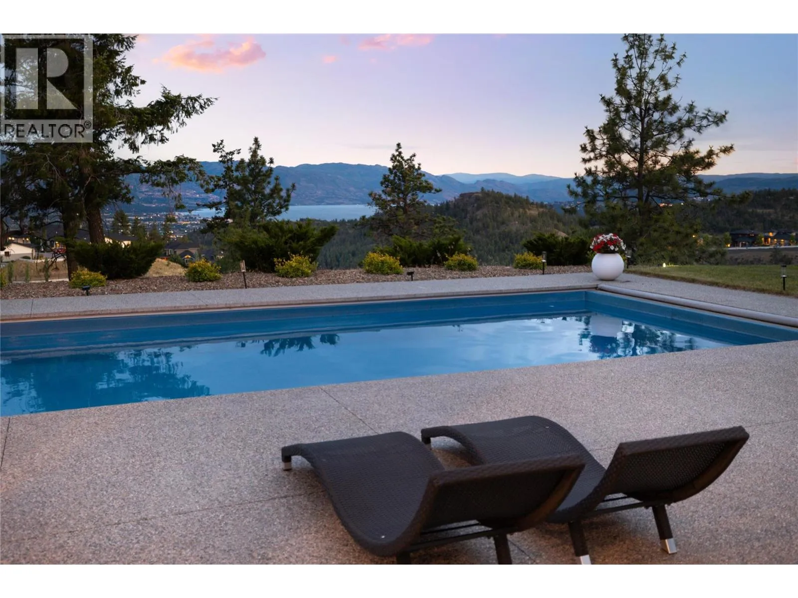 Completely renovated from top to bottom, this breathtaking residence embodies refined living in WildenâKelownaâs most coveted enclave. The striking modern exterior with crisp white & black accents makes a bold statement, setting the stage for the exceptional design inside. Expansive windows frame captivating lake & mountain views, while soaring ceilings & a stunning floor-to-ceiling fireplace create a grand yet inviting atmosphere. The designer kitchen is a showpiece, featuring a massive Dekton island, 6-burner Thermador range, butlerâs pantry, beverage centre & seamless flow to the covered deckâideal for entertaining. Upstairs, the primary suite is a private sanctuary with sweeping views & an ensuite that rivals a luxury spa, complete with heated floors & a double rain shower. Two additional bedrooms & a full bath complete the upper floor. The lower level offers ultimate versatility with engineered hardwood: an elegant family lounge, custom wine cellar, gym space, guest bedroom & a bathroom with direct access to the outdoor retreat. Step outside to the saltwater pool with auto cover, hot tub & multiple lounging areasâsurrounded by protected green space for unparalleled privacy. Notable features include real hardwood throughout the rest of the home, a 3-zone furnace, 240V EV-ready 3-car garage, electric window coverings, UV-filtering windows & solid 8ft doors. A true legacy homeâwhere sophisticated design meets everyday comfort in an irreplaceable setting. (id:27476)