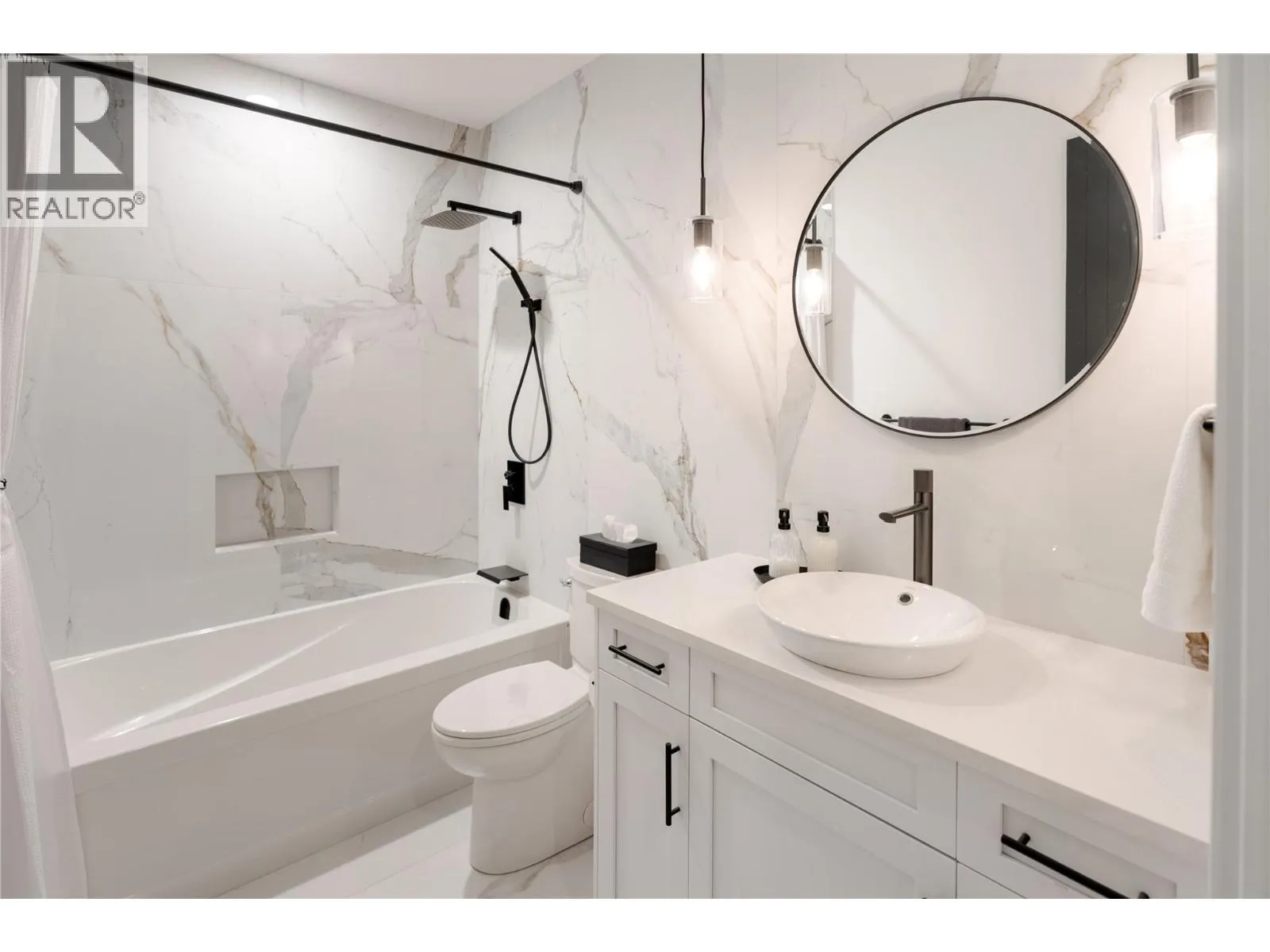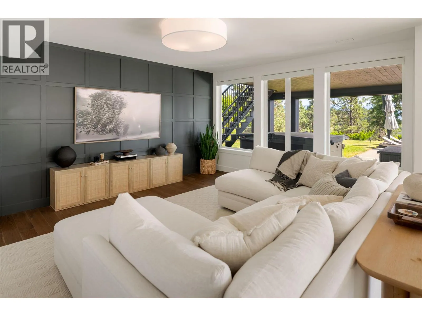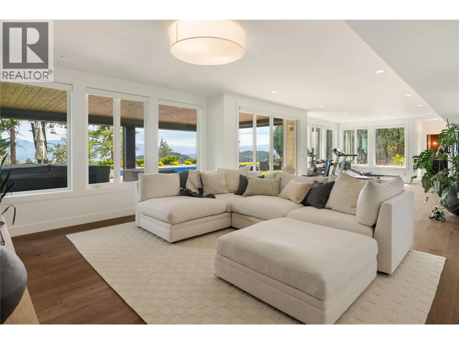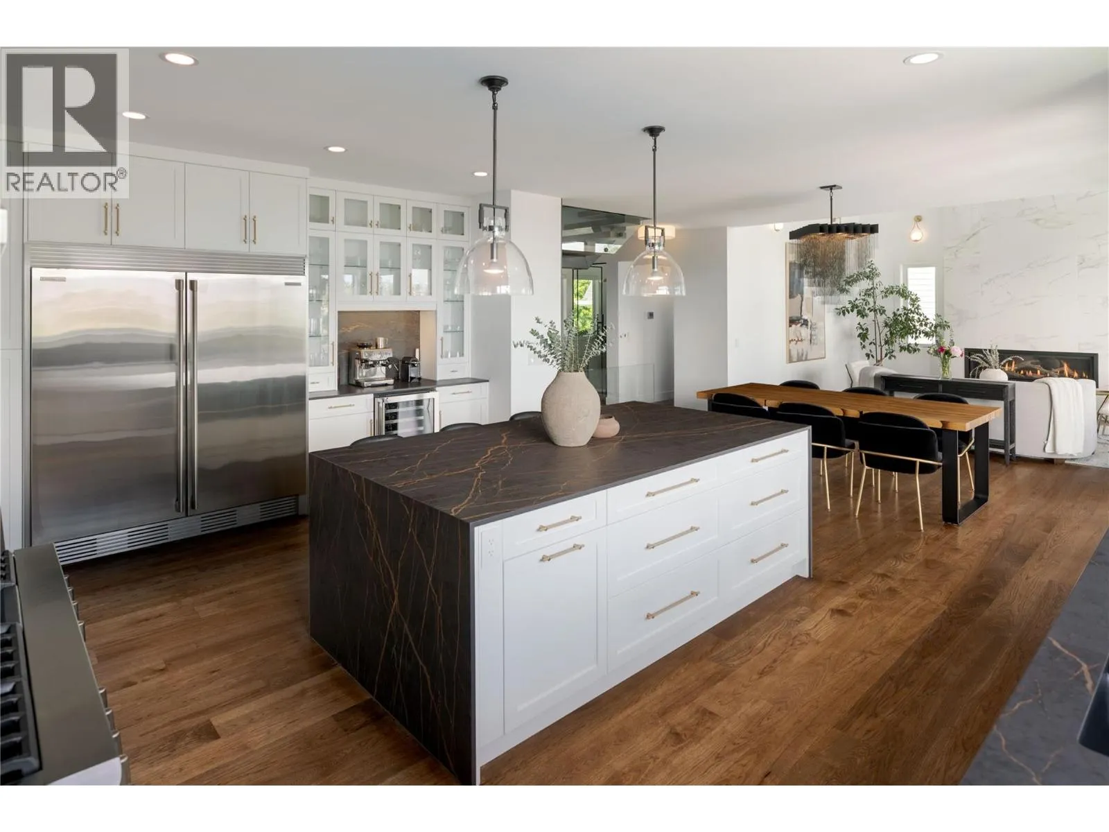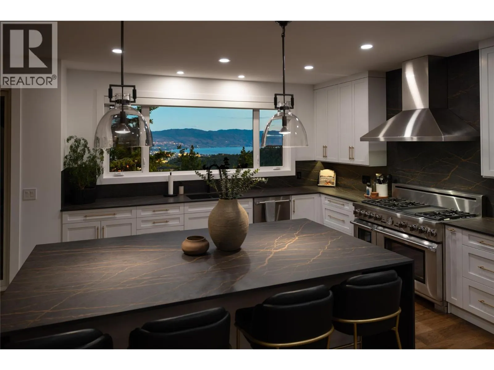 Completely renovated from top to bottom, this breathtaking residence embodies refined living in WildenâKelownaâs most coveted enclave. The striking modern exterior with crisp white & black accents makes a bold statement, setting the stage for the exceptional design inside. Expansive windows frame captivating lake & mountain views, while soaring ceilings & a stunning floor-to-ceiling fireplace create a grand yet inviting atmosphere. The designer kitchen is a showpiece, featuring a massive Dekton island, 6-burner Thermador range, butlerâs pantry, beverage centre & seamless flow to the covered deckâideal for entertaining. Upstairs, the primary suite is a private sanctuary with sweeping views & an ensuite that rivals a luxury spa, complete with heated floors & a double rain shower. Two additional bedrooms & a full bath complete the upper floor. The lower level offers ultimate versatility with engineered hardwood: an elegant family lounge, custom wine cellar, gym space, guest bedroom & a bathroom with direct access to the outdoor retreat. Step outside to the saltwater pool with auto cover, hot tub & multiple lounging areasâsurrounded by protected green space for unparalleled privacy. Notable features include real hardwood throughout the rest of the home, a 3-zone furnace, 240V EV-ready 3-car garage, electric window coverings, UV-filtering windows & solid 8ft doors. A true legacy homeâwhere sophisticated design meets everyday comfort in an irreplaceable setting. (id:27476)