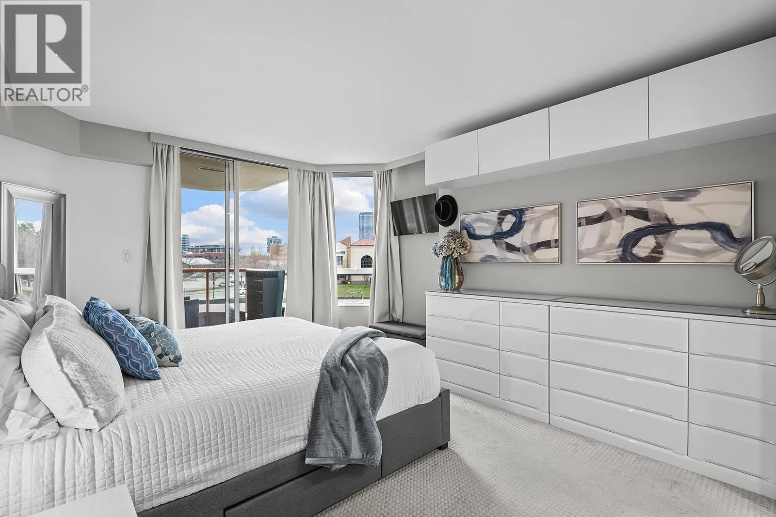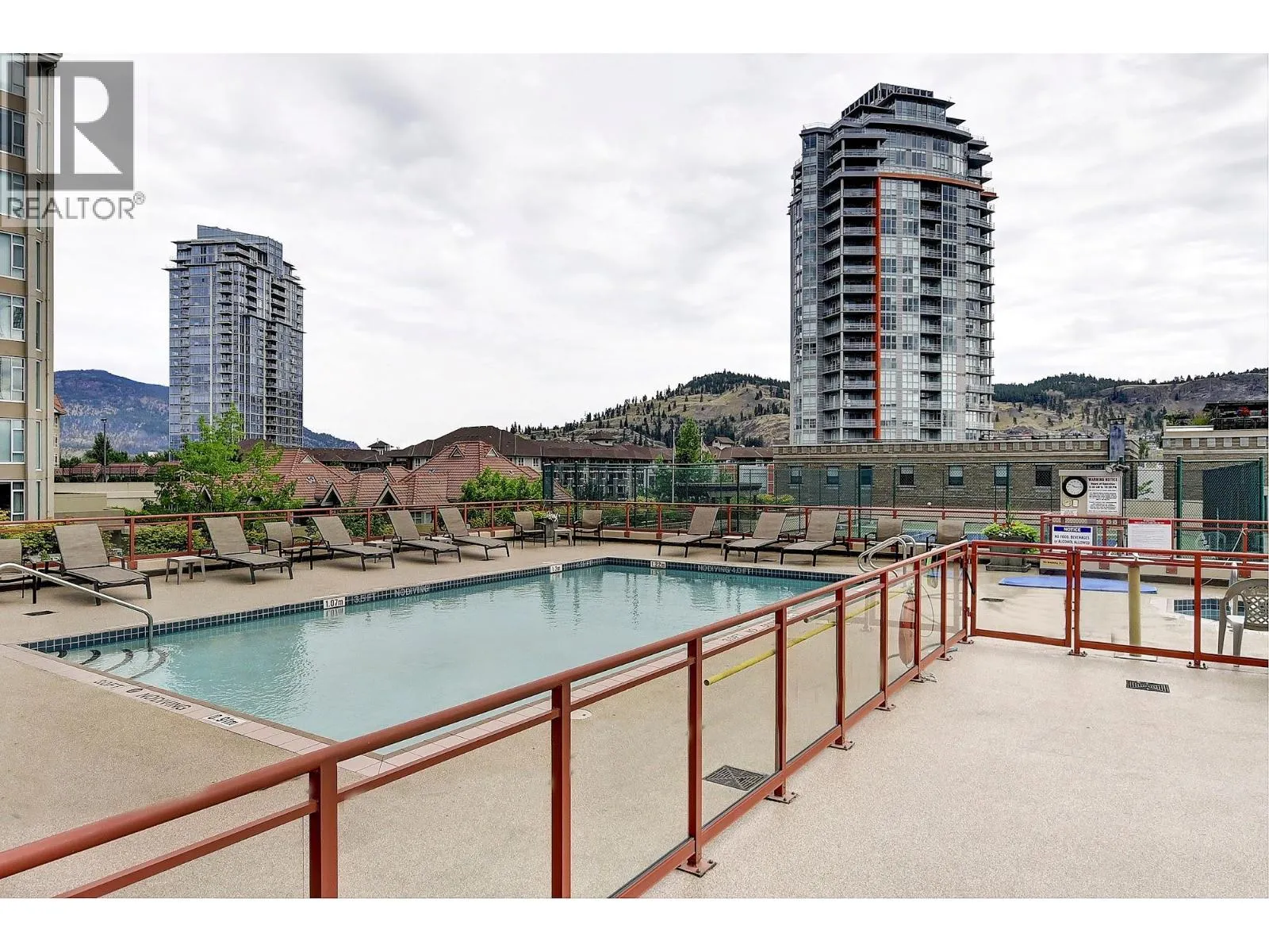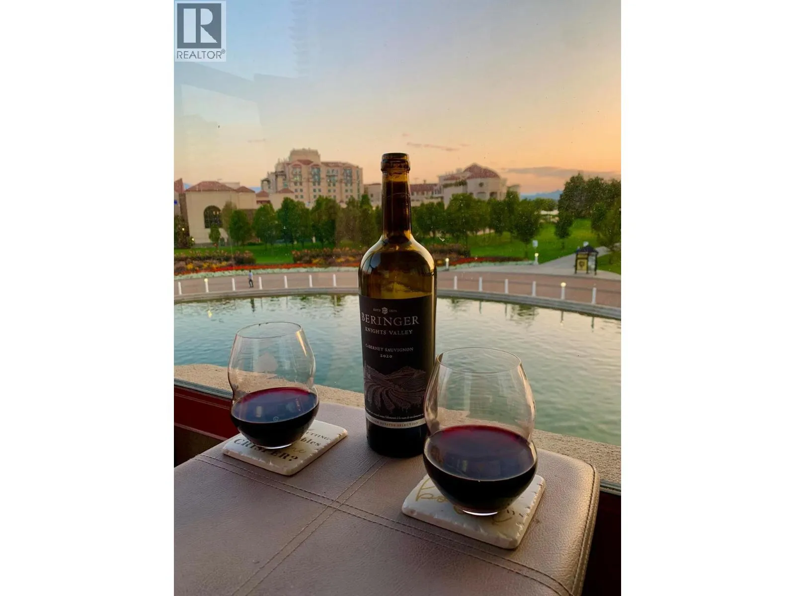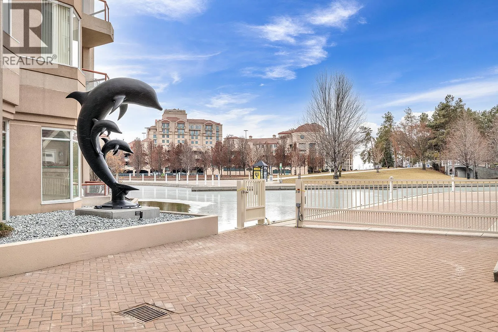 The Dolphins, is where lakeside luxury meets downtown living. This beautifully appointed 2-bedroom, 2-bath residence offers sweeping views of Downtown Kelowna, Okanagan Lake, the lagoon, and the iconic dolphin fountainâproviding a tranquil soundtrack you can enjoy. Inside, the bright and modern renovated kitchen is a true showpiece, featuring an expansive seamless 12 ft quartz counter top with plenty of prep space, premium appliances, and a design thatâs perfect for both entertaining and everyday living. The open-concept layout flows effortlessly through the dining and living areas and out to a private patio, where you can take in spectacular sunsets, lake views, and Kelownaâs vibrant waterfront sceneâincluding festivals, concerts, and fireworks. The spacious primary bedroom is a serene retreat with patio doors to the balcony, stunning views, and a renovated ensuite boasting a large walk-in shower. The second bedroom and main bathroom, also updated are positioned on the opposite side of the condo, offering privacy for guests or family. Upgrades include new paint, blinds, lighting, quartz countertops, appliances, wiring, plumbing, and more Enjoy exceptional convenience with amenities located on the same level, including a fitness centre, meeting room, outdoor pool, hot tub, and relaxing patio spaces. This condo represents outstanding value, with possible boat moorage and an unbeatable locationâjust steps to restaurants, breweries, a winery, shopping, and the beach. (id:27476)