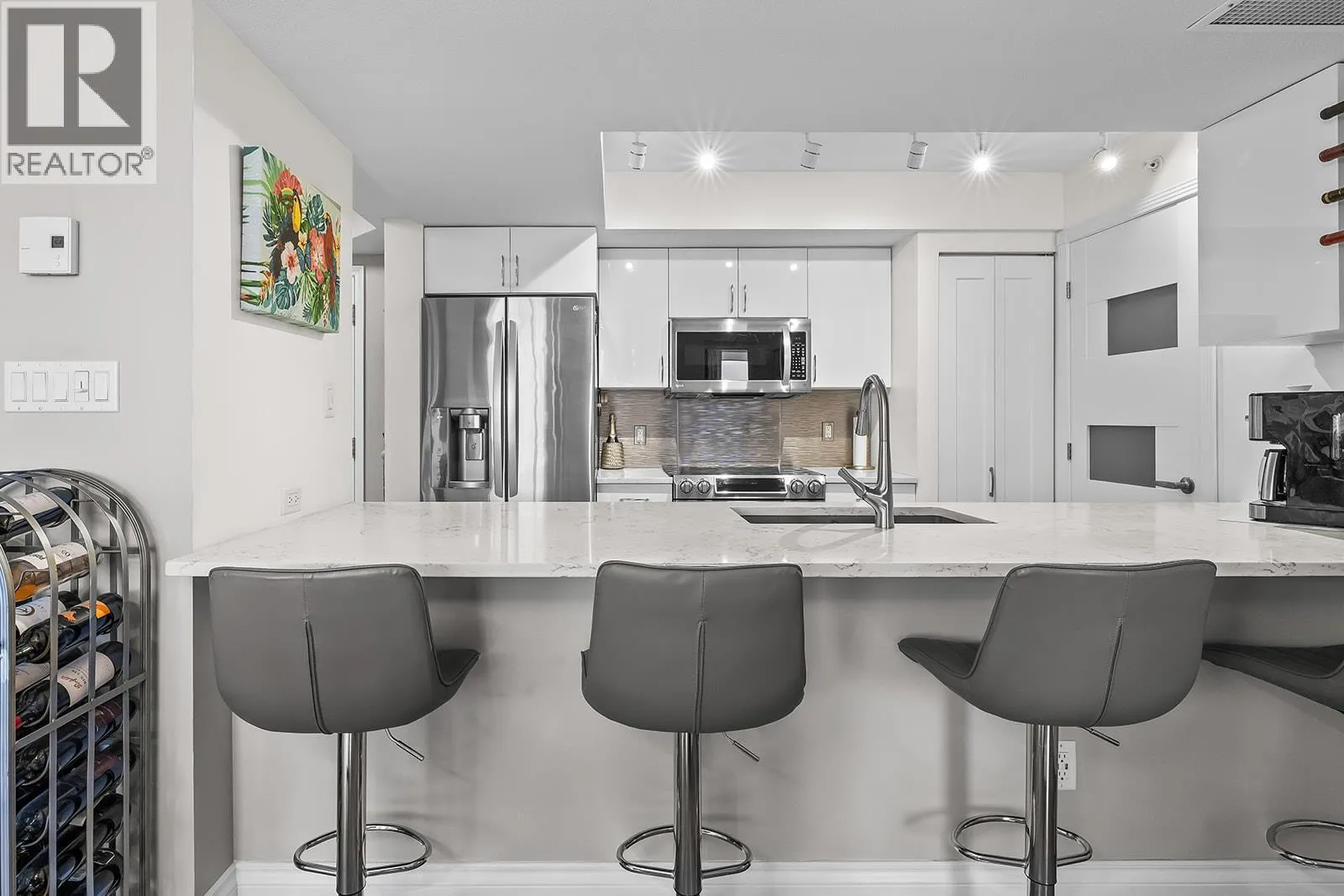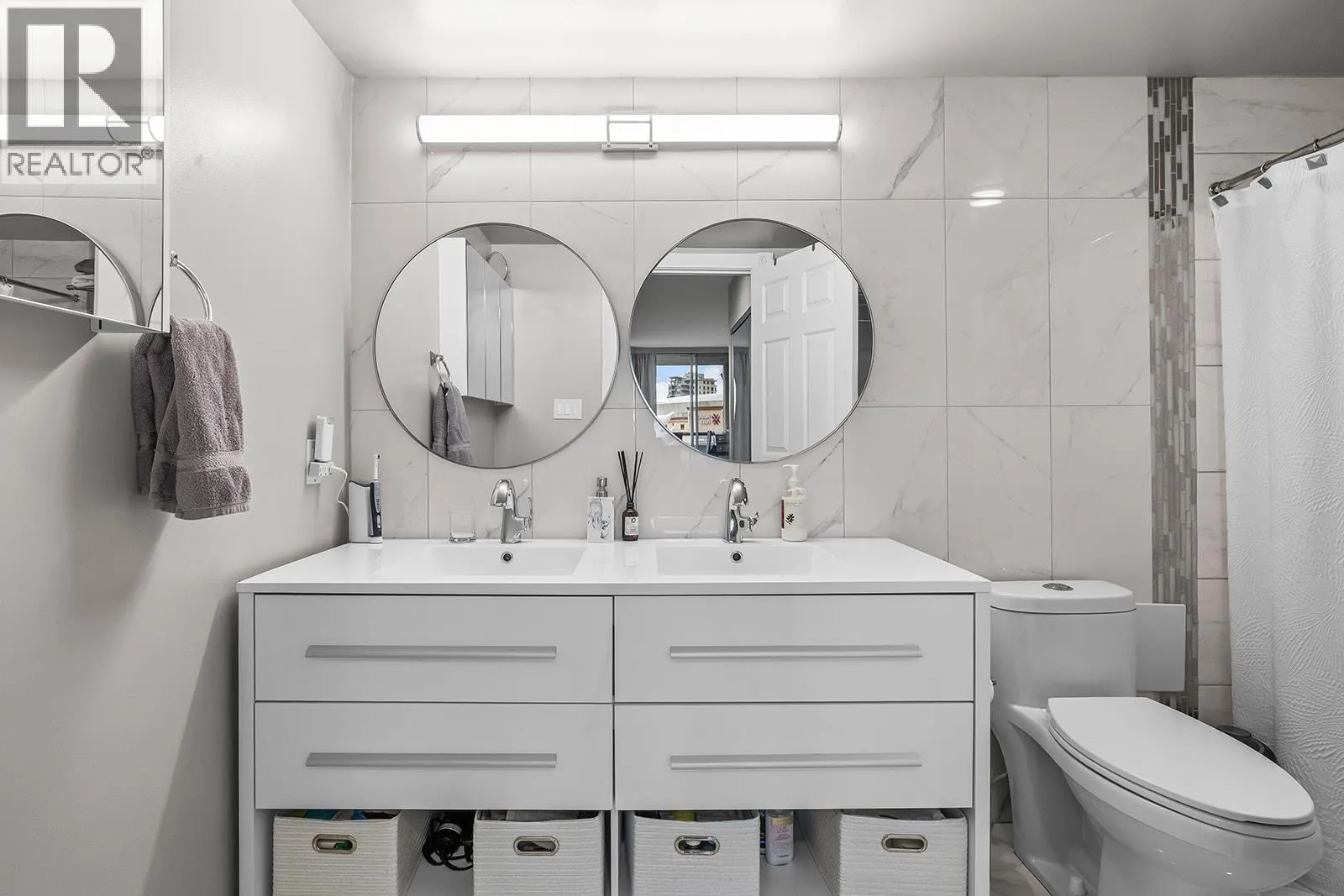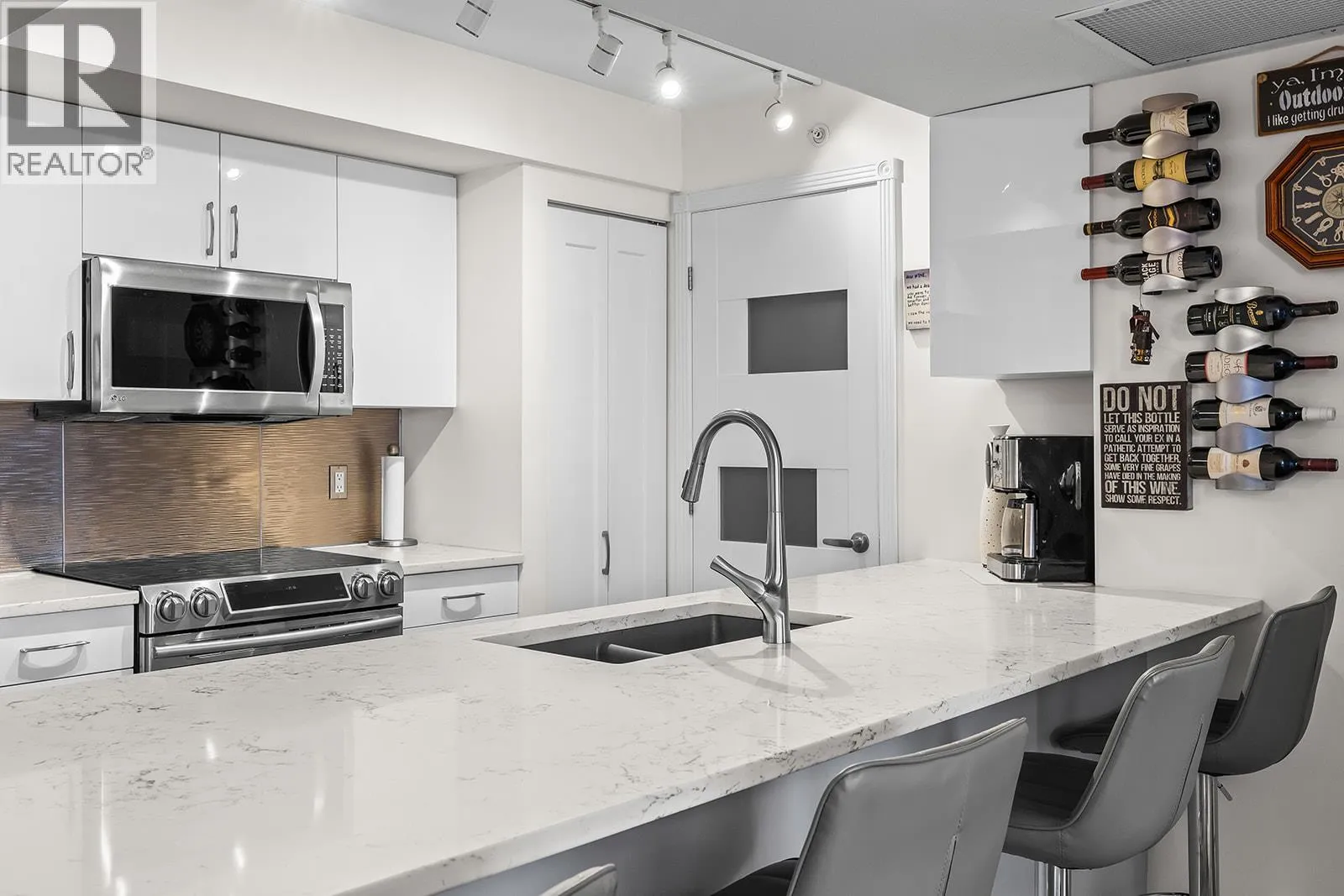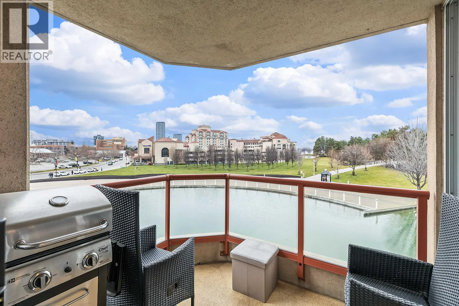 The Dolphins, is where lakeside luxury meets downtown living. This beautifully appointed 2-bedroom, 2-bath residence offers sweeping views of Downtown Kelowna, Okanagan Lake, the lagoon, and the iconic dolphin fountainâproviding a tranquil soundtrack you can enjoy. Inside, the bright and modern renovated kitchen is a true showpiece, featuring an expansive seamless 12 ft quartz counter top with plenty of prep space, premium appliances, and a design thatâs perfect for both entertaining and everyday living. The open-concept layout flows effortlessly through the dining and living areas and out to a private patio, where you can take in spectacular sunsets, lake views, and Kelownaâs vibrant waterfront sceneâincluding festivals, concerts, and fireworks. The spacious primary bedroom is a serene retreat with patio doors to the balcony, stunning views, and a renovated ensuite boasting a large walk-in shower. The second bedroom and main bathroom, also updated are positioned on the opposite side of the condo, offering privacy for guests or family. Upgrades include new paint, blinds, lighting, quartz countertops, appliances, wiring, plumbing, and more Enjoy exceptional convenience with amenities located on the same level, including a fitness centre, meeting room, outdoor pool, hot tub, and relaxing patio spaces. This condo represents outstanding value, with possible boat moorage and an unbeatable locationâjust steps to restaurants, breweries, a winery, shopping, and the beach. (id:27476)