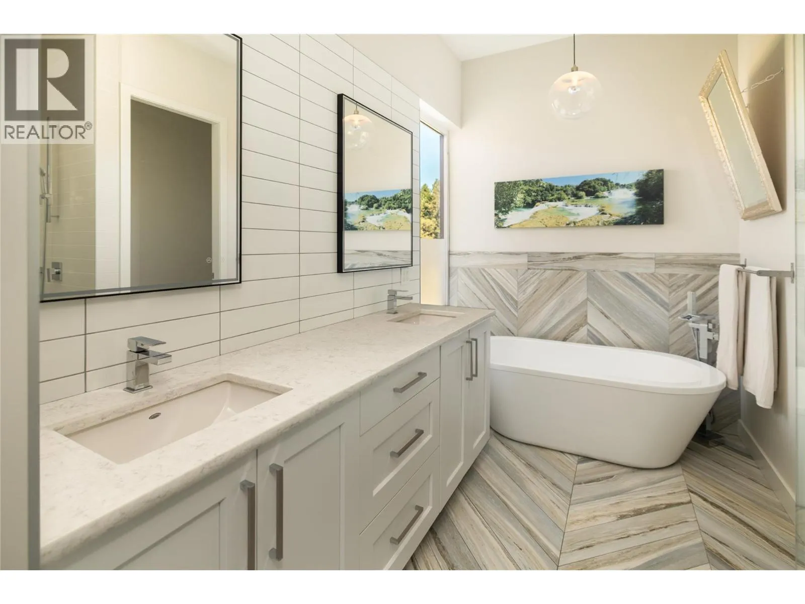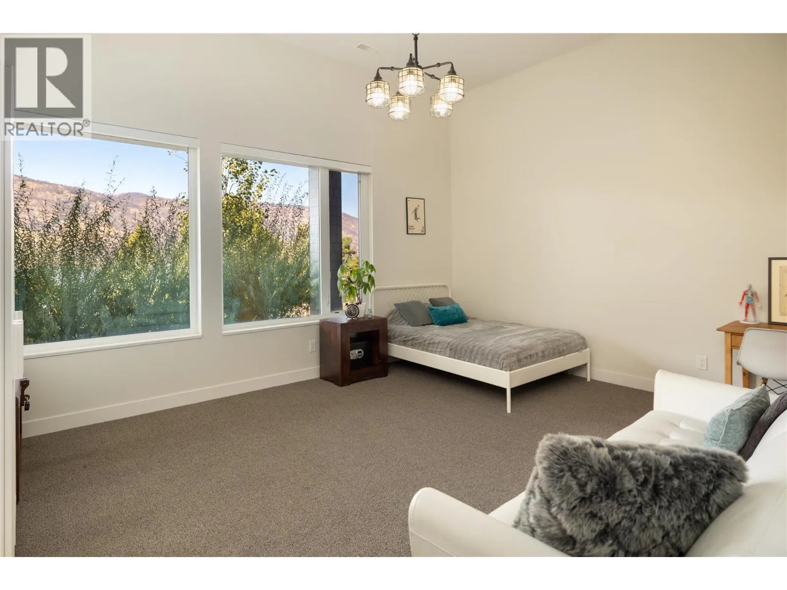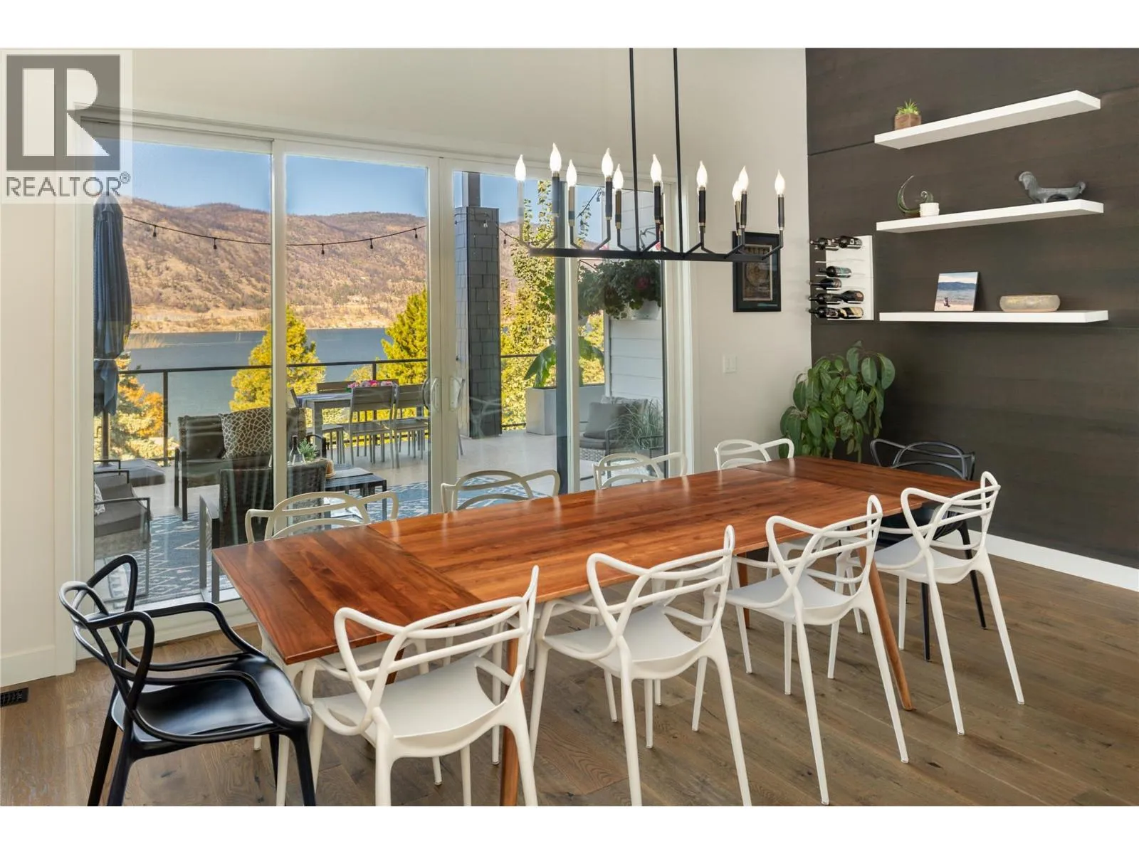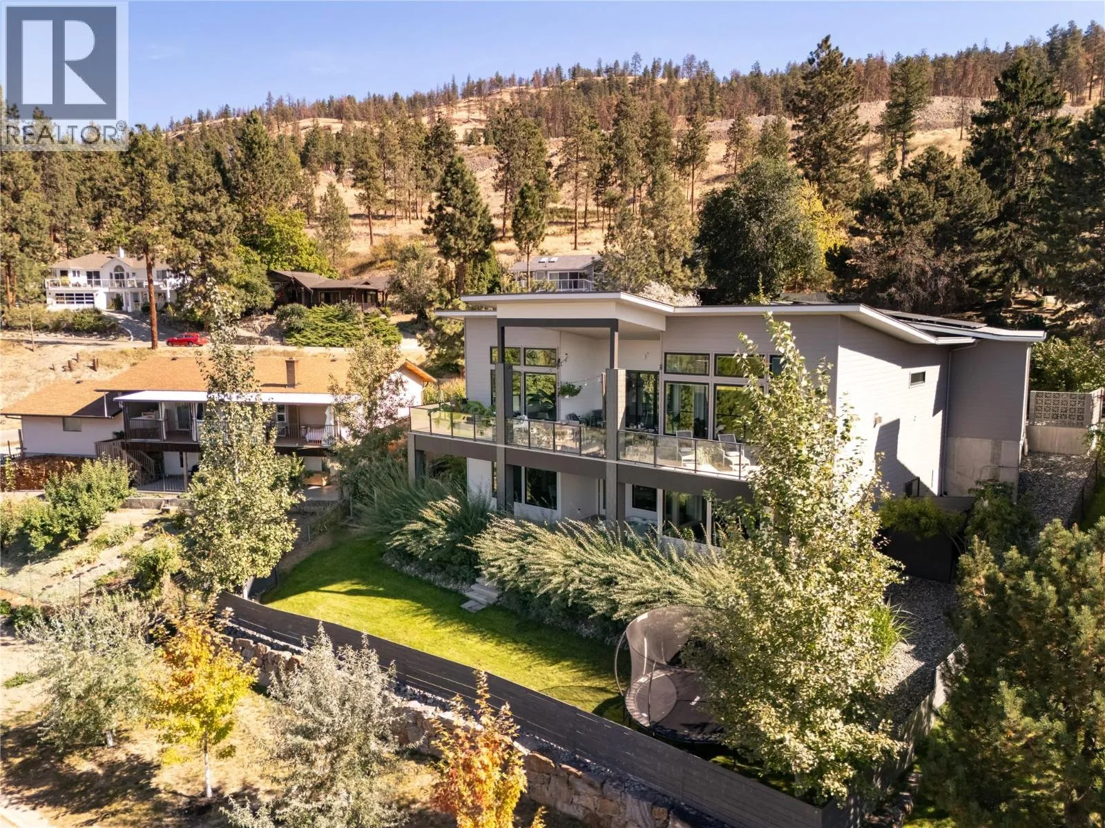 Perfectly positioned to showcase Okanagan Lake views within a mature, private neighbourhood, this nearly new custom residence embodies modern yet timeless living. Designed to maximize both comfort and style, the home is filled with natural light and showcases sweeping lake and mountain views from nearly every room. The main level highlights soaring ceilings, expansive windows, and an open-concept layout that seamlessly connects the kitchen, dining, and living areas. An oversized 8x12 ft sliding door opens to a vaulted covered patio, creating a striking indoor-outdoor flow perfect for entertaining or unwinding against the lakeview backdrop. The lower level offers exceptional versatility with 14-ft ceilings, oversized doors, and expansive spaces that include a recreation area, family room, office, gym, and a flexible kitchenette rough-in. Notable features include 31 solar panels & a two-car garage with EV charger and high ceilings that can accommodate a lift. Outdoors, the landscaped yard is graced with fruit trees and offers potential for a future swim spa with plenty of room for kids to run and play, plus easy accommodation for RV or boat parking. Blending refined design with everyday function, this property offers unmatched privacy, remarkable views, and a coveted locationâjust minutes from Aberdeen, UBCO, the lake, schools, shops, and recreation. (id:27476)