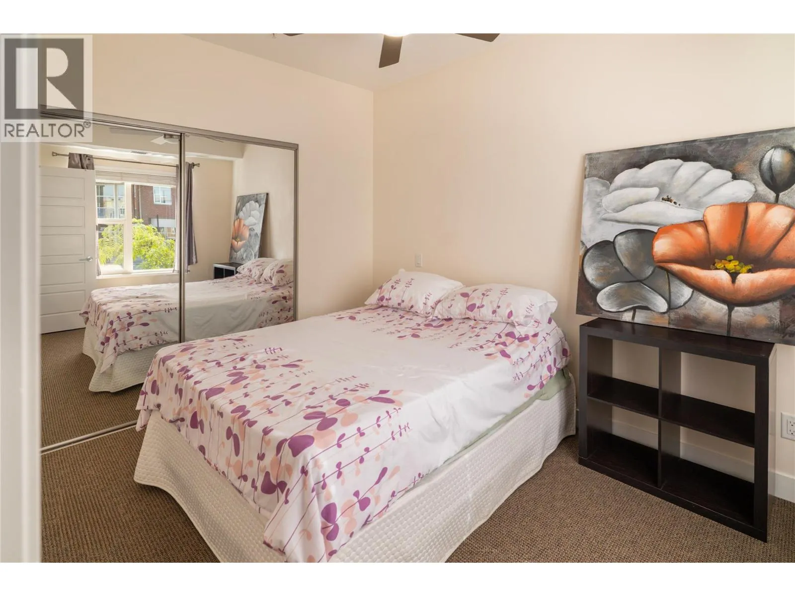 Turn-key & fully furnished, this move-in ready 3-bedroom, 2-bath residence presents an excellent opportunity for investors or families with a student attending UBCO. A well-designed floor plan offers a generous kitchen with island seating & stainless steel appliances, flowing seamlessly into a bright, open living area filled with natural light. Step outside to the covered patio and enjoy peaceful mountain viewsâan ideal extension of the living space. The primary bedroom is thoughtfully positioned with its own private ensuite, while two additional bedrooms share a full bathroom, offering flexibility for roommates or guests (one bedroom does not have a window). In-suite laundry, durable flooring, secure underground parking, and the convenience of included furnishings make ownership effortless from day one. Ideally located within Academy Hillâthe closest building to the UBCO campusâthis property is just steps to the daycare & convenience store, with quick access to the airport, transit, and everyday shopping. A turnkey offering in a consistently high-demand location. (id:27476)