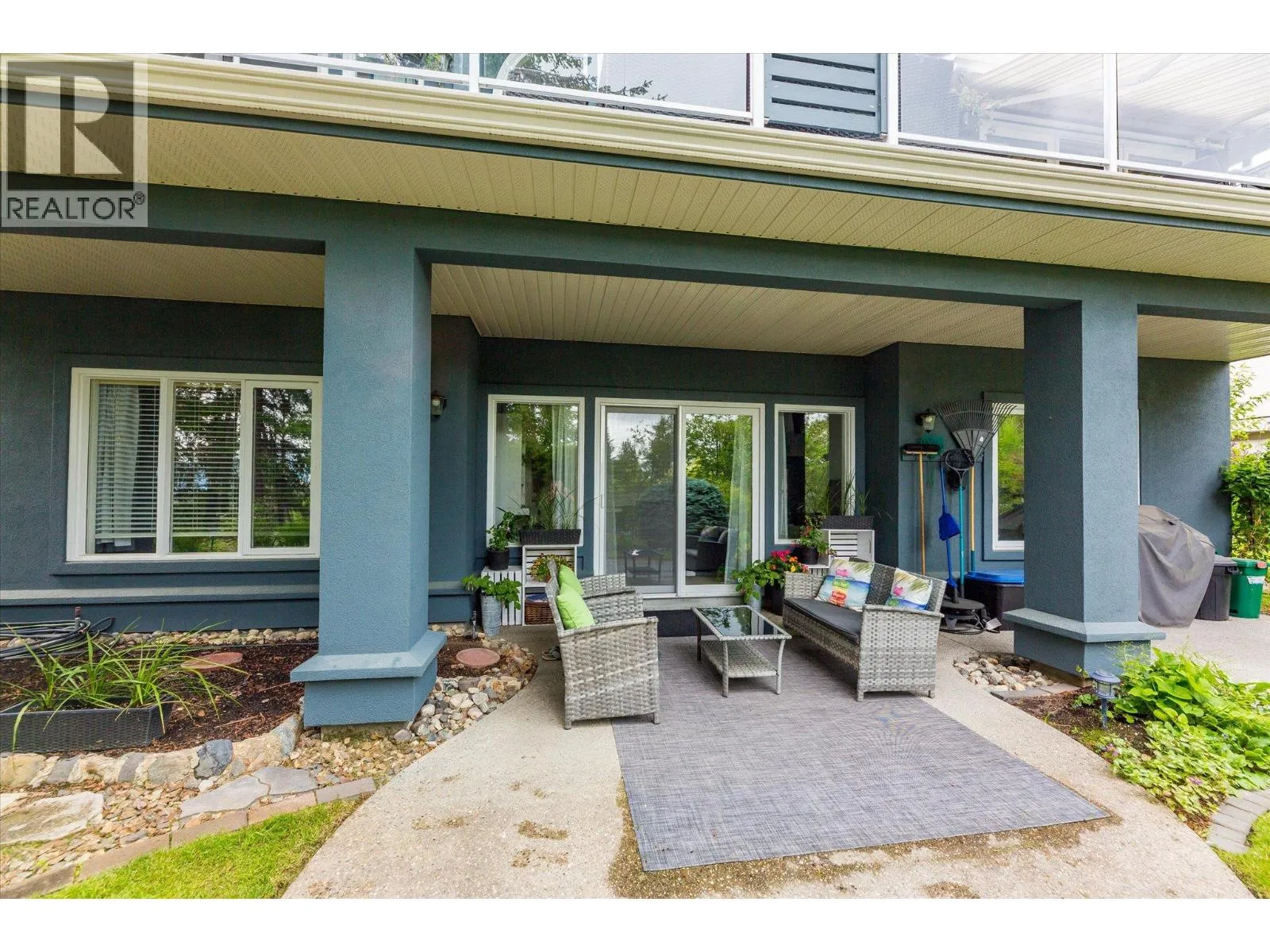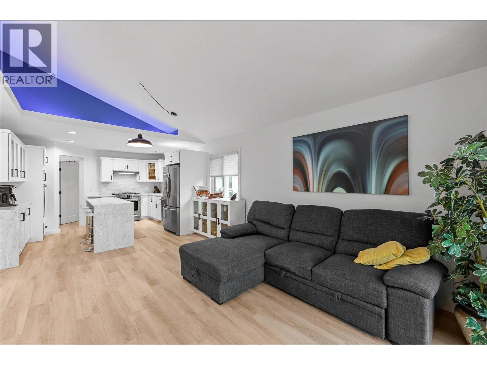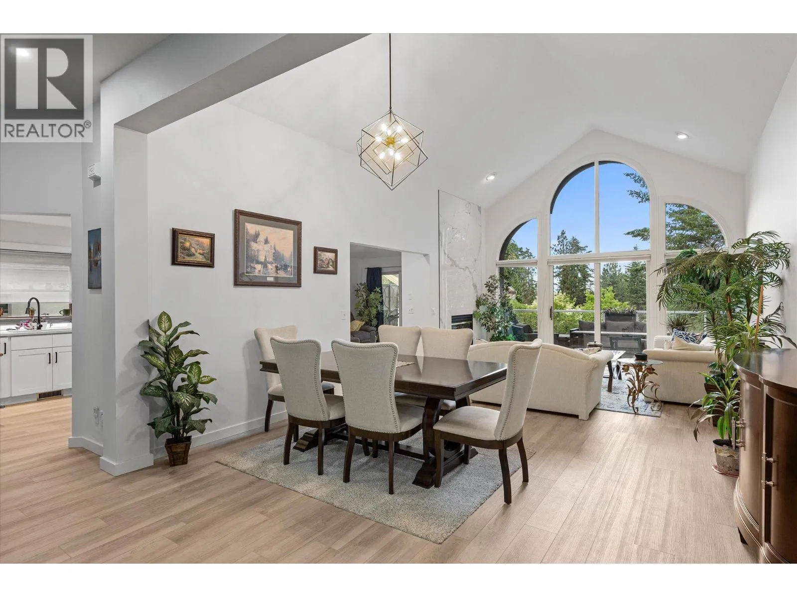 Discover the finer life in this beautifully updated home, nestled in one of Kelownaâs most sought-after enclaves, surrounded by exciting amenities. The main living space welcomes you with soaring vaulted ceilings and a breathtaking fireplace, perfectly framed by a statement feature window. The chefâs kitchen is a showstopper, complete with quartz backsplash, waterfall edge countertops, stainless steel appliances, and eat-at island with ample storage and prep space. Modern finishes shine throughout with new flooring and fresh paint, adding to the sleek and sophisticated feel. The main floor features a spacious primary with deck access, updated 5-piece ensuite, and a large walk-in closet. Upstairs, youâll find a second bedroom and a bedroom-sized den. Step outside to a private deck surrounded by greenery, perfect for outdoor entertaining and relaxation. Downstairs, a bright 2-bed self contained in-law suite with a new kitchen and separate entrance offers flexibility, easily convertible into a summer kitchen & hosting space with a games/media room. The exterior is freshly landscaped & wired for security, while the tranquil backyard oasis features a fish pond and wiring for a hot tub. Enjoy a 2 car garage that also has room for your golf cart! Located in the vibrant Gallaghers Canyon Golf Community which offers top-notch amenities like a gym, pool/spa, games room, library, workshops, fitness classes, social clubs, tennis courts and more. This exceptional home is waiting for you. (id:27476)