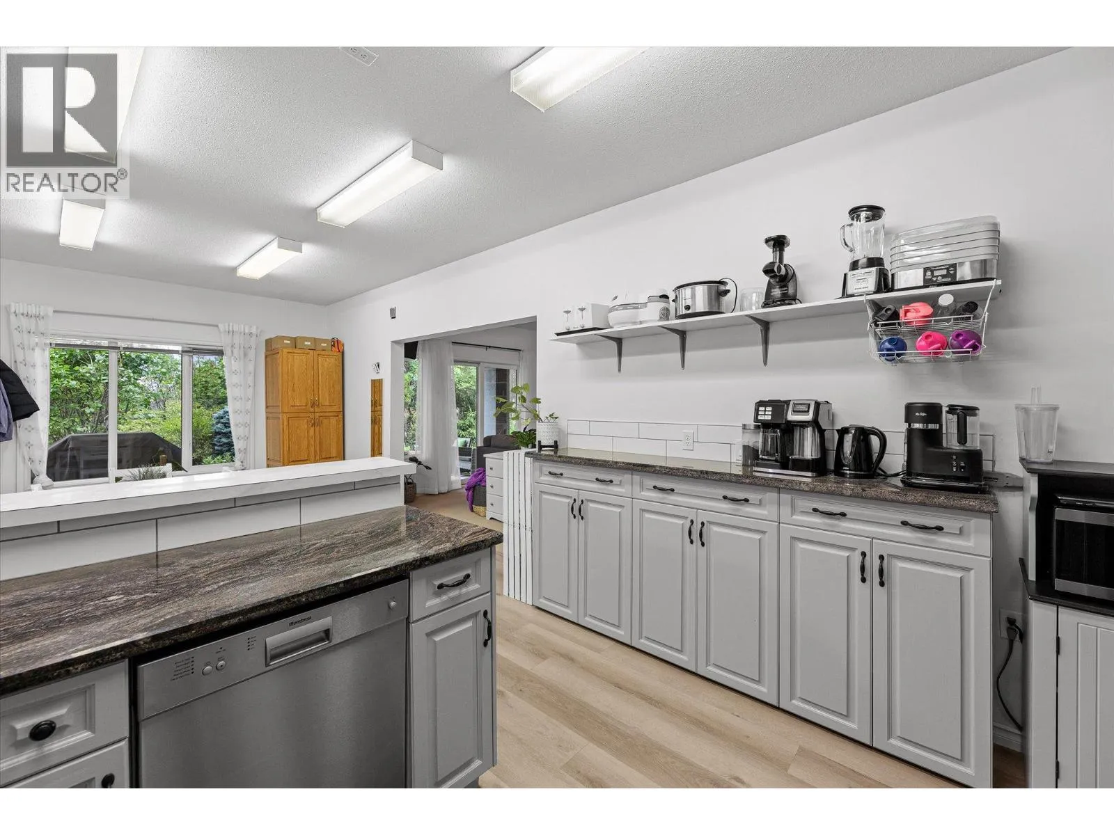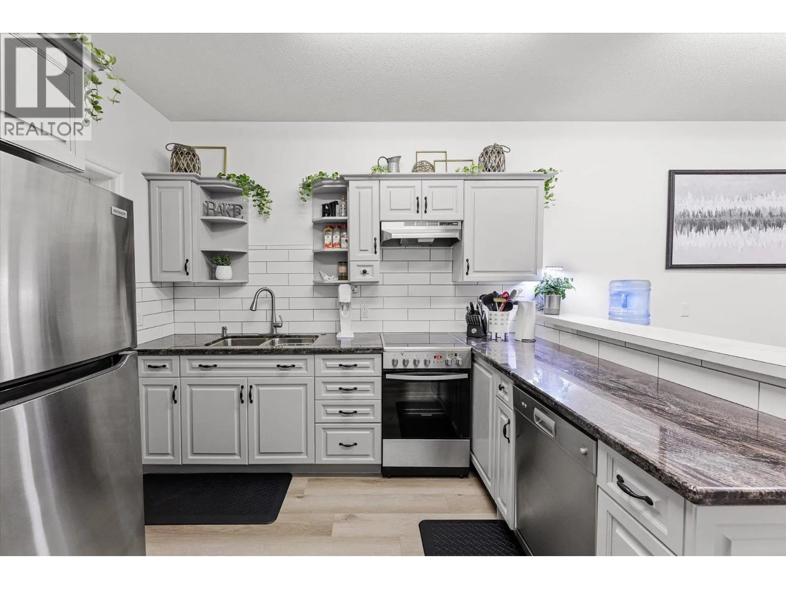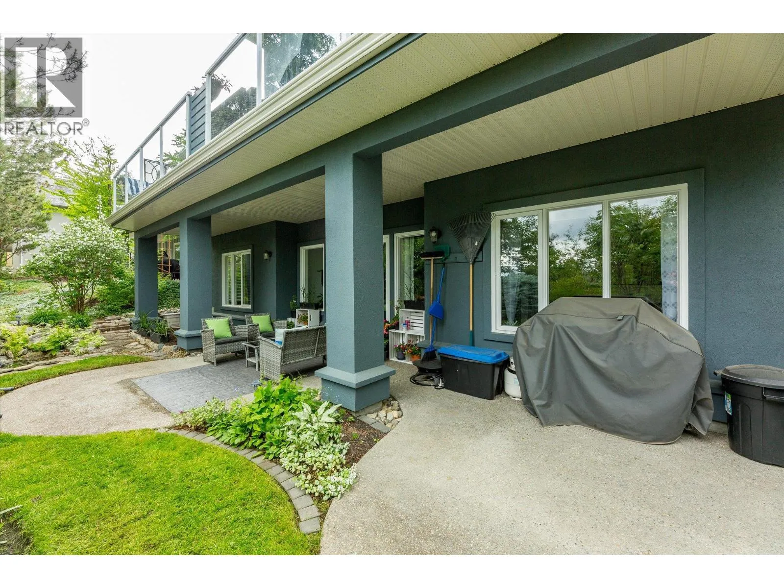 Discover the finer life in this beautifully updated home, nestled in one of Kelownaâs most sought-after enclaves, surrounded by exciting amenities. The main living space welcomes you with soaring vaulted ceilings and a breathtaking fireplace, perfectly framed by a statement feature window. The chefâs kitchen is a showstopper, complete with quartz backsplash, waterfall edge countertops, stainless steel appliances, and eat-at island with ample storage and prep space. Modern finishes shine throughout with new flooring and fresh paint, adding to the sleek and sophisticated feel. The main floor features a spacious primary with deck access, updated 5-piece ensuite, and a large walk-in closet. Upstairs, youâll find a second bedroom and a bedroom-sized den. Step outside to a private deck surrounded by greenery, perfect for outdoor entertaining and relaxation. Downstairs, a bright 2-bed self contained in-law suite with a new kitchen and separate entrance offers flexibility, easily convertible into a summer kitchen & hosting space with a games/media room. The exterior is freshly landscaped & wired for security, while the tranquil backyard oasis features a fish pond and wiring for a hot tub. Enjoy a 2 car garage that also has room for your golf cart! Located in the vibrant Gallaghers Canyon Golf Community which offers top-notch amenities like a gym, pool/spa, games room, library, workshops, fitness classes, social clubs, tennis courts and more. This exceptional home is waiting for you. (id:27476)