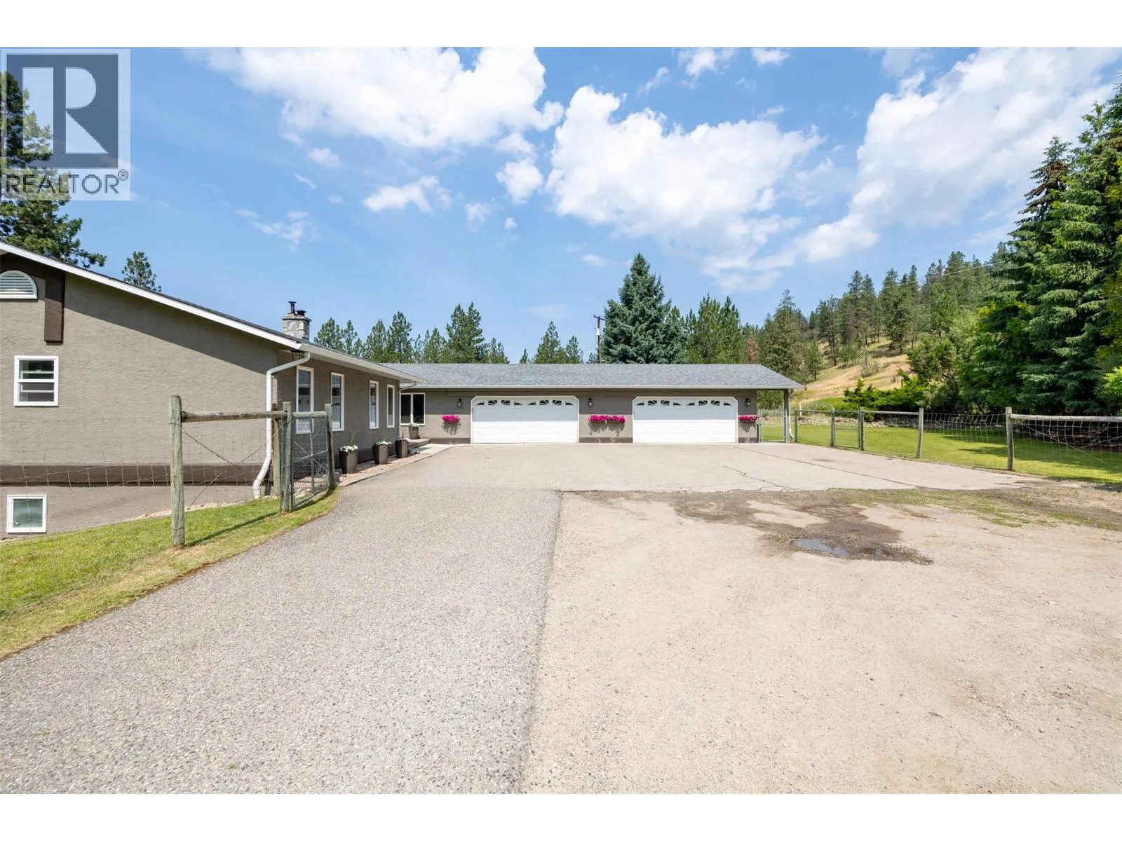 Welcome to your private paradiseâan exceptional 6+ acre package nestled in nature. The walkout rancher offers well over 3,000 sq ft of thoughtfully designed living space. The main level features 3 bedrooms, including a luxurious oversized primary with a 4-piece ensuite, under cabinet lighting and a jetted rain shower. A formal dining room, cozy living area with a striking stone fireplace, and a chefâs kitchen with wall oven, quartz counters and a massive island take family gatherings to the next level. Step directly onto your stamped concrete patio, where two covered seating areasâincluding a custom fir pergolaâand a hot tub await. Perfect for hosting or relaxing in total privacy. The walkout lower level offers a den, full bath, spacious games/rec room, gym, and ample storage, all with a wall of windows showcasing the peaceful, tree-lined yard. The fully fenced yard is a picture perfect 10/10. The property features several flat areas and provides space to create your dream lifestyle. Many other extras here including a Big Blue R/O & UV filtration system, central A/C, irrigation, new HWT, and don't forget the 4-car attached garage. Peace, privacy, and possibility await. (id:27476)