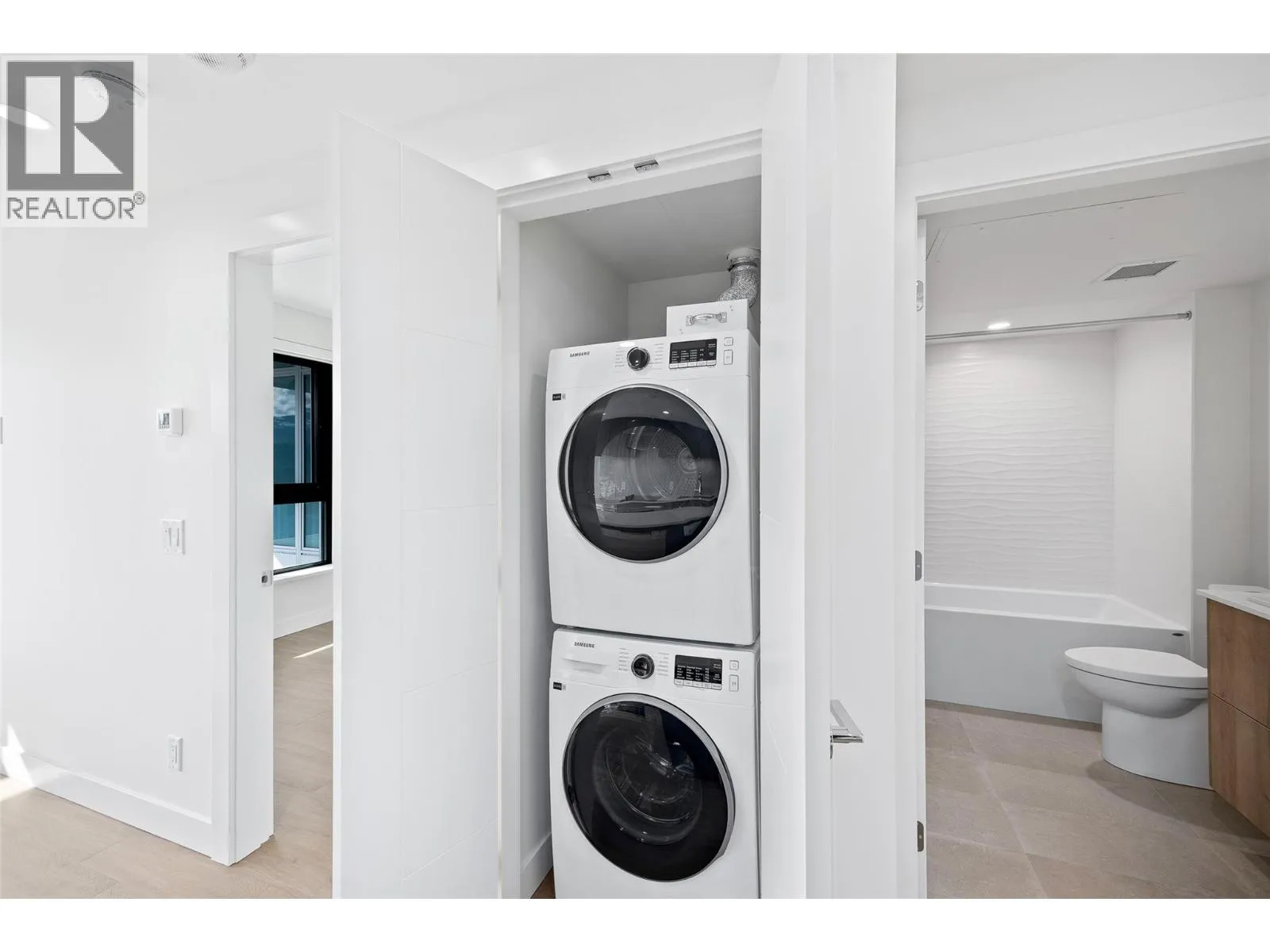 The lowest-priced Lake View unit at Aqua! Due to its location, future investment potential, the developer's reputation, and the views, this development was sold out on day one of its launch! Offering a unique connection to Okanagan Lake, Pandosy Village, and first-class amenities, this bright, modern, and well-laid-out apartment is a place anyone would love to relax in. Step outside and enjoy AQUAâs world-class amenities, including an outdoor pool, hot tub, BBQ area, fireside lounge, outdoor kitchen, conference room, co-working space, plus a 2,000 sq. ft. gym and yoga area. Thereâs even a dog wash station (no pet size restrictions here!). This unit comes with one covered, secure parking stall, a separate storage locker, and a 2, 5, & 10-year new home warranty. Live where you playâjust steps from the water in the heart of Kelownaâs favorite neighborhood, where youâre an easy stroll or bike ride away from boutique shopping and dining. This one is move-in ready! (id:27476)