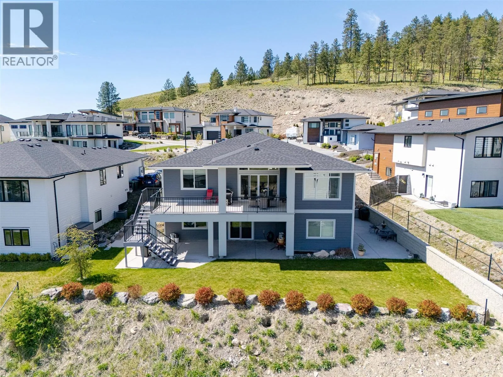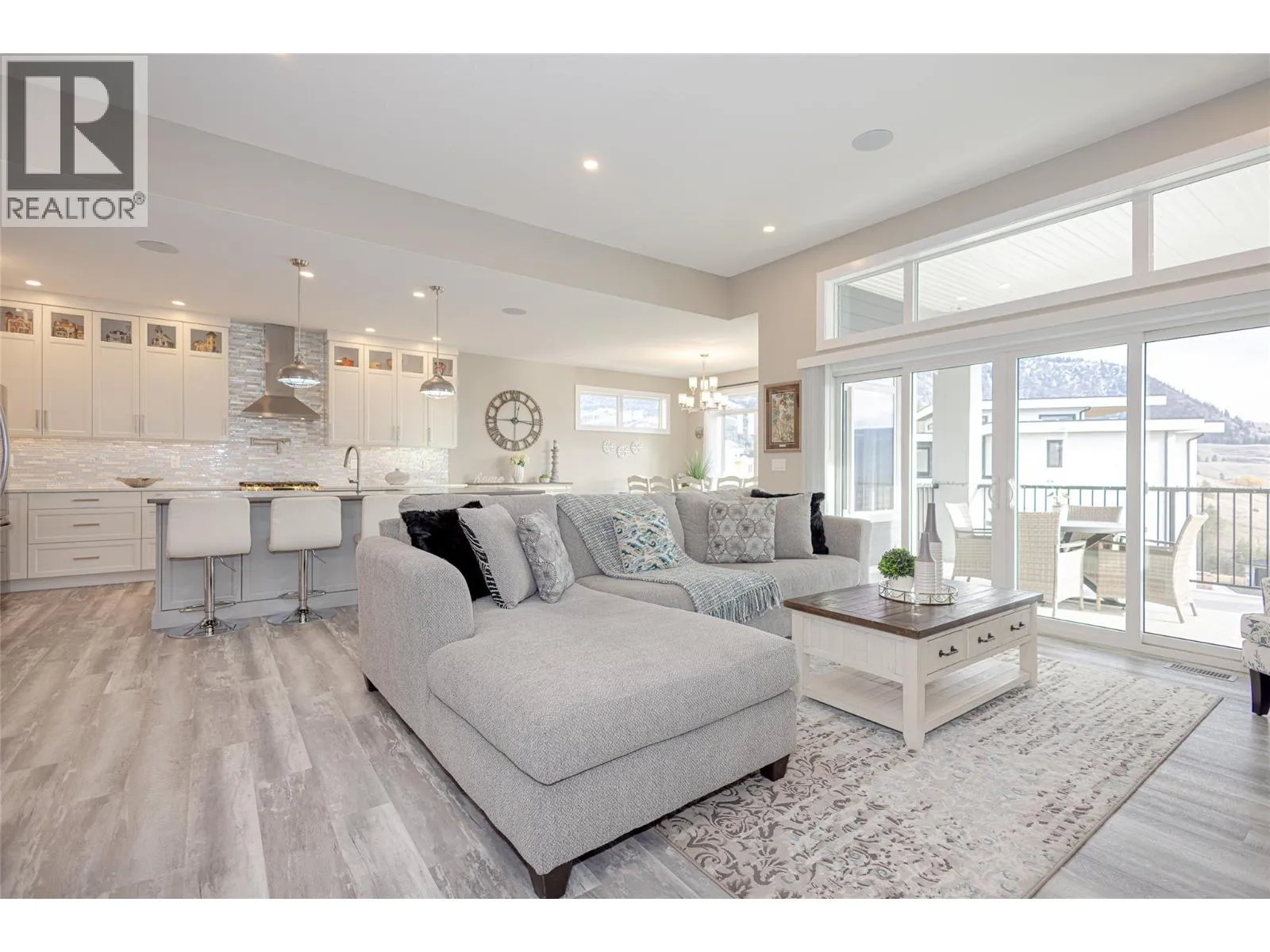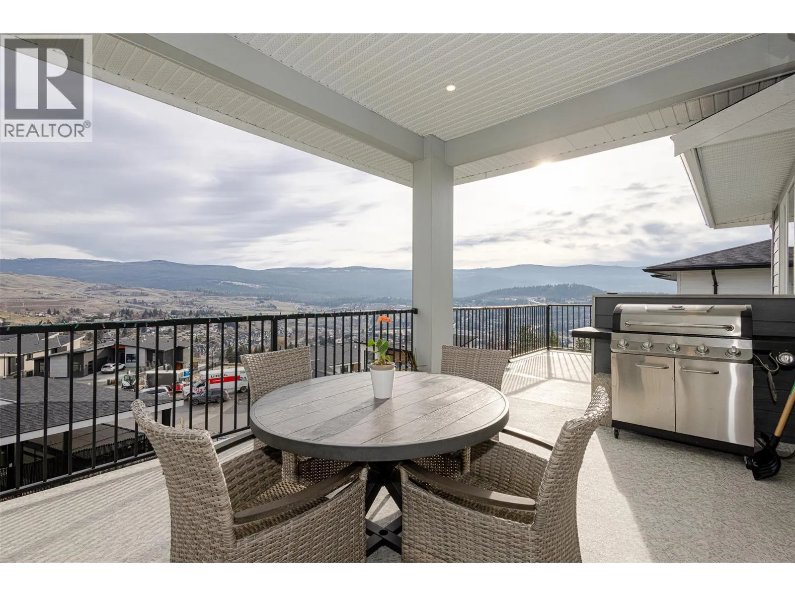 Welcome to refined living on Black Mountain. This exceptional custom-built walk-out rancher offers a rare blend of elegance, functionality, and income potential with 5 bedrooms and 4 bathrooms, including a 2-bedroom legal suite and a separate 1-bedroom in-law suite, each with private sidewalk entrances, independent laundry, heating, and dedicated parking. The main residence is bathed in natural light, featuring 10â6â ceilings, oversized windows, and an open-concept design that flows seamlessly to an extended covered deck with stairs to the backyard. The chef-inspired kitchen is a statement piece, showcasing custom cabinetry, quartz countertops, tiled backsplash, an oversized island, walk-in pantry, gas range with pot-filler, wine fridge, and premium appliance package. The primary retreat offers tranquil views and a spa-like five-piece ensuite with dual sinks, jetted soaker tub, stand-alone shower, private water closet, and a walk-in closet. Additional highlights include engineered vinyl plank flooring, modern lighting, built-in speakers, instant hot water, central vacuum with retractable hose, custom shades and screens, designer paint, and approximately 500 sq ft of unfinished storage space. This home also features a double garage, extra parking, and private lower-level patios for the suites. Situated in the prestigious Black Mountain community, close to schools, parks, golf, and ski hill. An exceptional opportunityânothing to do but move in. (id:27476)
