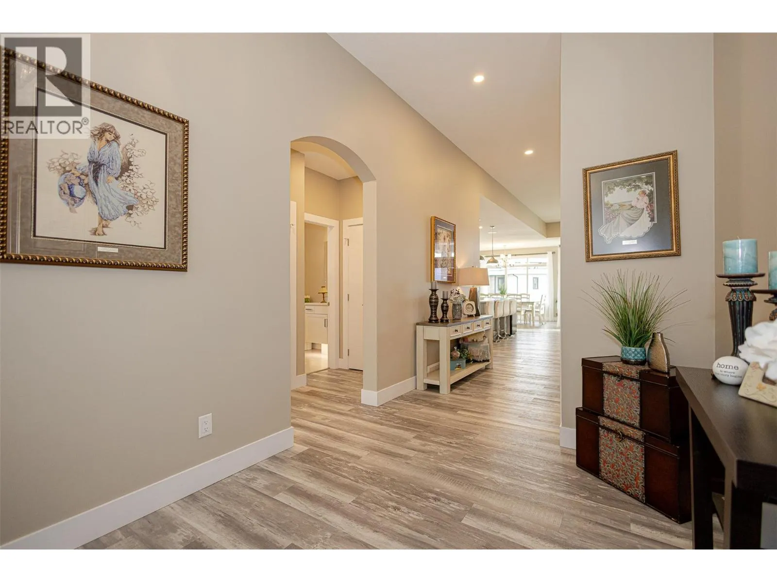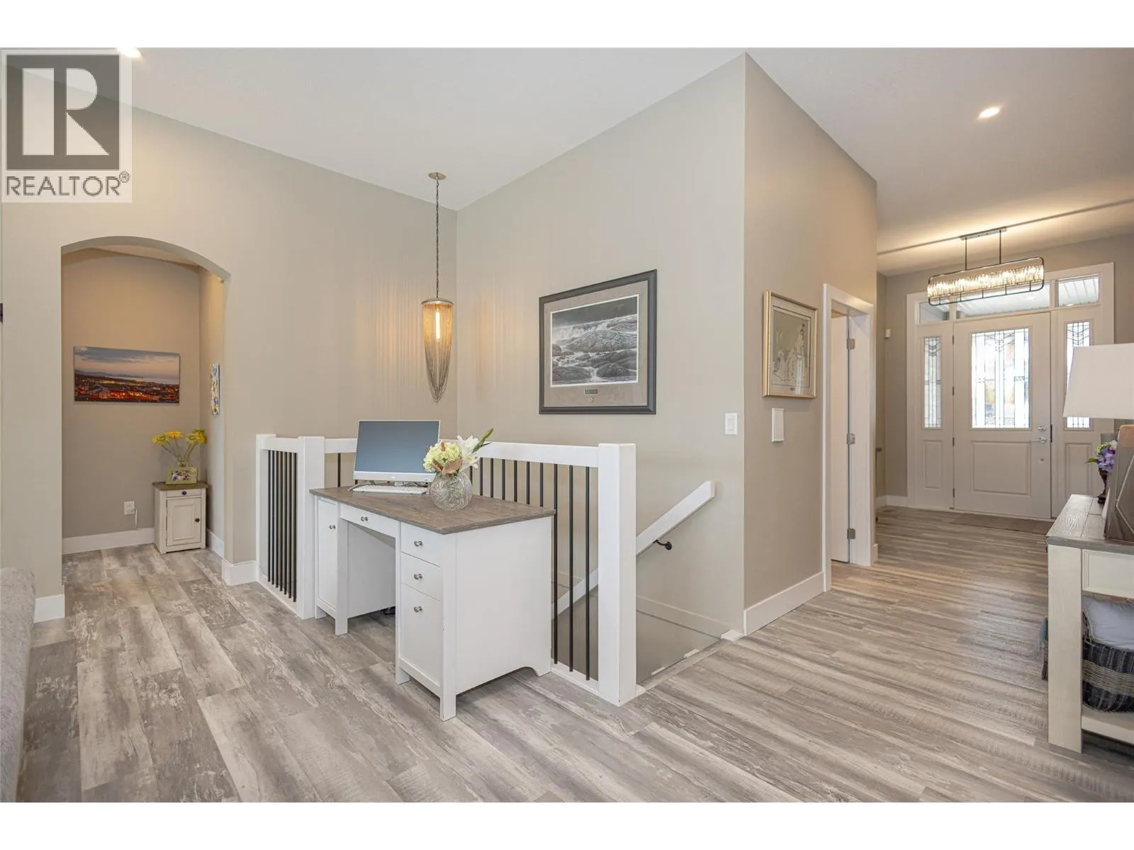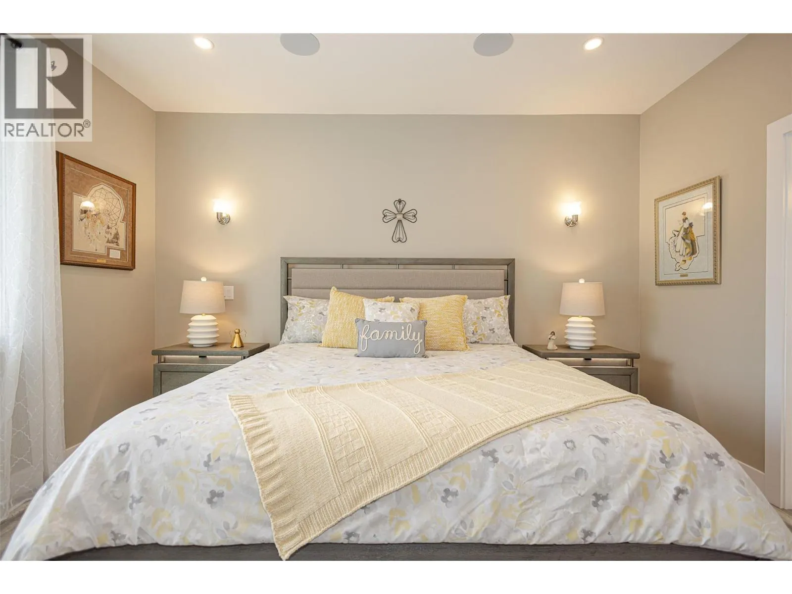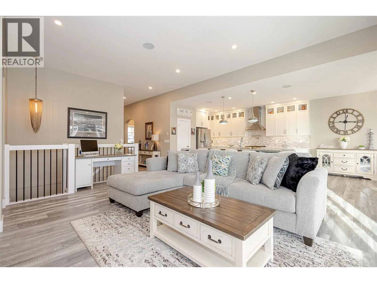Welcome to refined living on Black Mountain. This exceptional custom-built walk-out rancher offers a rare blend of elegance, functionality, and income potential with 5 bedrooms and 4 bathrooms, including a 2-bedroom legal suite and a separate 1-bedroom in-law suite, each with private sidewalk entrances, independent laundry, heating, and dedicated parking. The main residence is bathed in natural light, featuring 10â6â ceilings, oversized windows, and an open-concept design that flows seamlessly to an extended covered deck with stairs to the backyard. The chef-inspired kitchen is a statement piece, showcasing custom cabinetry, quartz countertops, tiled backsplash, an oversized island, walk-in pantry, gas range with pot-filler, wine fridge, and premium appliance package. The primary retreat offers tranquil views and a spa-like five-piece ensuite with dual sinks, jetted soaker tub, stand-alone shower, private water closet, and a walk-in closet. Additional highlights include engineered vinyl plank flooring, modern lighting, built-in speakers, instant hot water, central vacuum with retractable hose, custom shades and screens, designer paint, and approximately 500 sq ft of unfinished storage space. This home also features a double garage, extra parking, and private lower-level patios for the suites. Situated in the prestigious Black Mountain community, close to schools, parks, golf, and ski hill. An exceptional opportunityânothing to do but move in. (id:27476)