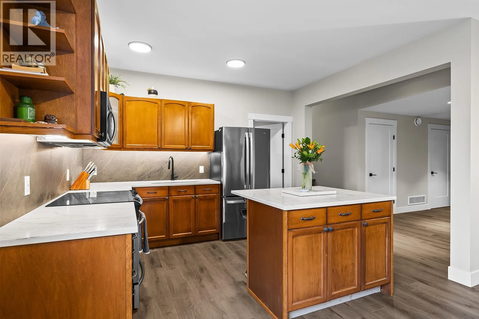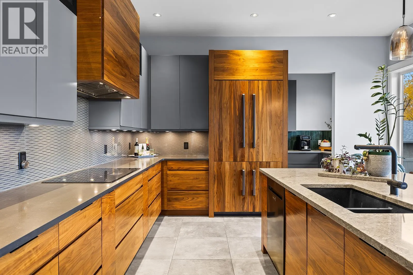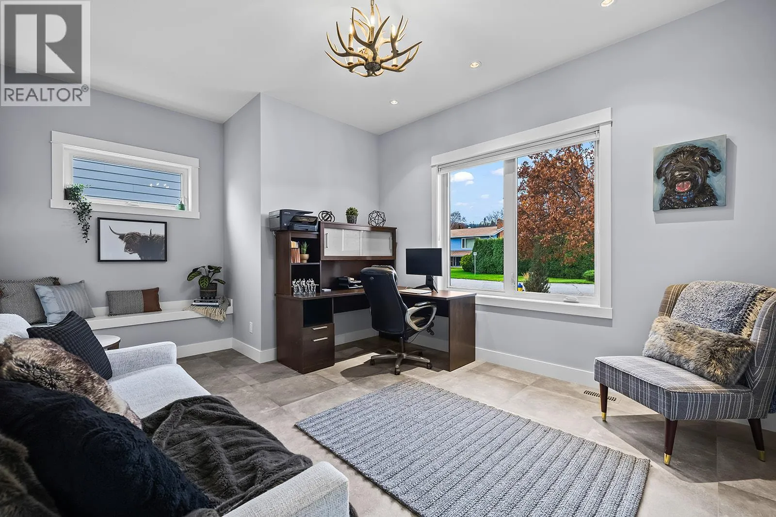 Designed with impressive scale, this home features soaring ceilings, oversized doorways, and a bright, open-concept main living space filled with natural light. The contemporary kitchen offers modern finishes, a large island, a butlerâs pantry, and effortless flow onto a spacious covered deck, perfect for year-round entertaining. The backyard delivers exceptional privacy and lifestyle, complete with a sleek in-ground pool with concrete patio surround, mature landscaping, and unobstructed views toward land soon to be organic orchard. With six bedrooms, plus an office and five bathrooms, this residence provides outstanding flexibility for families of all sizes. The upper level includes four generously sized bedrooms, including one with its own ensuite, a standout primary suite with an oversized layout and true walk-in closet, and a large laundry room for added convenience. The main floor offers a dedicated office and bathroom, while the lower level features its own kitchen, laundry, bathroom, and two bedrooms, along with a multi-purpose room. Making it ideal for guests, extended family, or a private living space with a separate entrance . Those who appreciate extra garage and workspace will enjoy the true double garage with an attached shop, along with abundant additional parking. Every detail reflects quality craftsmanship and thoughtful design. Positioned on a quiet street in the Lower Mission, this home is an uncommon find in one of Kelownaâs most desirable pockets. (id:27476)