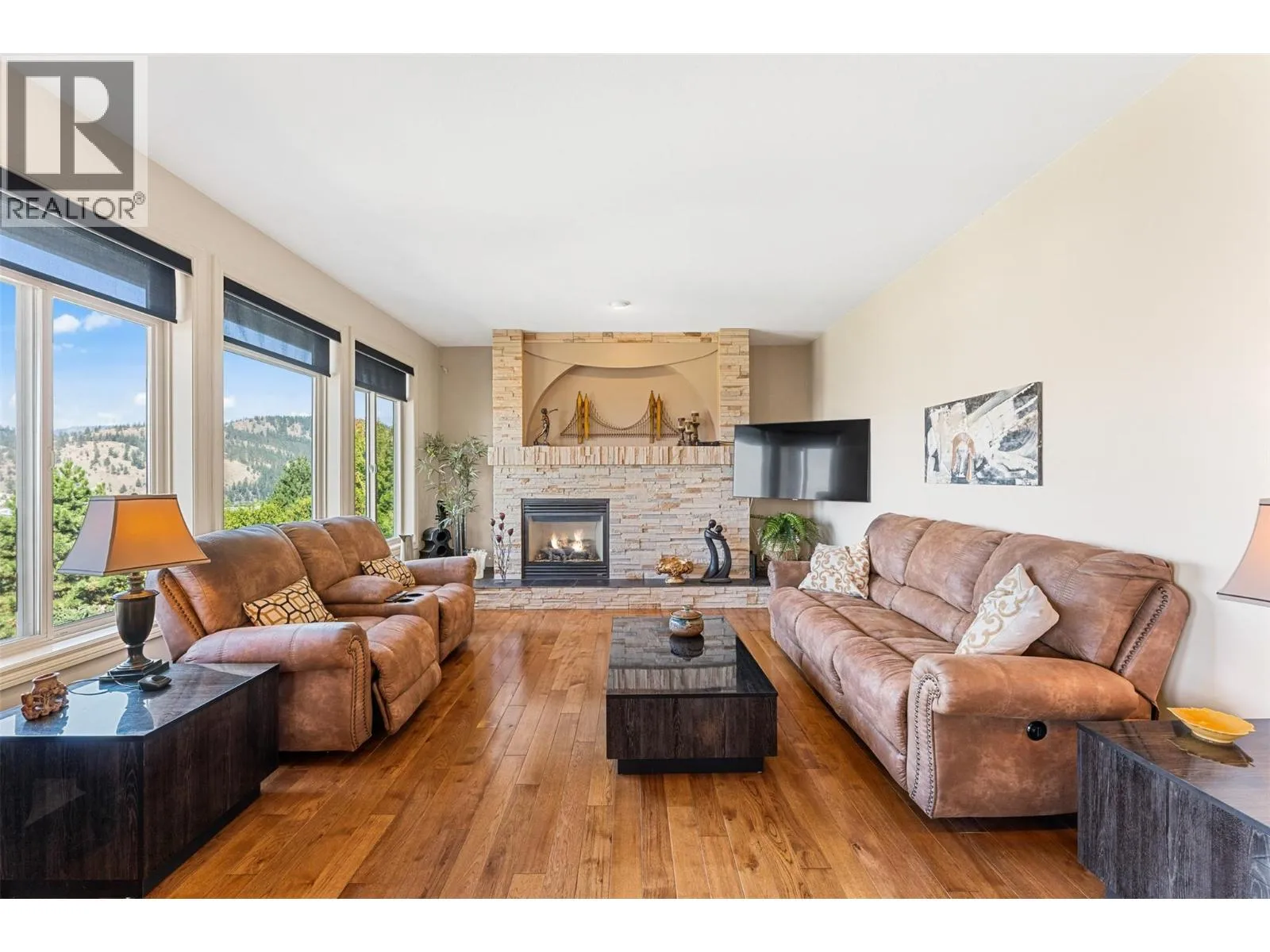 Exceptionally maintained walkout rancher with fantastic views of Kelowna. This home is located in the prime, lakeview side of Dilworth Mountain just minutes to downtown. Entry of the home flows seamlessly to the open concept main living area. The kitchen has been beautifully renovated with custom wood cabinetry, granite countertops and stainless-steel appliances with a separate wine refrigerator. Large centre island and ample counter space. In the living room is a gas fireplace with surrounding rock work. Off the dining area enjoy access to the covered patio perfect for grilling, dining and watching sunset over the valley and the lake. Main level primary with 5 piece en suite including a soaking bathtub, and walk-in closet. One additional bedroom is located on the main floor. The lower level is a great entertainment space offering a huge rec room, two bedrooms and a bathroom. Walkout access through the sliding glass doors leads to a covered patio with stunning lake, city and valley views. Two car garage. Low maintenance, mature landscaping. Excellent neighborhood close to great schools, and parks. (id:27476)