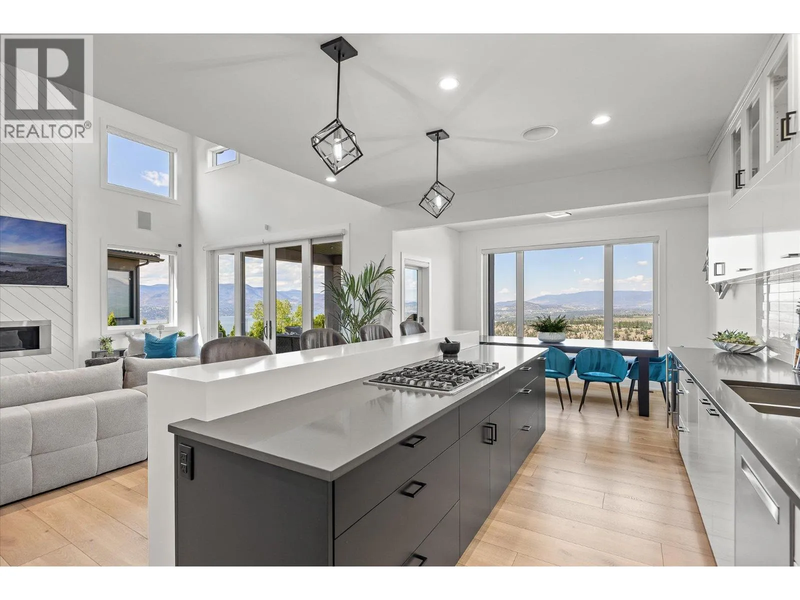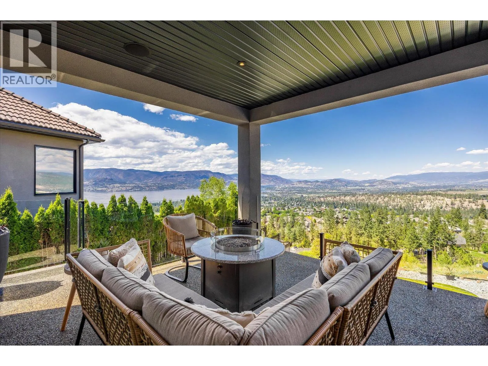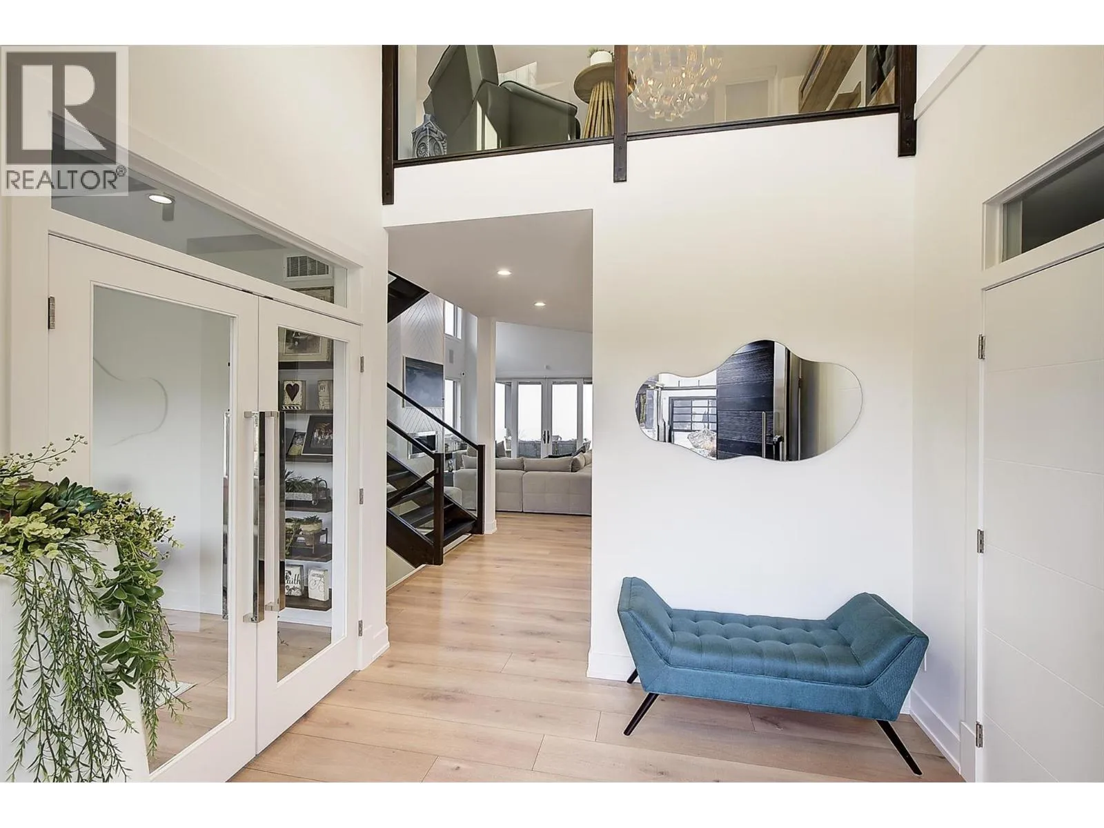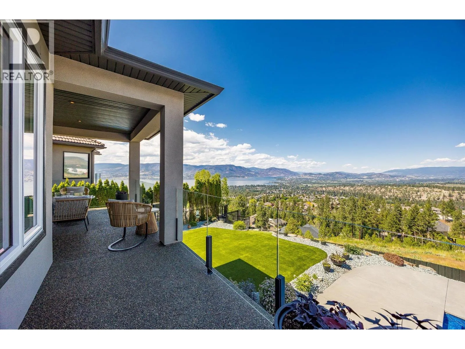 Step into elevated living in this beautifully re-imagined 5-bed + den, 4-bath residence, where luxury, comfort, and panoramic views converge. From the moment you arrive, the grand entry and soaring vaulted ceilings set the tone for a home designed to impress, while the chefâs kitchen, featuring premium appliances and a butlerâs pantry, anchors the heart of the main level with style and function. Expansive windows frame breathtaking 180-degree vistas across the city of Kelowna and Okanagan Lake, creating an extraordinary backdrop for everyday living and entertaining. The primary retreat, privately positioned on the main floor, offers a serene escape complete with stunning lake views and a spa-inspired ensuite. Two additional spacious bedrooms upstairs offer comfort and privacy for family and guests. The walk-out lower level is an entertainerâs haven, thoughtfully designed with a refined whiskey tasting room, temperature-controlled wine cellar, sleek bar, generous recreation space, and a state-of-the-art theatre. Step outside to the private backyard and pool area, where the views become more spectacular and unforgettable. Completing this exceptional home are four garage spaces, including a double and tandem garage, with EV charging and abundant room for a boat or RV, along with extensive additional parking for guests. Every element of this residence blends elegance with practicality, offering an unparalleled lifestyle opportunity in one of Kelownaâs most desirable settings. (id:27476)