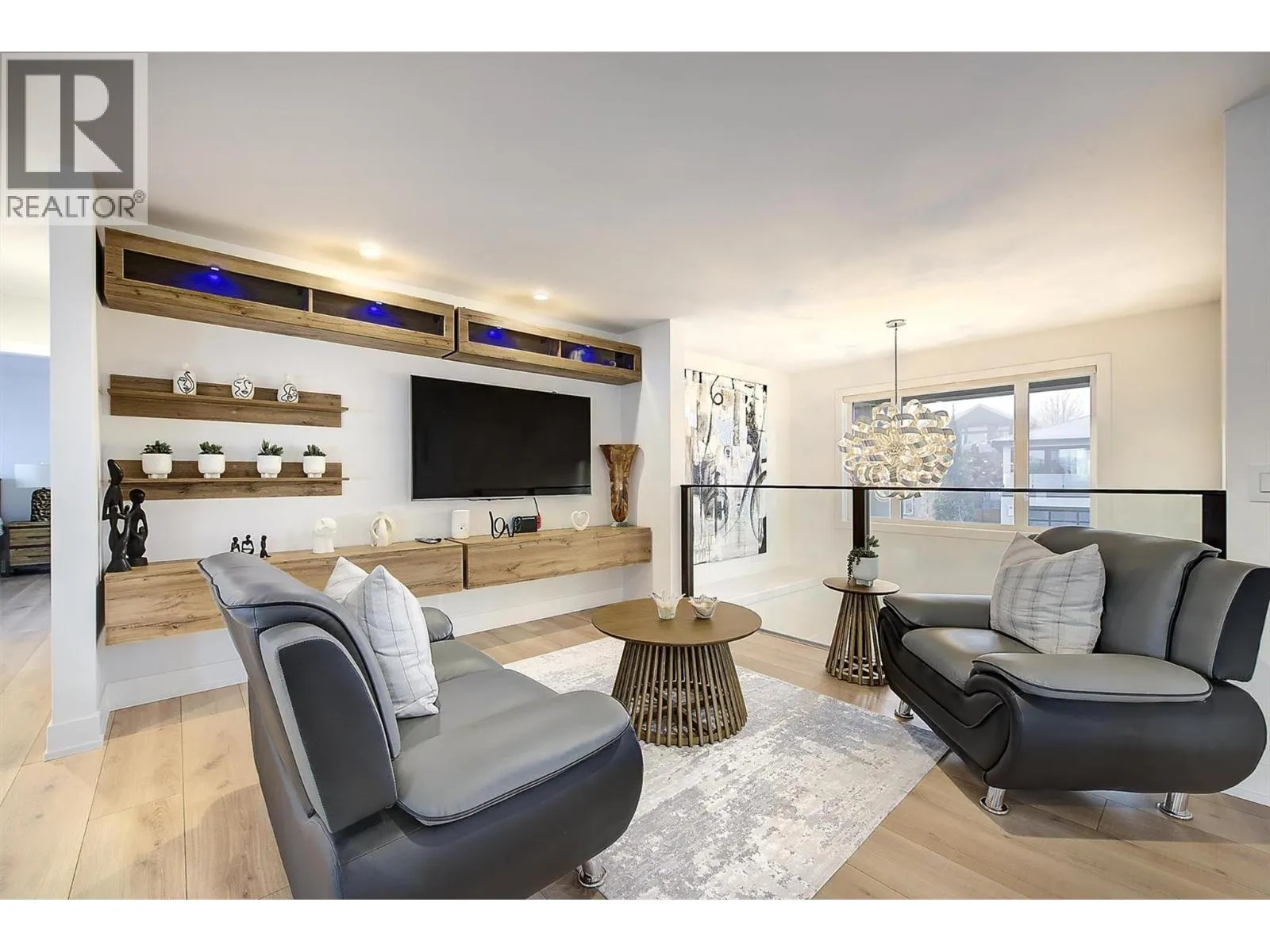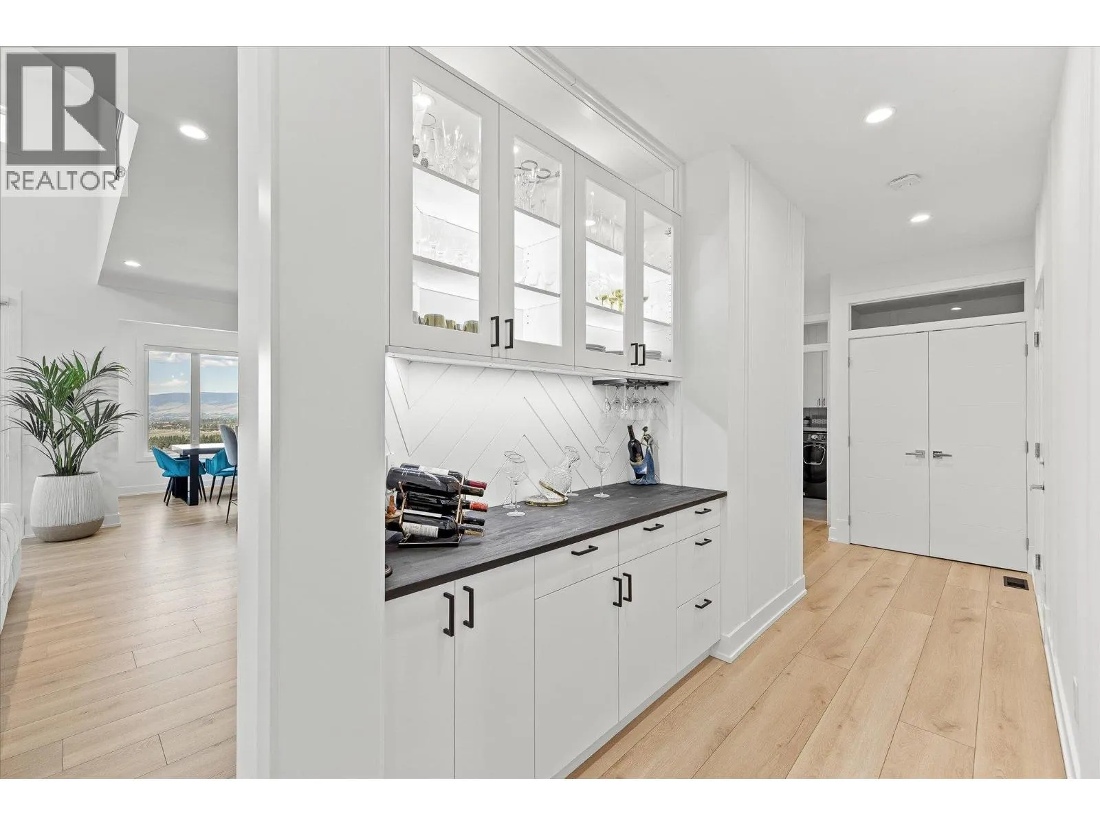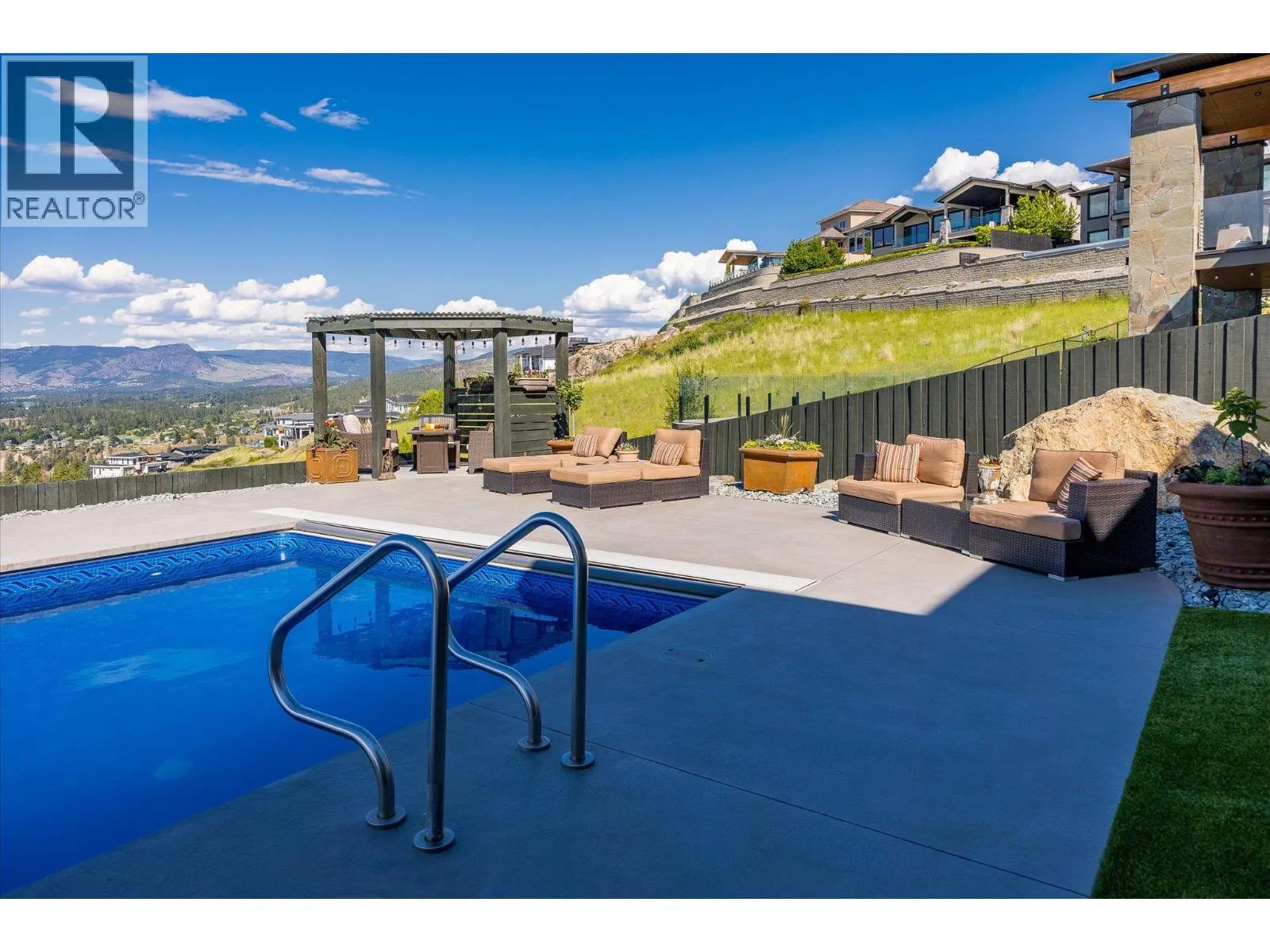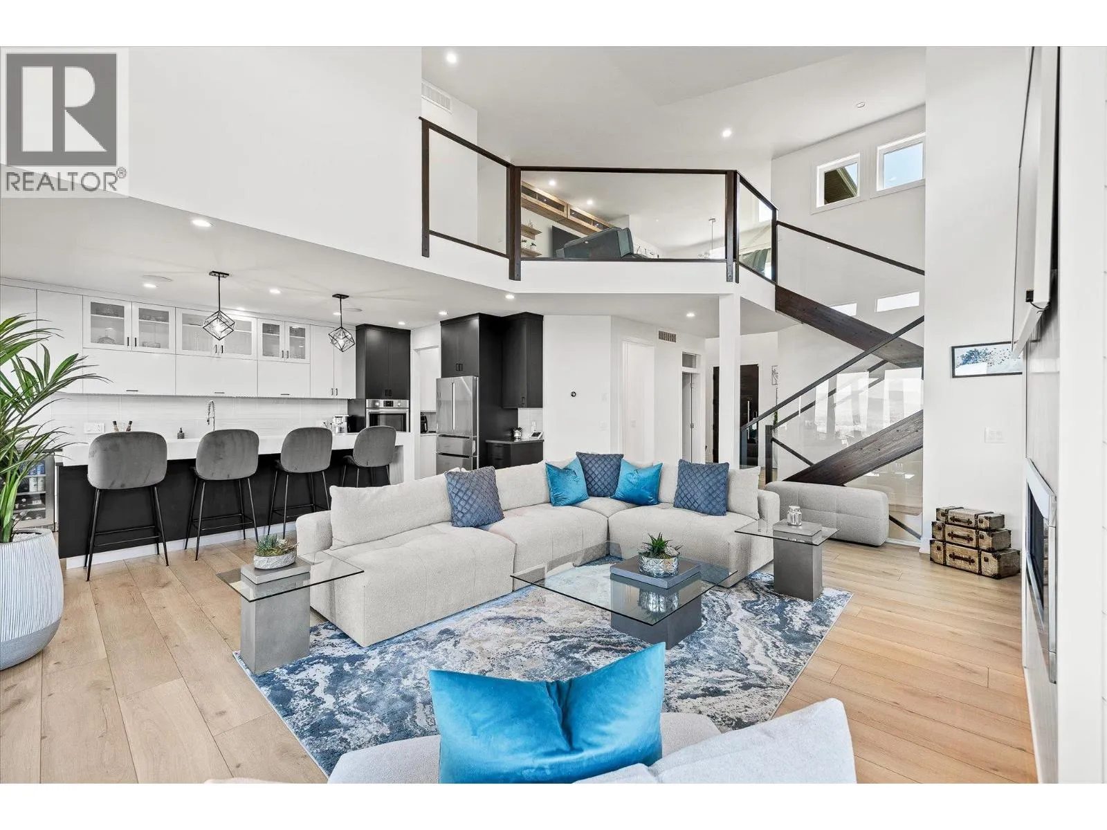 Step into elevated living in this beautifully re-imagined 5-bed + den, 4-bath residence, where luxury, comfort, and panoramic views converge. From the moment you arrive, the grand entry and soaring vaulted ceilings set the tone for a home designed to impress, while the chefâs kitchen, featuring premium appliances and a butlerâs pantry, anchors the heart of the main level with style and function. Expansive windows frame breathtaking 180-degree vistas across the city of Kelowna and Okanagan Lake, creating an extraordinary backdrop for everyday living and entertaining. The primary retreat, privately positioned on the main floor, offers a serene escape complete with stunning lake views and a spa-inspired ensuite. Two additional spacious bedrooms upstairs offer comfort and privacy for family and guests. The walk-out lower level is an entertainerâs haven, thoughtfully designed with a refined whiskey tasting room, temperature-controlled wine cellar, sleek bar, generous recreation space, and a state-of-the-art theatre. Step outside to the private backyard and pool area, where the views become more spectacular and unforgettable. Completing this exceptional home are four garage spaces, including a double and tandem garage, with EV charging and abundant room for a boat or RV, along with extensive additional parking for guests. Every element of this residence blends elegance with practicality, offering an unparalleled lifestyle opportunity in one of Kelownaâs most desirable settings. (id:27476)