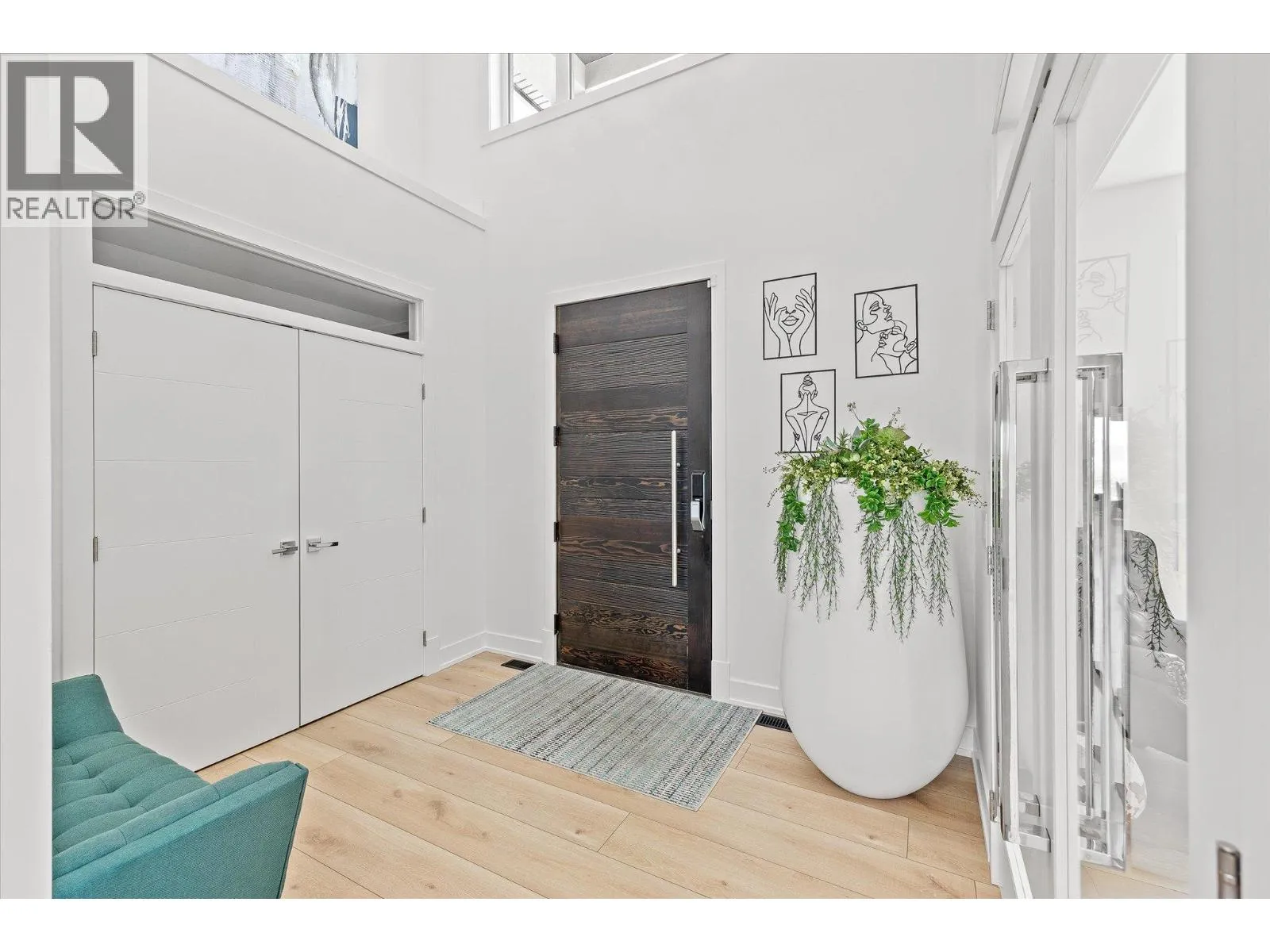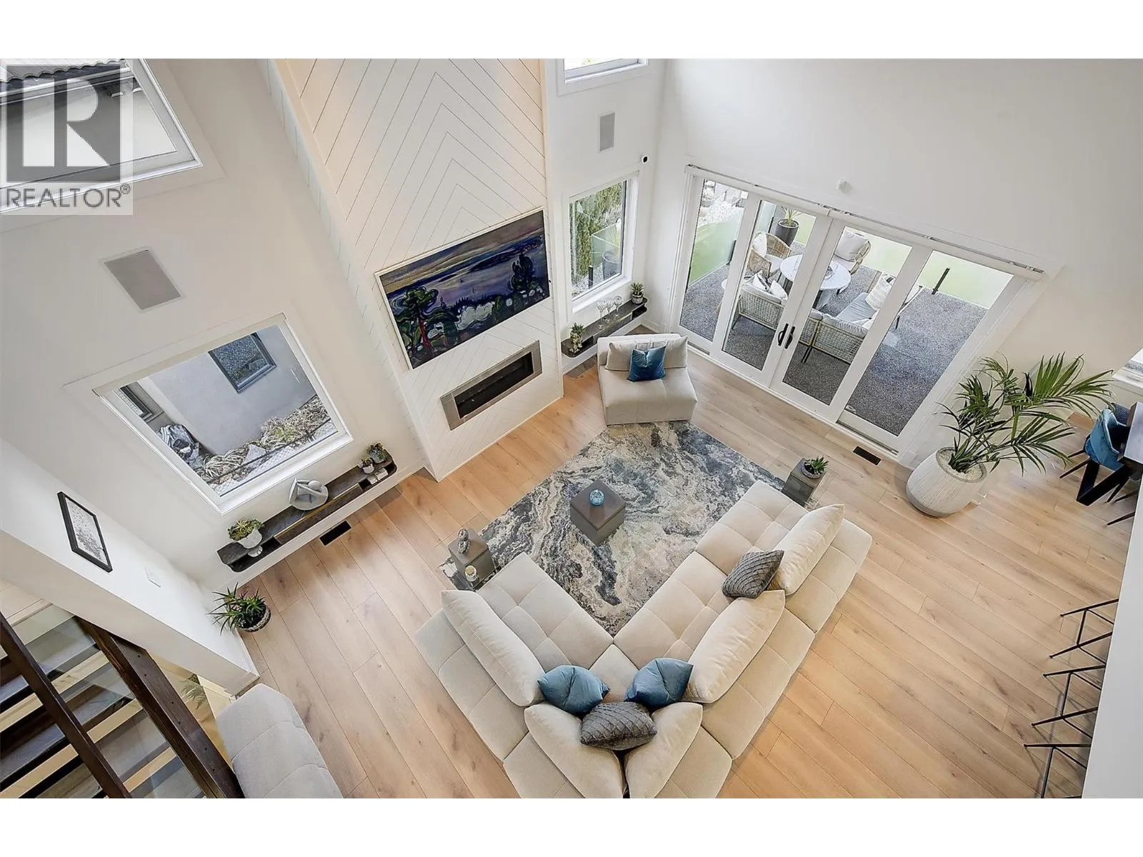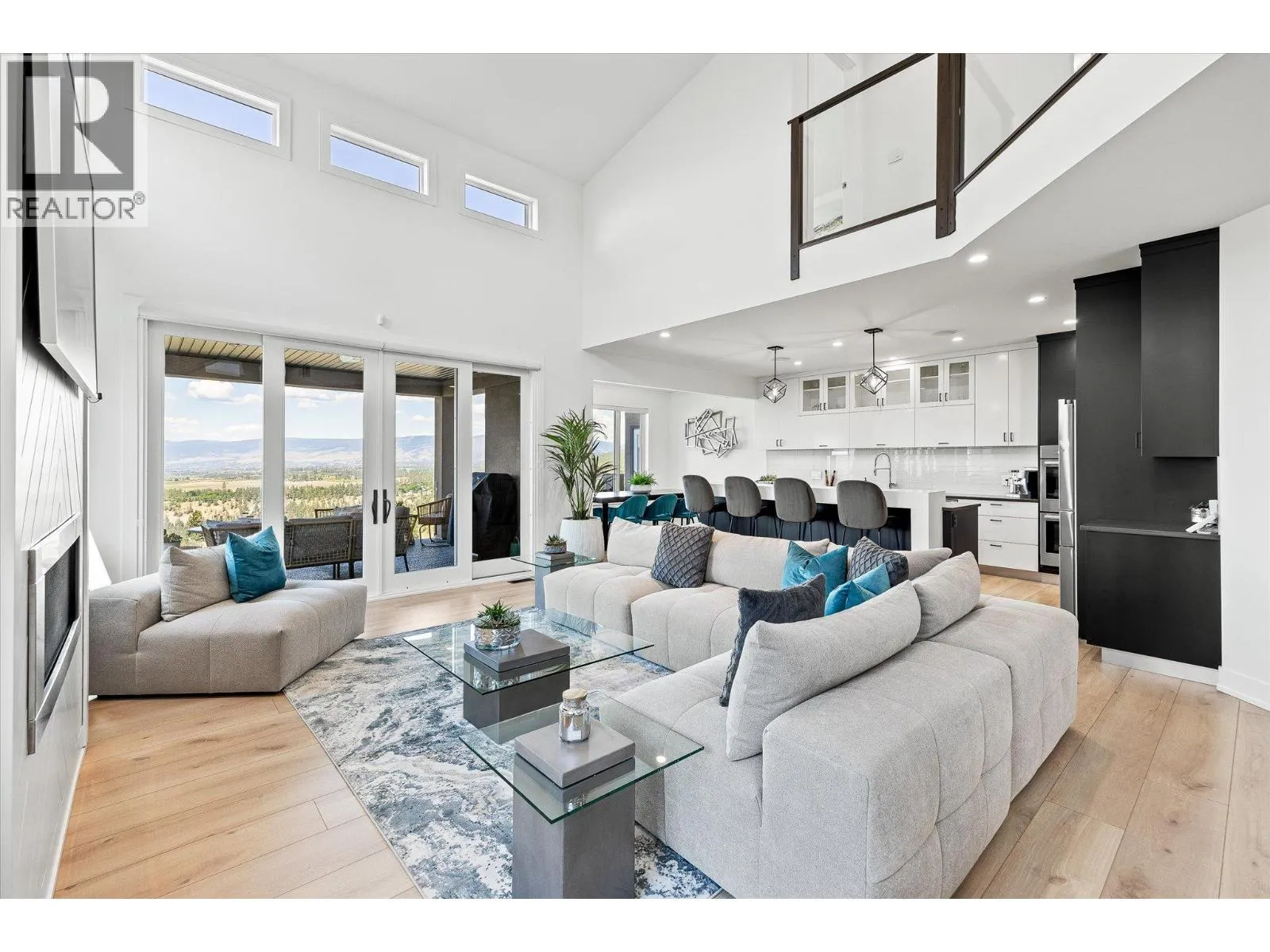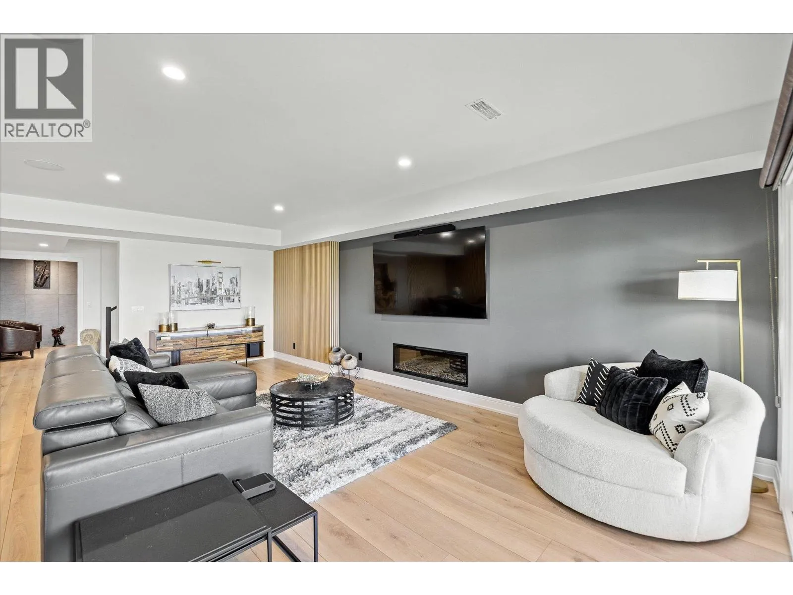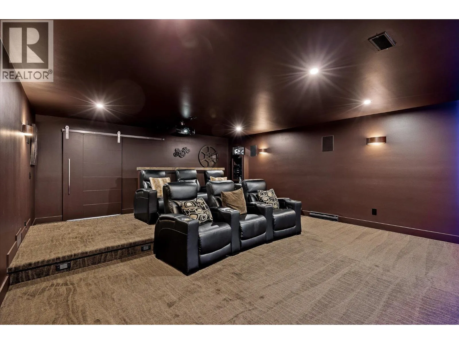 Step into elevated living in this beautifully re-imagined 5-bed + den, 4-bath residence, where luxury, comfort, and panoramic views converge. From the moment you arrive, the grand entry and soaring vaulted ceilings set the tone for a home designed to impress, while the chefâs kitchen, featuring premium appliances and a butlerâs pantry, anchors the heart of the main level with style and function. Expansive windows frame breathtaking 180-degree vistas across the city of Kelowna and Okanagan Lake, creating an extraordinary backdrop for everyday living and entertaining. The primary retreat, privately positioned on the main floor, offers a serene escape complete with stunning lake views and a spa-inspired ensuite. Two additional spacious bedrooms upstairs offer comfort and privacy for family and guests. The walk-out lower level is an entertainerâs haven, thoughtfully designed with a refined whiskey tasting room, temperature-controlled wine cellar, sleek bar, generous recreation space, and a state-of-the-art theatre. Step outside to the private backyard and pool area, where the views become more spectacular and unforgettable. Completing this exceptional home are four garage spaces, including a double and tandem garage, with EV charging and abundant room for a boat or RV, along with extensive additional parking for guests. Every element of this residence blends elegance with practicality, offering an unparalleled lifestyle opportunity in one of Kelownaâs most desirable settings. (id:27476)