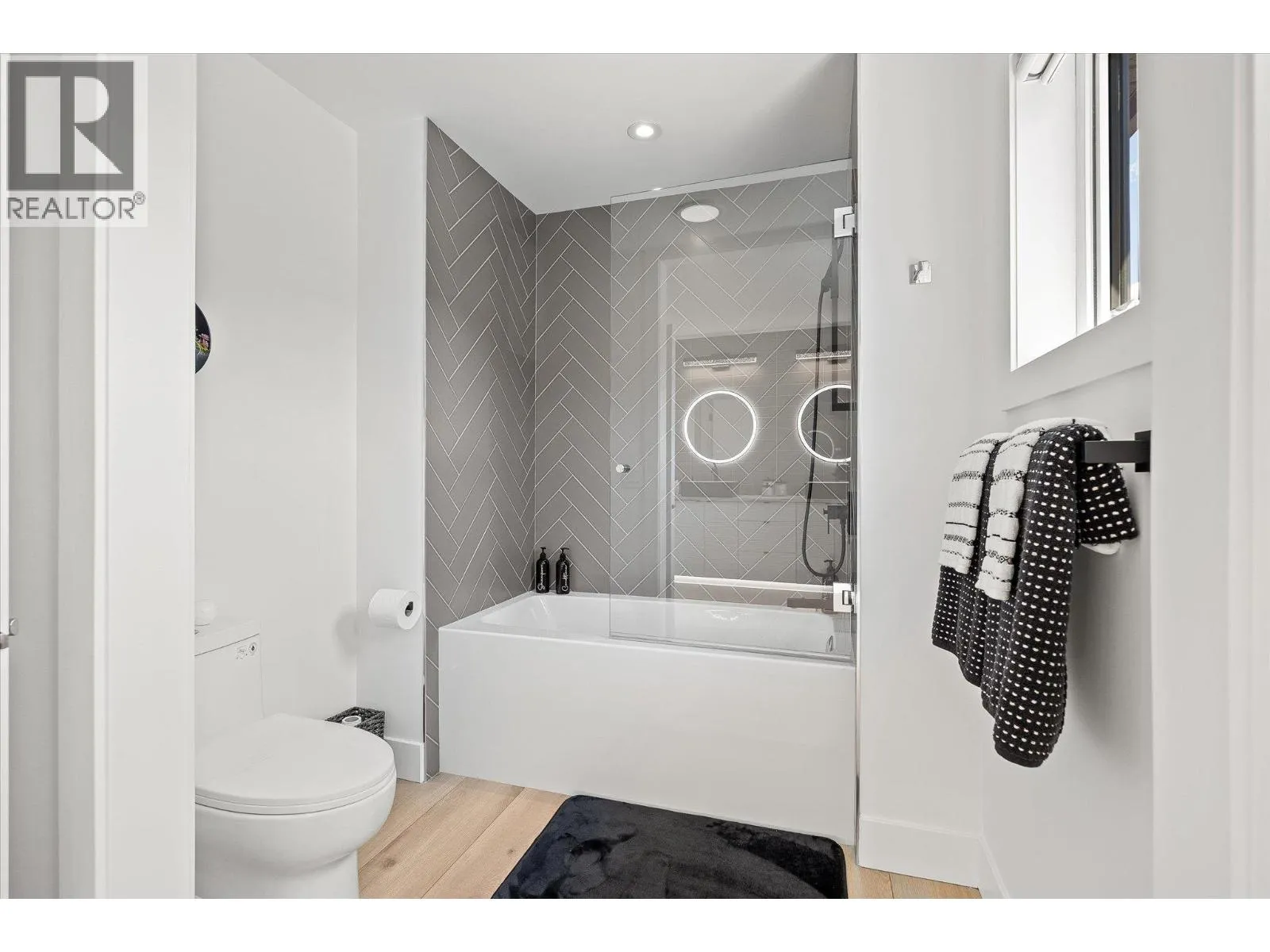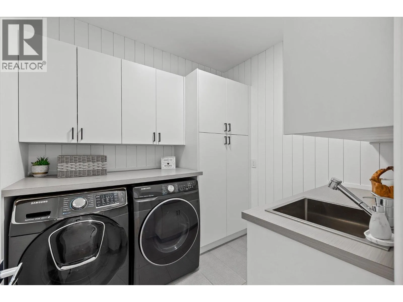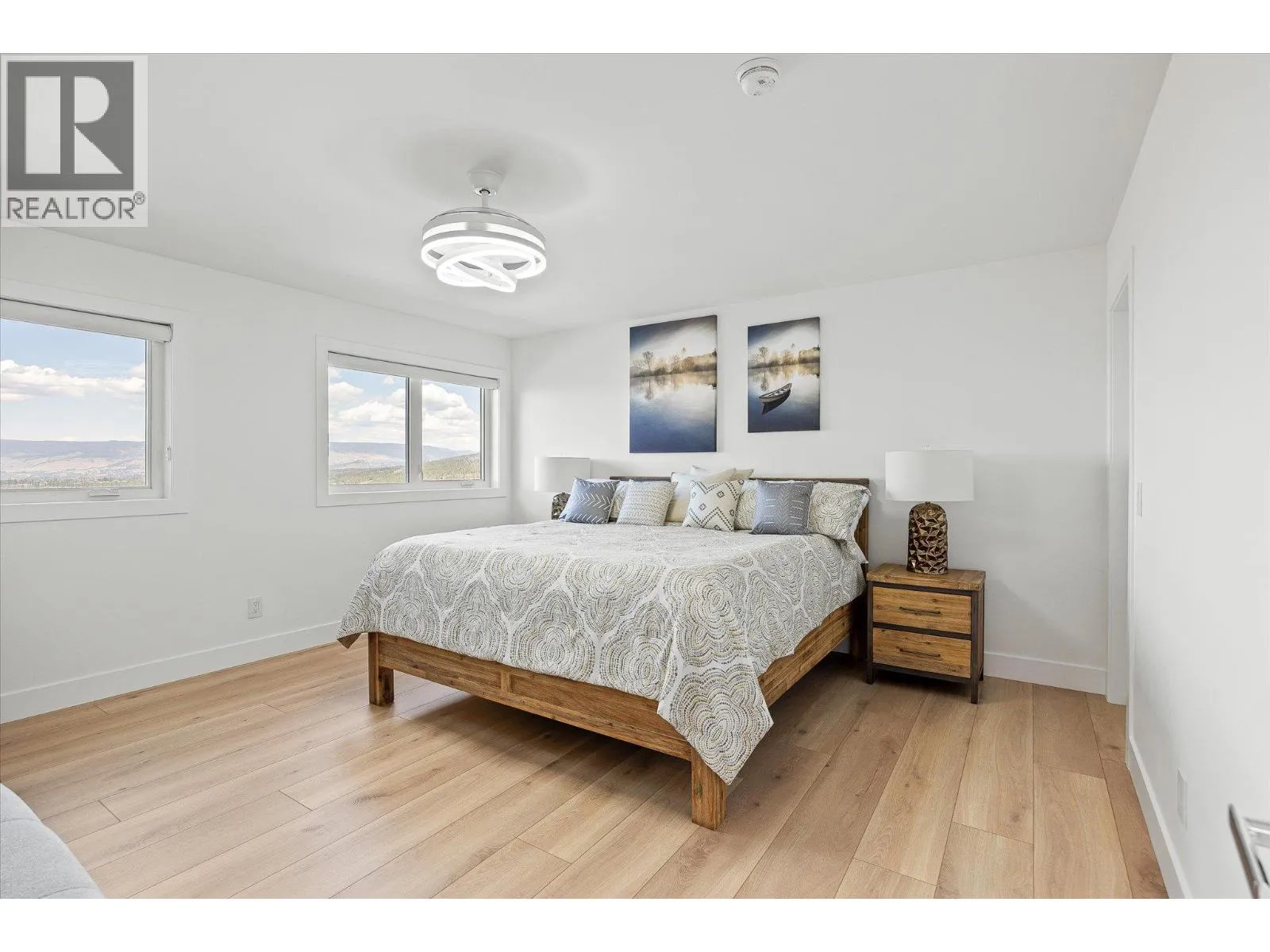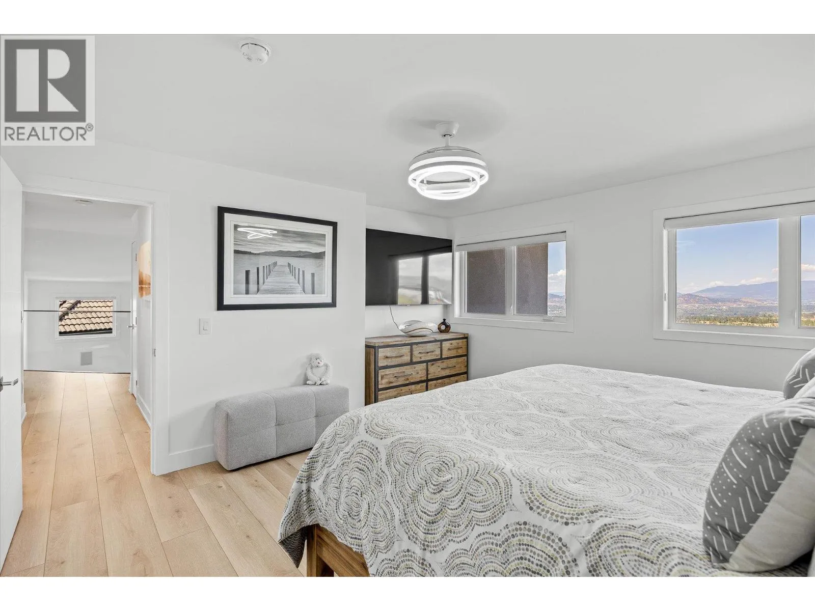 Step into elevated living in this beautifully re-imagined 5-bed + den, 4-bath residence, where luxury, comfort, and panoramic views converge. From the moment you arrive, the grand entry and soaring vaulted ceilings set the tone for a home designed to impress, while the chefâs kitchen, featuring premium appliances and a butlerâs pantry, anchors the heart of the main level with style and function. Expansive windows frame breathtaking 180-degree vistas across the city of Kelowna and Okanagan Lake, creating an extraordinary backdrop for everyday living and entertaining. The primary retreat, privately positioned on the main floor, offers a serene escape complete with stunning lake views and a spa-inspired ensuite. Two additional spacious bedrooms upstairs offer comfort and privacy for family and guests. The walk-out lower level is an entertainerâs haven, thoughtfully designed with a refined whiskey tasting room, temperature-controlled wine cellar, sleek bar, generous recreation space, and a state-of-the-art theatre. Step outside to the private backyard and pool area, where the views become more spectacular and unforgettable. Completing this exceptional home are four garage spaces, including a double and tandem garage, with EV charging and abundant room for a boat or RV, along with extensive additional parking for guests. Every element of this residence blends elegance with practicality, offering an unparalleled lifestyle opportunity in one of Kelownaâs most desirable settings. (id:27476)