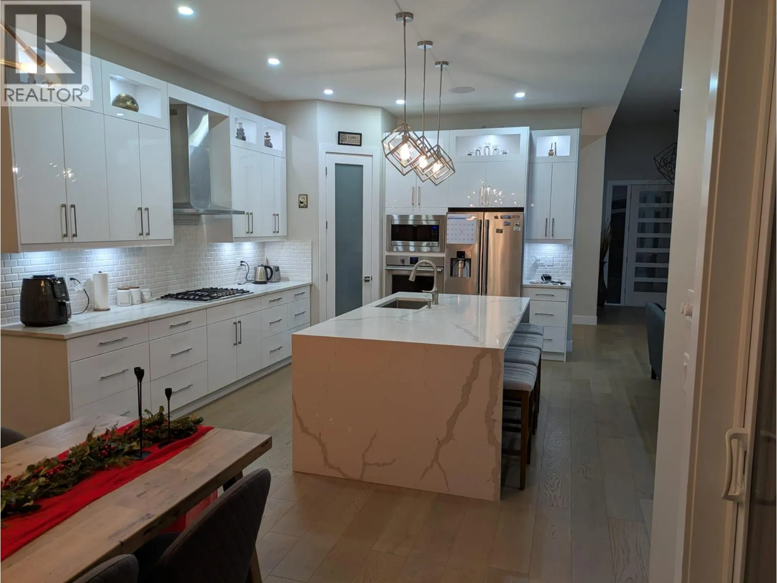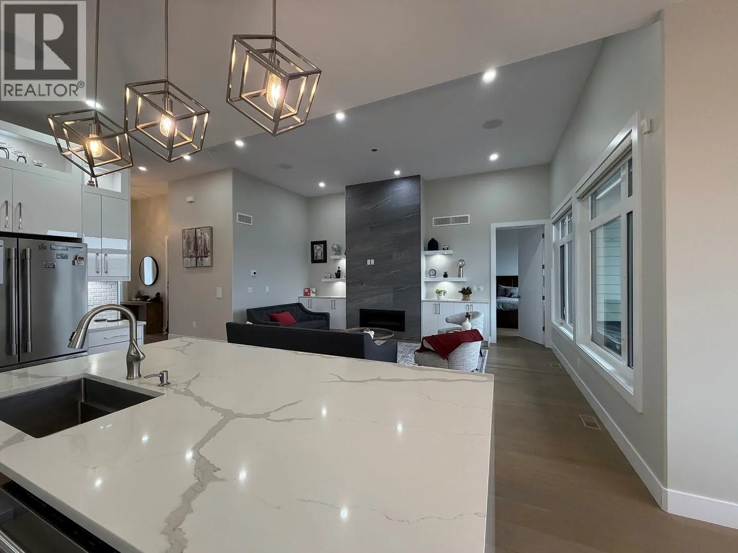 Welcome to this exceptional 3,500+ sq. ft. walk-out rancher, perfectly positioned in the prestigious Black Mountain community. Designed for modern families and savvy buyers alike, this home offers 4 spacious bedrooms, 4 full bathrooms, a den, along with a self-contained 1-bedroom legal suite with private entranceâideal for rental income, extended family, or guests. Step inside to experience bright, open-concept living enhanced by high-end finishes and thoughtful upgrades throughout. The home features hardwood and vinyl plank flooring in the main living areas, quartz countertops, custom cabinetry, a walk-in pantry, contemporary fixtures, and a built-in vacuum system. The instant hot water tank and all included appliances add everyday convenience. Entertain with ease on the covered deck, where you can relax and take in beautiful valley views, or enjoy the comfort of ceiling speakers and a security camera system for both ambiance and peace of mind. A double garage provides ample space for vehicles and storage. This one-of-a-kind residence delivers the perfect balance of luxury, functionality, and income potential, all within a high-end neighborhood close to schools, shopping, golf, and outdoor recreation. A rare opportunity to own a truly complete home in one of Black Mountainâs most desirable locations. (id:27476)