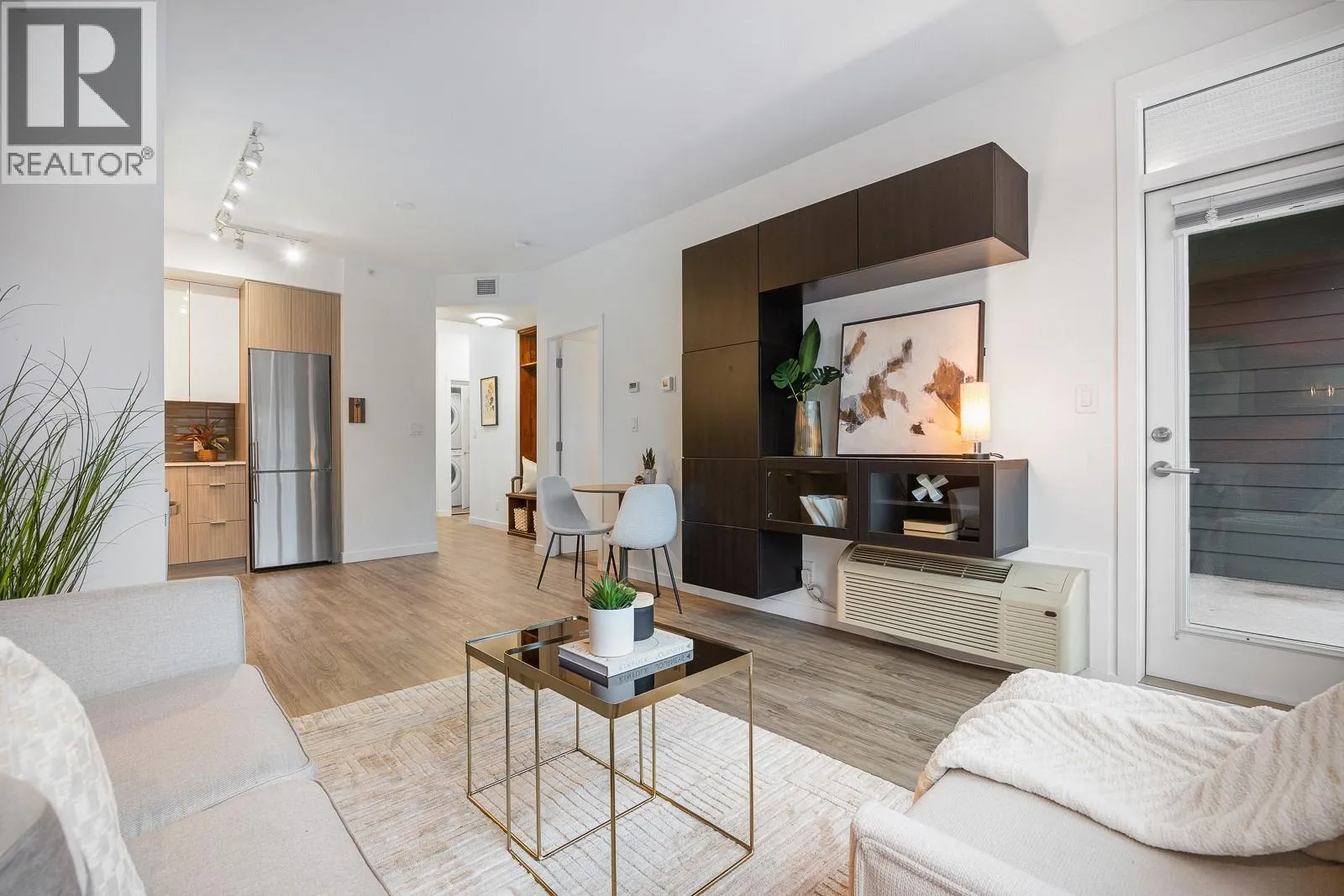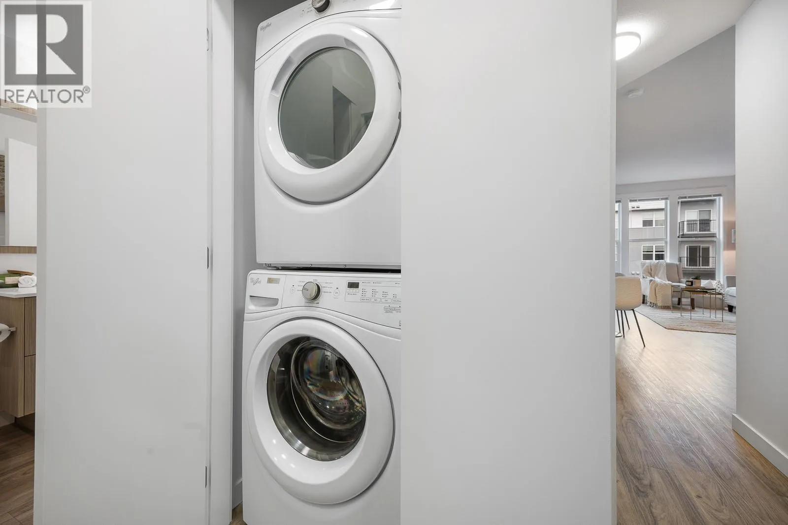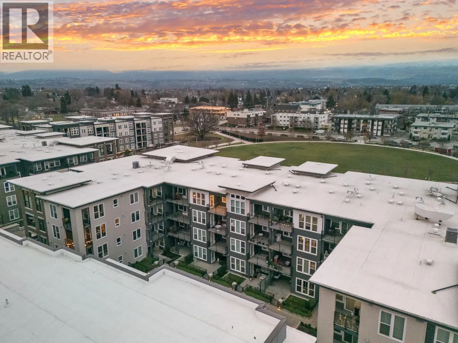 Set in a quiet courtyard-facing position, this top-floor 2-bedroom condo offers a rare blend of comfort, style, and location in a pet-friendly (yup, bring your dog, any size!), LEED-certified building by Mission Group. Inside, thoughtful upgrades immediately stand out, including a custom entry bench, soaring 9-foot ceilings, and durable vinyl flooring that ties the space together. The kitchen is clean and contemporary, featuring stainless steel appliances, quartz counters, and a modern tile backsplash - equally suited for everyday living or entertaining. The bathroom connects conveniently to the primary bedroom and includes a deep soaker tub, creating a calm space to unwind at the end of the day. Step outside to your private patio overlooking the landscaped courtyard, offering a peaceful escape from city life. The location is hard to beat. Youâre steps from Rowcliffe Park with access to community gardens, a dog park, running track, and playground, while also being within easy walking distance to the hospital and on a direct transit route to UBCO. Downtown Kelownaâs restaurants, shops, and waterfront are just minutes away. Additional perks include a storage locker, secure bike storage, and impressively low strata fees of under $300 per month. Whether youâre a healthcare professional, student, investor, or someone who values walkability and an active lifestyle, this move-in-ready condo checks all the boxes. (id:27476)