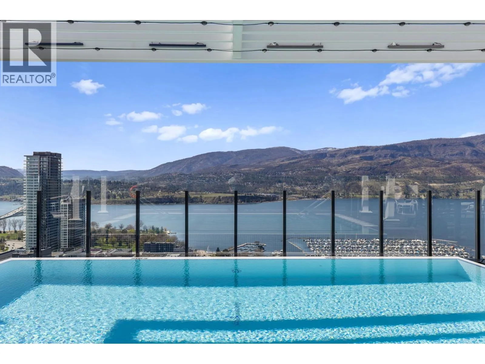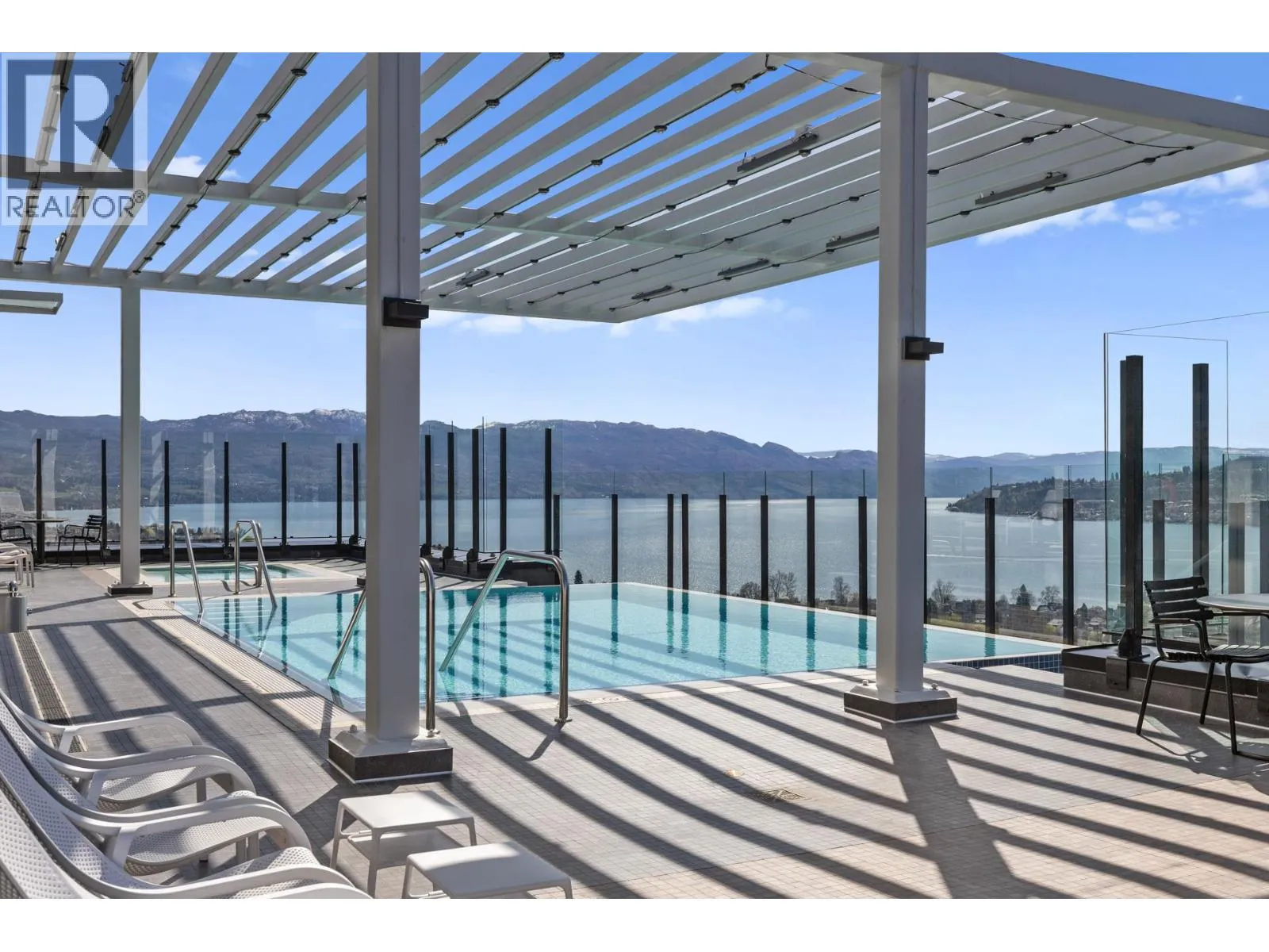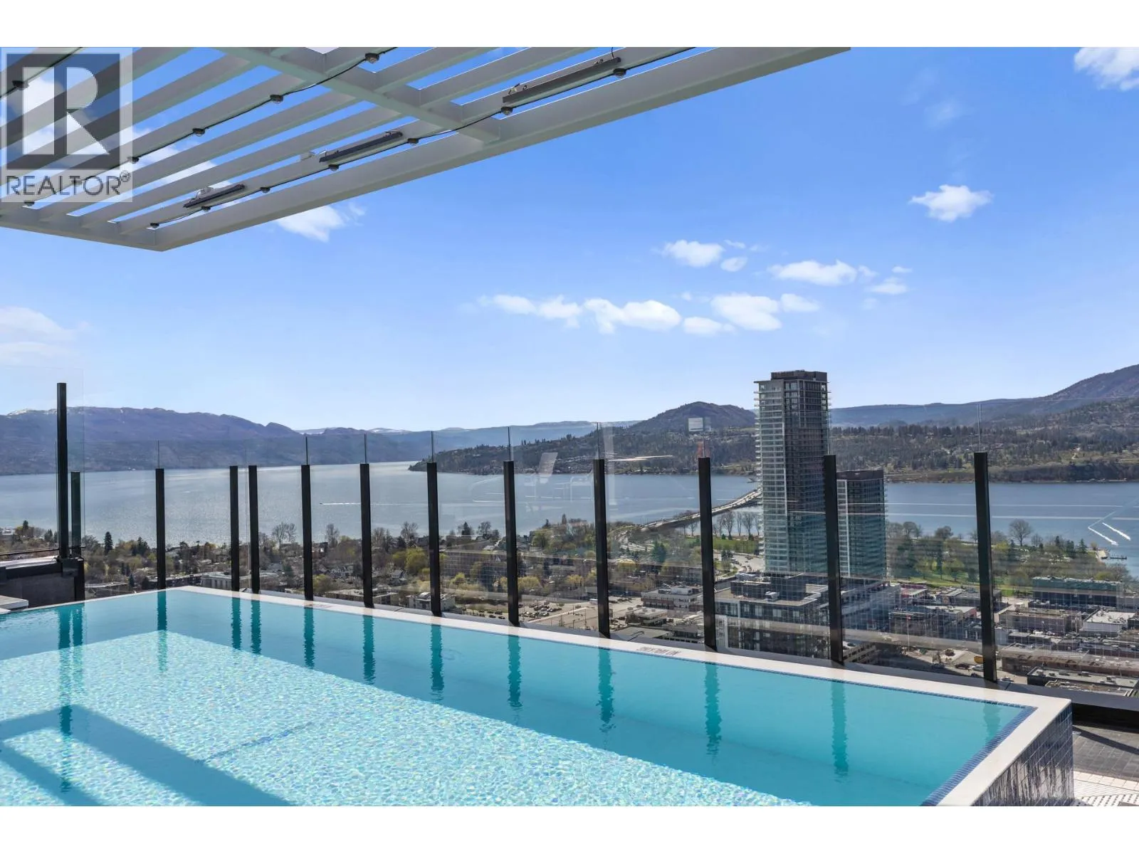 This 2 bedroom, 2 bath PENTHOUSE spans 998 sq. ft. and features a modern natural palette, luxury vinyl plank flooring, and high-end finishes throughout. The bright open-concept layout is framed by walls of windows showcasing sweeping lake, mountain, and city views. The chefâs kitchen boasts UPGRADED Bosch appliances including an induction cooktop, ultra quiet dishwasher, beautiful fridge/freezer and a beverage fridge. There is a large island with bar seating, built-in pantry, charging cubby/coffee station and generous storage, flowing seamlessly into the spacious living area. Step through dual sliding doors to the HUGE 330sqft partially covered deck - perfect for entertaining or unwinding, with a glass railing to take in all of the views. The primary suite includes a walk-in closet and sleek ensuite with walk-in shower, while the second bedroom is paired with a stylish 4-piece bath with tiled tub/shower combo. Enjoy in-suite laundry, pet-friendly living with no height restrictions, TWO PARKING stalls (one with EV charger) and storage. Residents have access to world-class amenities including a ROOFTOP POOL and HOT TUB (just a staircase away), outdoor BBQs, fire tables, lounge areas, fitness center, community garden, bocce court, and a dog run with wash station. Downtown living doesnât get better than this! Just a few blocks from the beach and steps from shops, restaurants, and urban living, Bertram at Bernard offers the ultimate downtown lifestyle. GST paid. (id:27476)