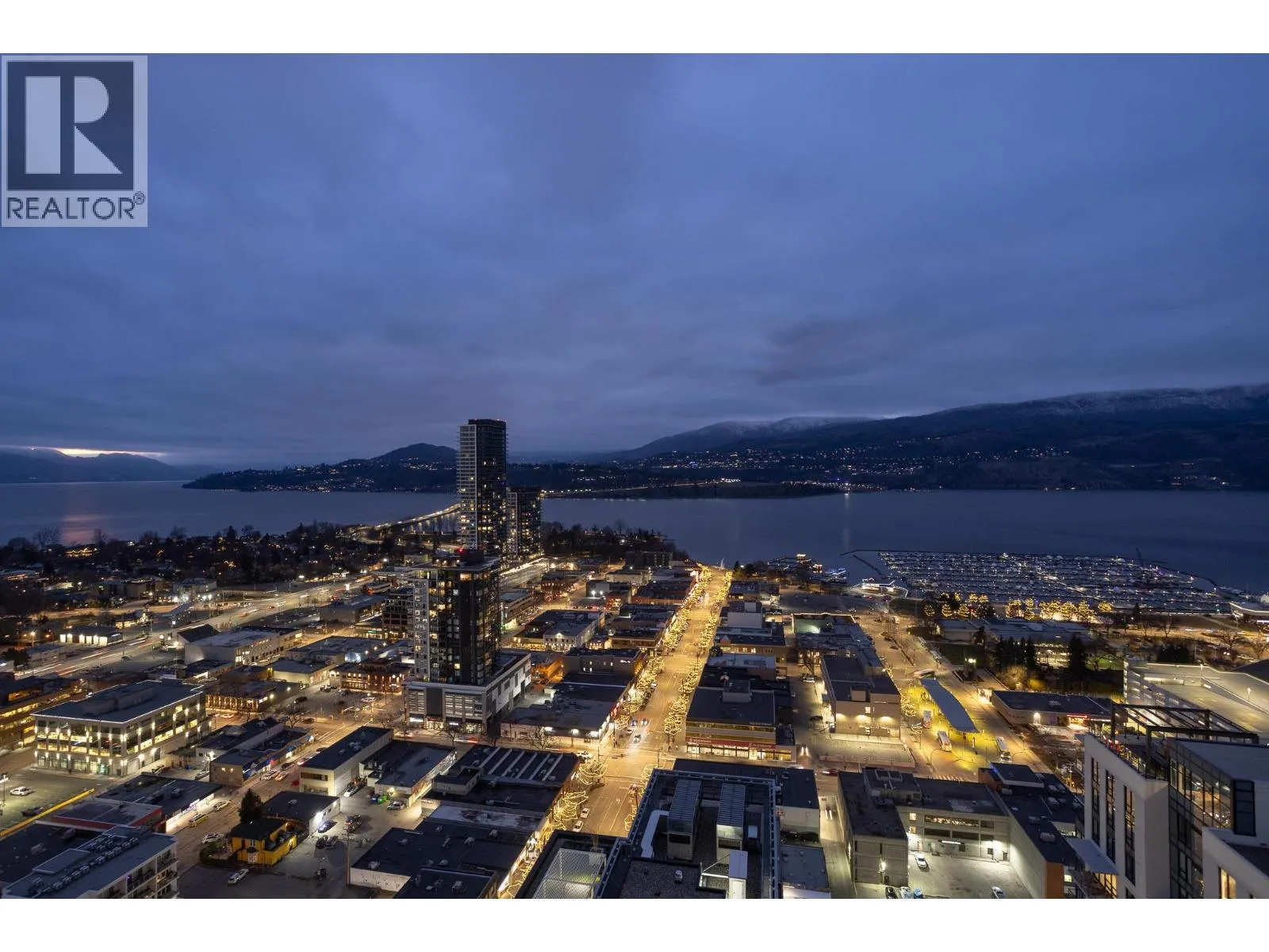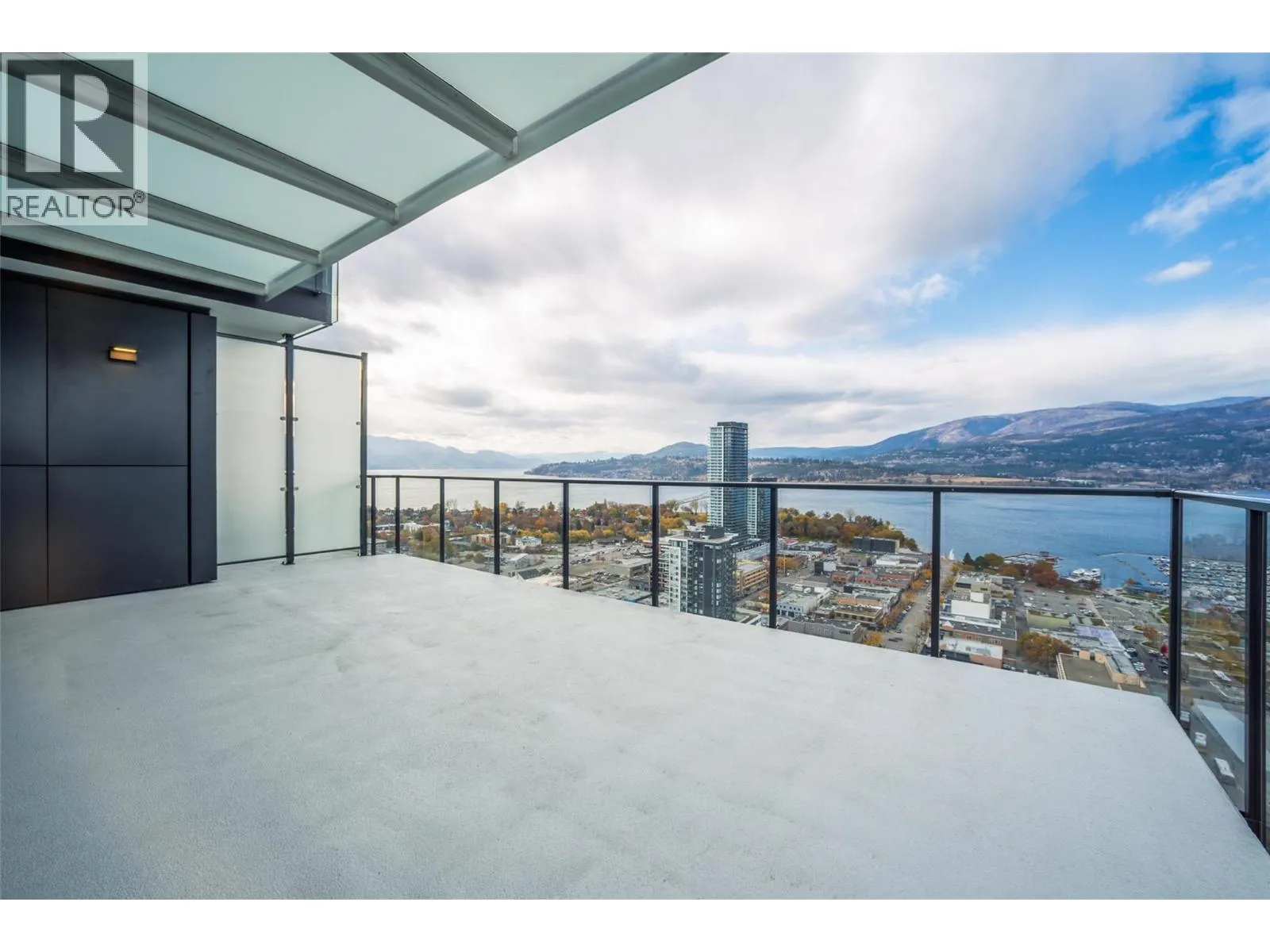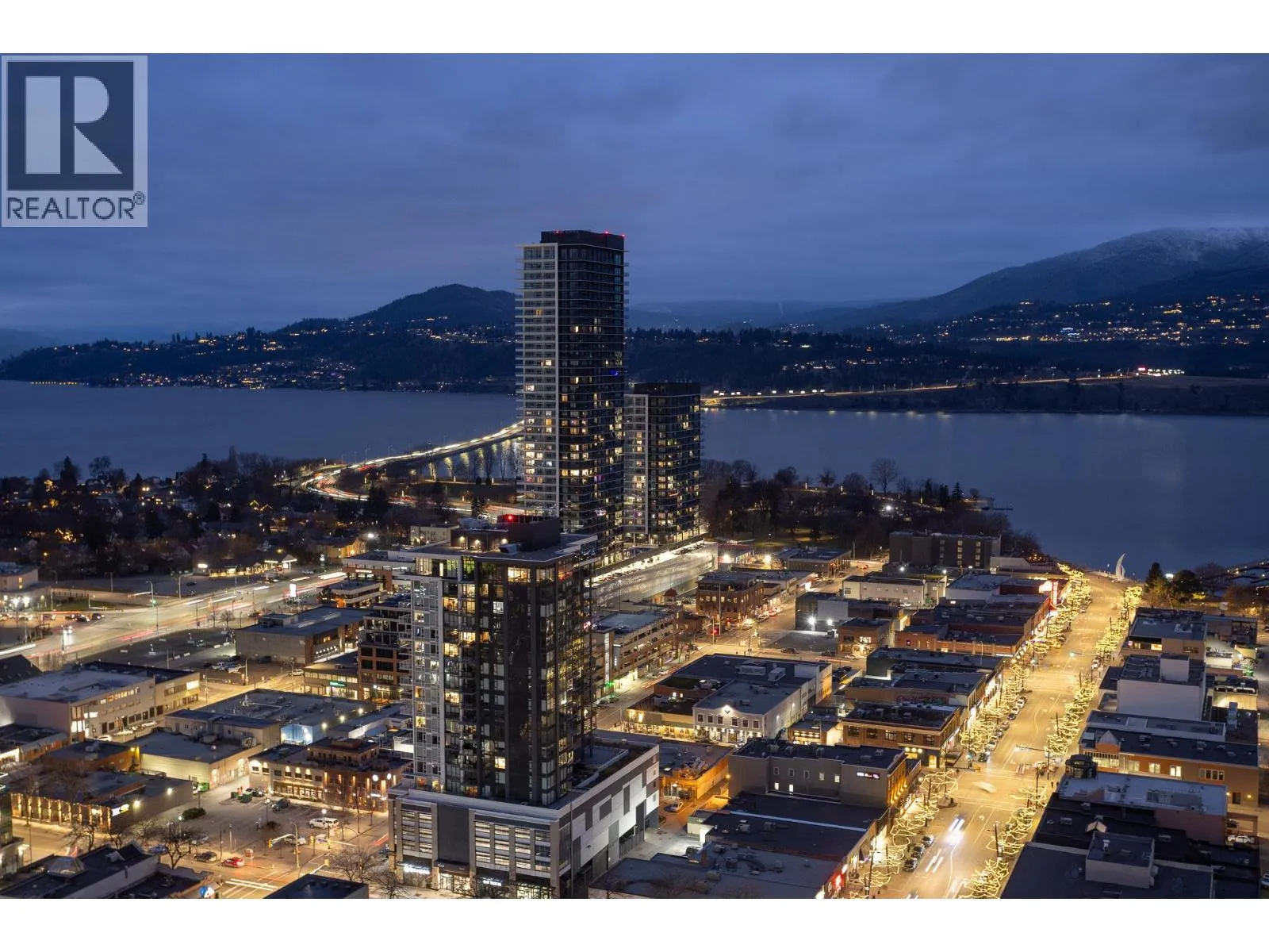 This 2 bedroom, 2 bath PENTHOUSE spans 998 sq. ft. and features a modern natural palette, luxury vinyl plank flooring, and high-end finishes throughout. The bright open-concept layout is framed by walls of windows showcasing sweeping lake, mountain, and city views. The chefâs kitchen boasts UPGRADED Bosch appliances including an induction cooktop, ultra quiet dishwasher, beautiful fridge/freezer and a beverage fridge. There is a large island with bar seating, built-in pantry, charging cubby/coffee station and generous storage, flowing seamlessly into the spacious living area. Step through dual sliding doors to the HUGE 330sqft partially covered deck - perfect for entertaining or unwinding, with a glass railing to take in all of the views. The primary suite includes a walk-in closet and sleek ensuite with walk-in shower, while the second bedroom is paired with a stylish 4-piece bath with tiled tub/shower combo. Enjoy in-suite laundry, pet-friendly living with no height restrictions, TWO PARKING stalls (one with EV charger) and storage. Residents have access to world-class amenities including a ROOFTOP POOL and HOT TUB (just a staircase away), outdoor BBQs, fire tables, lounge areas, fitness center, community garden, bocce court, and a dog run with wash station. Downtown living doesnât get better than this! Just a few blocks from the beach and steps from shops, restaurants, and urban living, Bertram at Bernard offers the ultimate downtown lifestyle. GST paid. (id:27476)