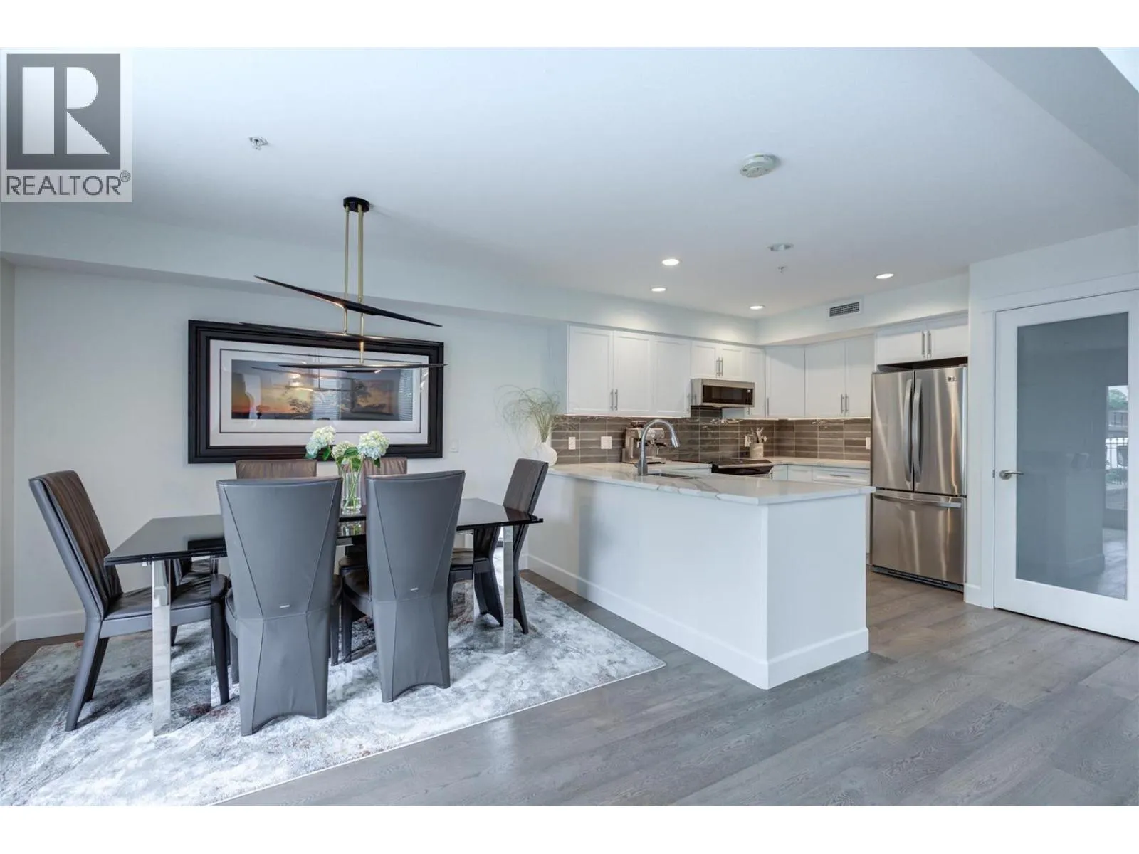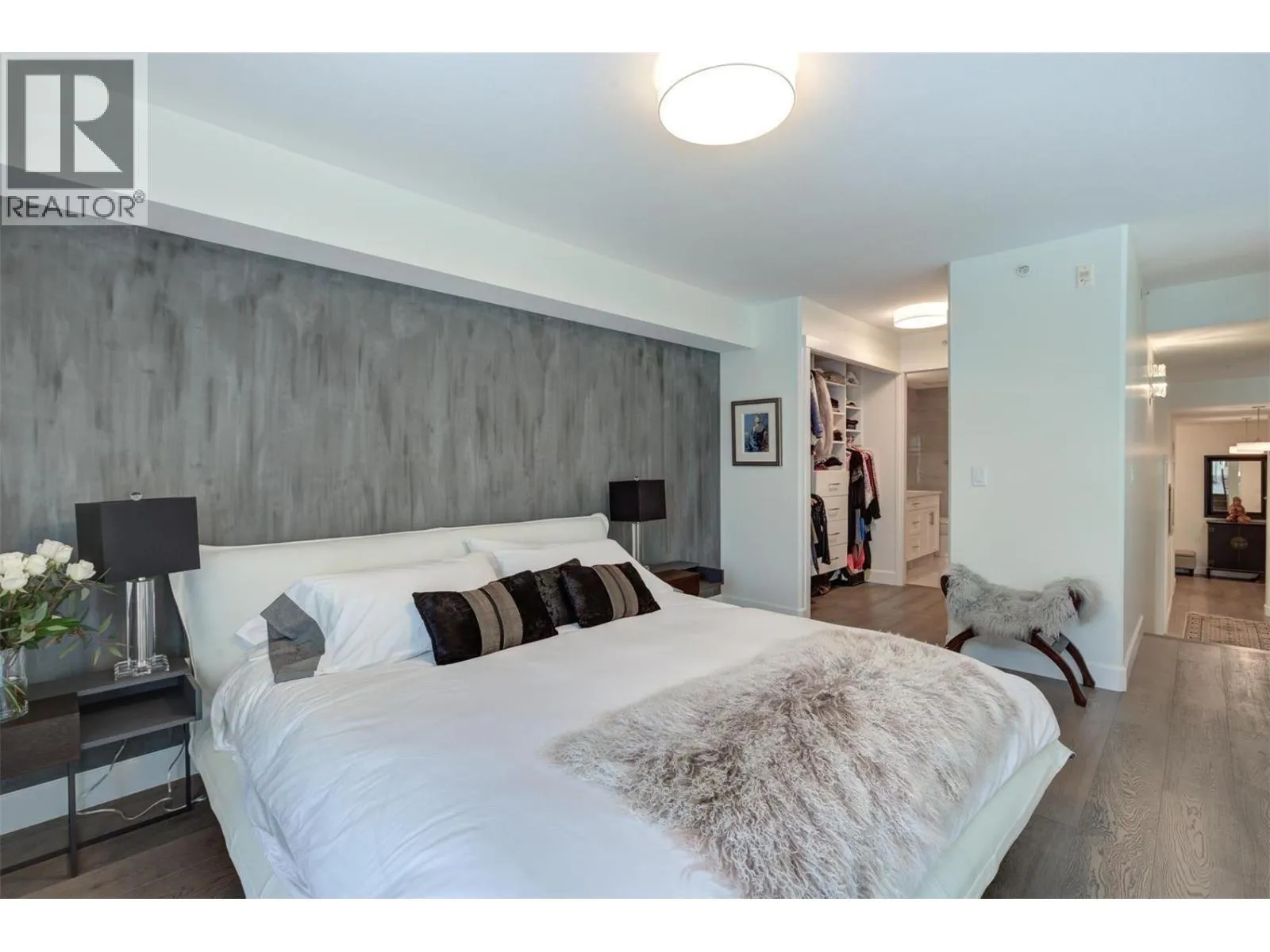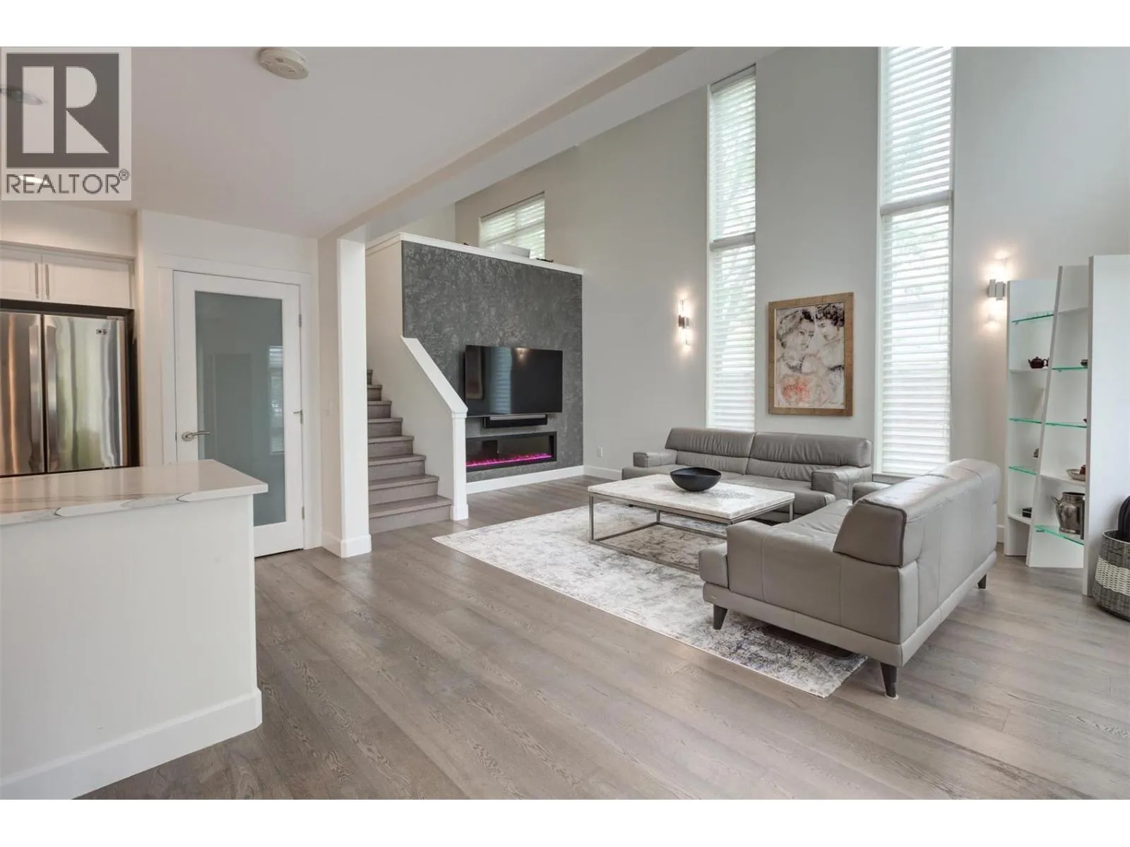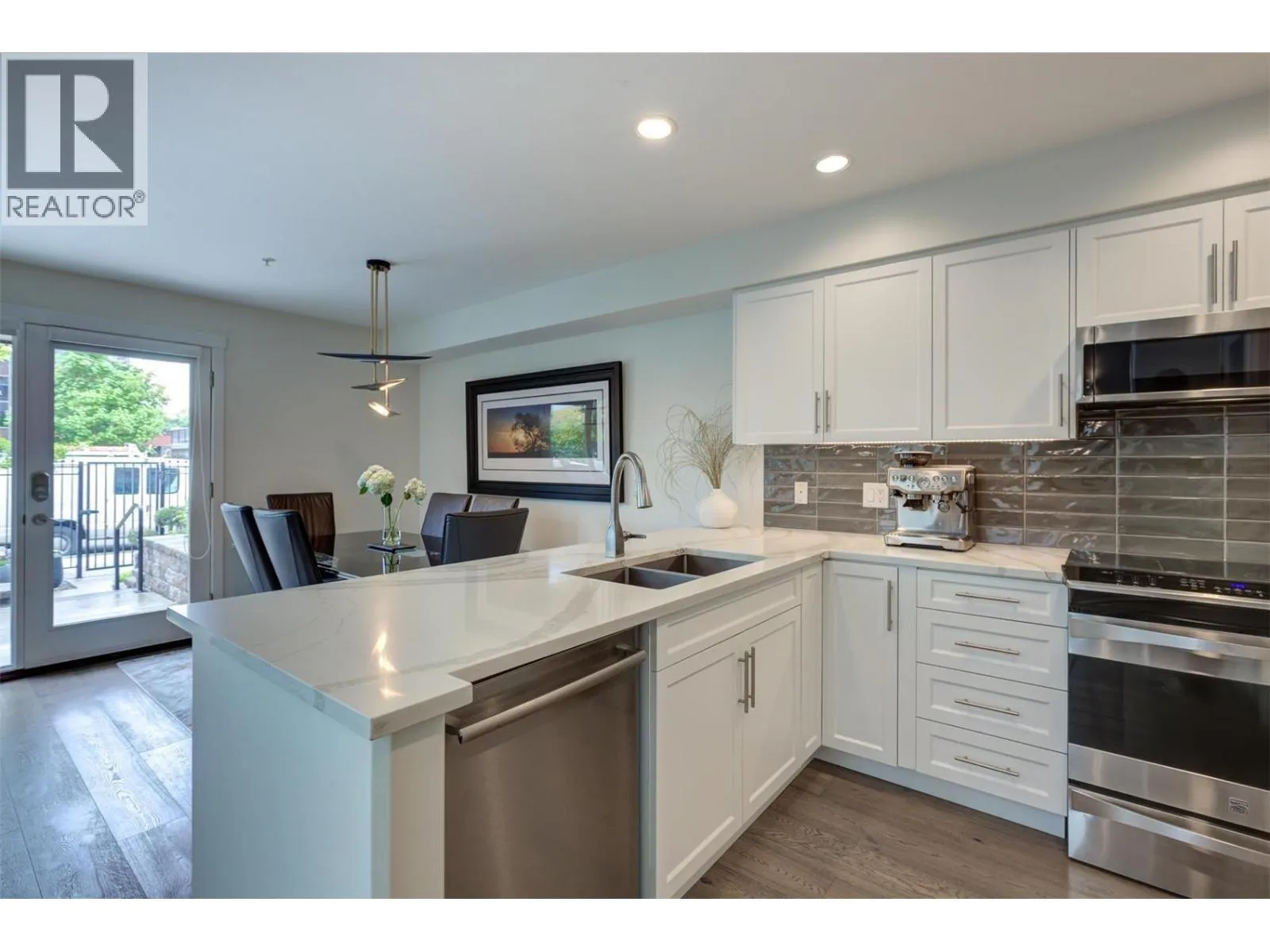 SOPHISTICATION AND LUXURY, 2 bedroom + den Brownstone style TRUE CORNER with PRIVATE ACCESS through YOUR OWN BEAUTIFUL FULLY FENCED PATIO AND COURTYARD. Located in the highly desirable, prestigious, popular and trendy Pandosy District known for its unique shopping, coffee houses, pubs, restaurants, groceries, + only a 1/2 block to Okanagan Lake, walking distance to Kelowna General Hospital and everything else. Gorgeous floor to ceiling windows, boasting natural light, 18-foot ceilings, engineered rich Oak hardwood floors as well as an open concept design. The main living area includes a natural mineral limestone feature wall including built-in electric fireplace + a newer kitchen complete with marbled quartz countertops and SS appliances. Open style spacious lofted primary bedroom, with natural mineral limestone painted feature wall, double sided closets + a modern renovated 5-piece bathroom with Bespoke Italian Marble. There is also a large second bedroom, den, full size laundry room, + 3-piece bath with Bespoke Italian tile on the second level. EV CHARGER ALREADY INSTALLED in the secured parking garage with a 2nd access to the unit from inside if so desired. Strata fees include private storage locker on the same floor, Geothermal heating/cooling, water, sewer, garbage collection & recycling, building insurance, management, snow removal, building repair & maintenance. A fabulous townhome that offers the turn-key lifestyle you desire in a neighborhood that is continually increasing in value. Pets and rentals welcome! Pride of ownership is evident, and this home must be seen to be appreciated. PET FRIENDLY! (id:27476)