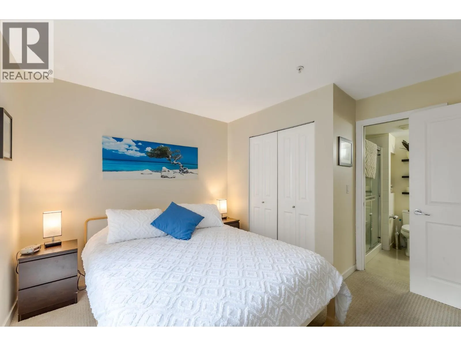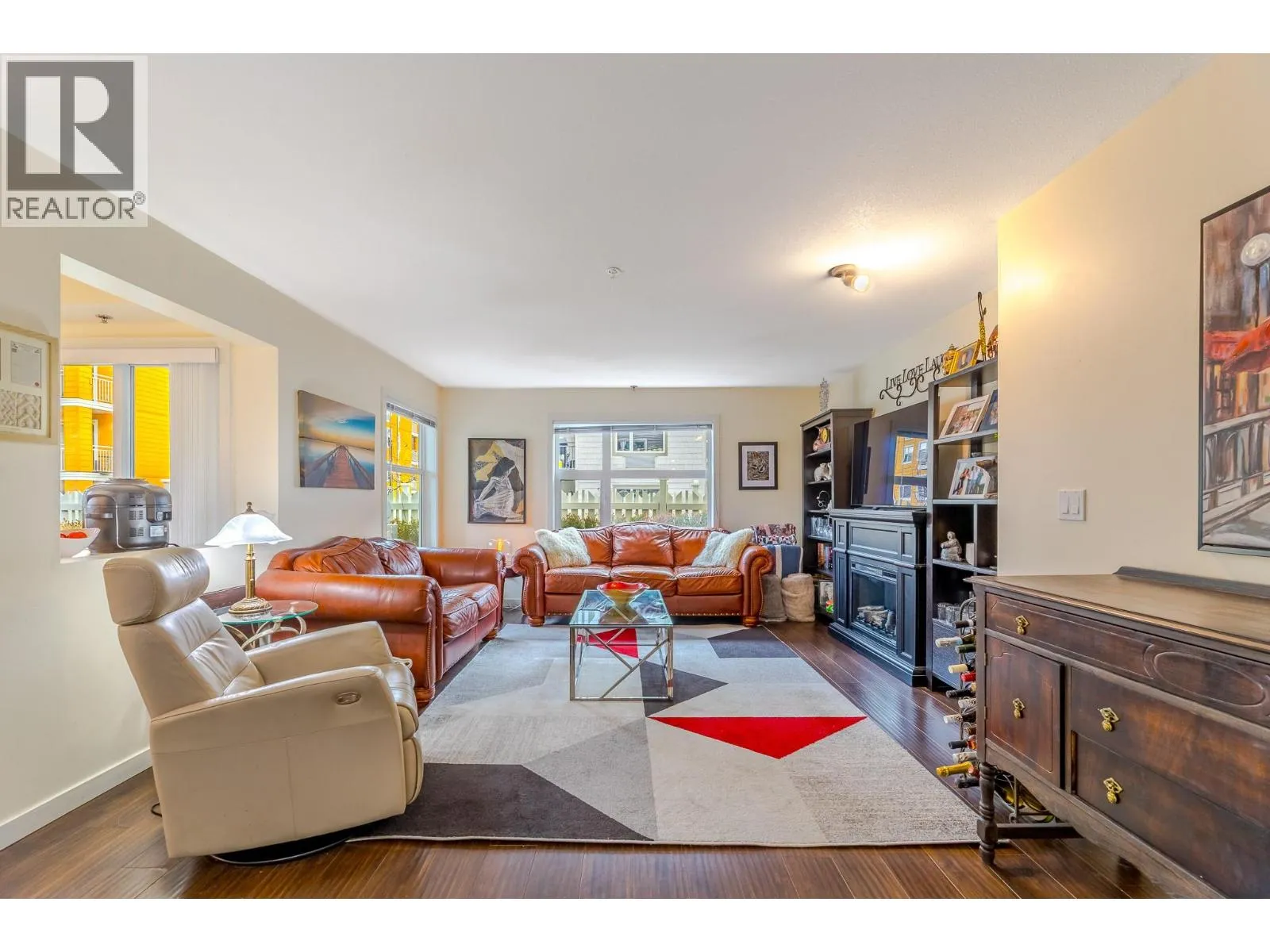 This level entry, first floor, two bedroom, two bath corner unit feels like a townhouse with its two outdoor patios and its spacious fenced yard. Featuring over 1140 sq. ft. of living space, 9 ft ceilings, light filled windows, an efficient kitchen with access to the entertainment patio/yard and a large great room. On either side of the main living space the bedrooms find their own tranquility & privacy - the primary suite offers dual walk-in closets and an ensuite with soaker tub; while the second bedroom boasts a large closet, access to a private outdoor patio and delights in a 3 piece ensuite which doubles as the main bathroom. Situated in a fantastic complex with an interior courtyard complete with pool, beach volleyball and bbq area, and located in a central location close to transit, schools & shops. Comes with storage locker and secured parking in the garage! (id:27476)