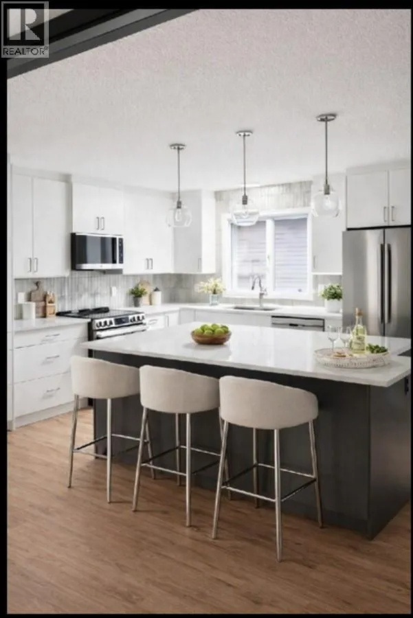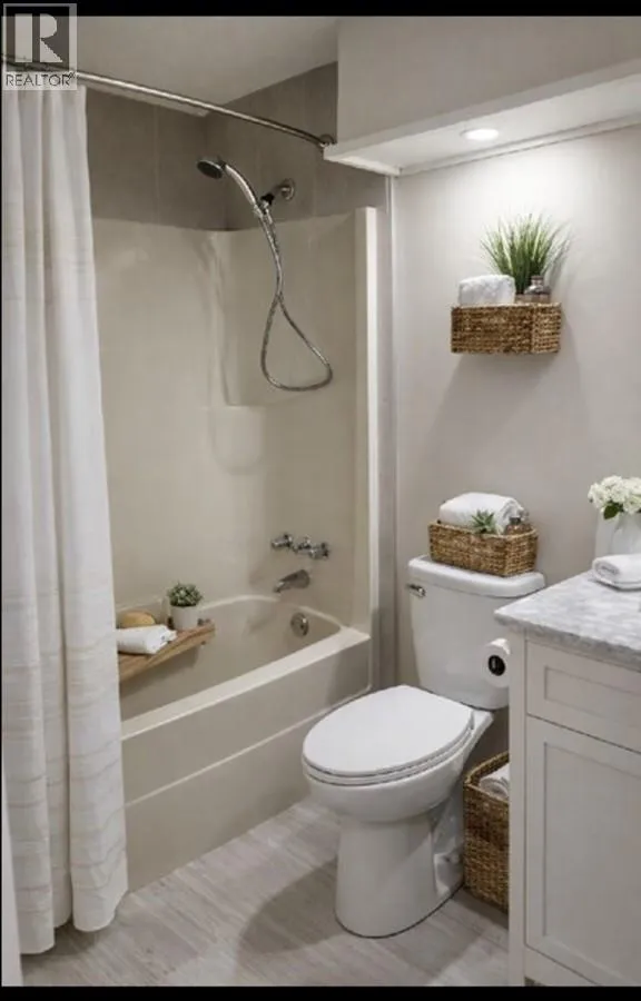 Welcome to Sunrise Village - A sought after community in Kelowna, 45+ Enjoy resort-style living with access to a pool, hot tub, and fully equipped recreation centre and pets welcome with approval. This completely and professionally renovated 1,600 sq. ft. three-bedroom, two-bathroom home is move-in ready and available for immediate occupancy. Thoughtfully redesigned, with an open concept, the home features a stunning gourmet kitchen with all-new LG appliances, quartz countertops, and a massive island with seating for fourâperfect for entertaining or casual dining. The bright, single-level layout offers a cozy gas fireplace with custom mantel, durable laminate flooring throughout the main living areas, and plush new carpet in all three bedrooms. The spacious primary suite includes a luxurious ensuite with a custom tile walk-in shower, new vinyl tile flooring, while the main bathroom features all new fixtures and large tub with modern new finishes. Additional highlights include a huge laundry room with built-in cabinetry and desk space for hobbies or home office use, complete with a new LG washer and dryer. This home comes with a newer furnace, 4 year old hot water tank, and air conditioner all in good working condition. Double attached garage with convenient interior access to the home, completes the package, offering secure parking and extra storage. Pad fee is $600/month with a 10 year lease in place until May 2036. Do not miss out on this beauty! (id:27476)