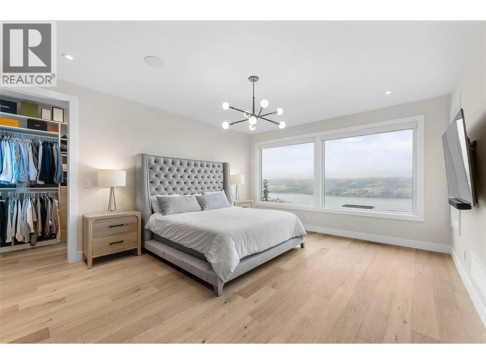 Perched on the edge of nature, just 10 minutes from downtown Kelowna, this beautiful North Clifton Estates home offers stunning Okanagan Lake views at every turn. The open-concept main level features wide plank white oak hardwood, a floor-to-ceiling tiled gas fireplace, and a gourmet kitchen with Fisher & Paykel appliances, quartz countertops, and a butler's pantry with custom cabinetry. One bedroom with ensuite and a private office complete this level, along with a covered deck perfect for taking in the views. The spacious upper level centers around a huge primary suite with five-piece ensuite with a freestanding tub, steam shower, and heated tile floors. Two additional bedrooms share a bath, and a lakeview office opens to a private patio with hot tub. The lower level is built for how you want to live. A dedicated home gym, recreation room with wet bar and custom wine room, bonus room, and two additional bedrooms provide space for every need. Walk out to the patio where a saltwater pool and synthetic lawn create your own private resort, framed by glass railings and views that never get old. Upgraded with Control 4 smart home system, custom lighting by Robinson Lighting, Hunter Douglas blinds, and premium sound systems. Additional features include water softener, reverse osmosis, Navien on-demand hot water, oversized air conditioning, and heated two-car garage with epoxy floors. Close to Wilden trail network with private trail access to the beach. (id:27476)
