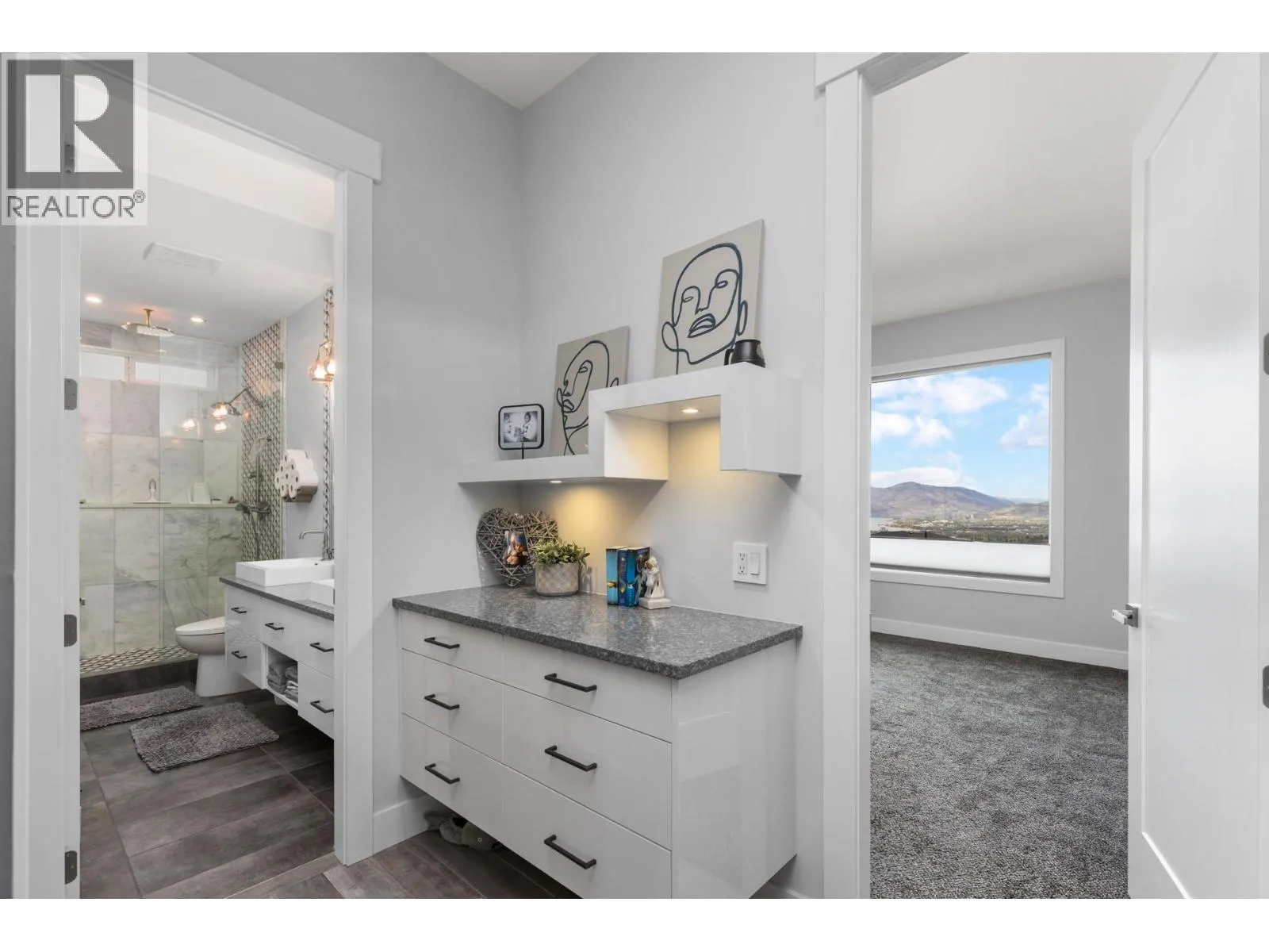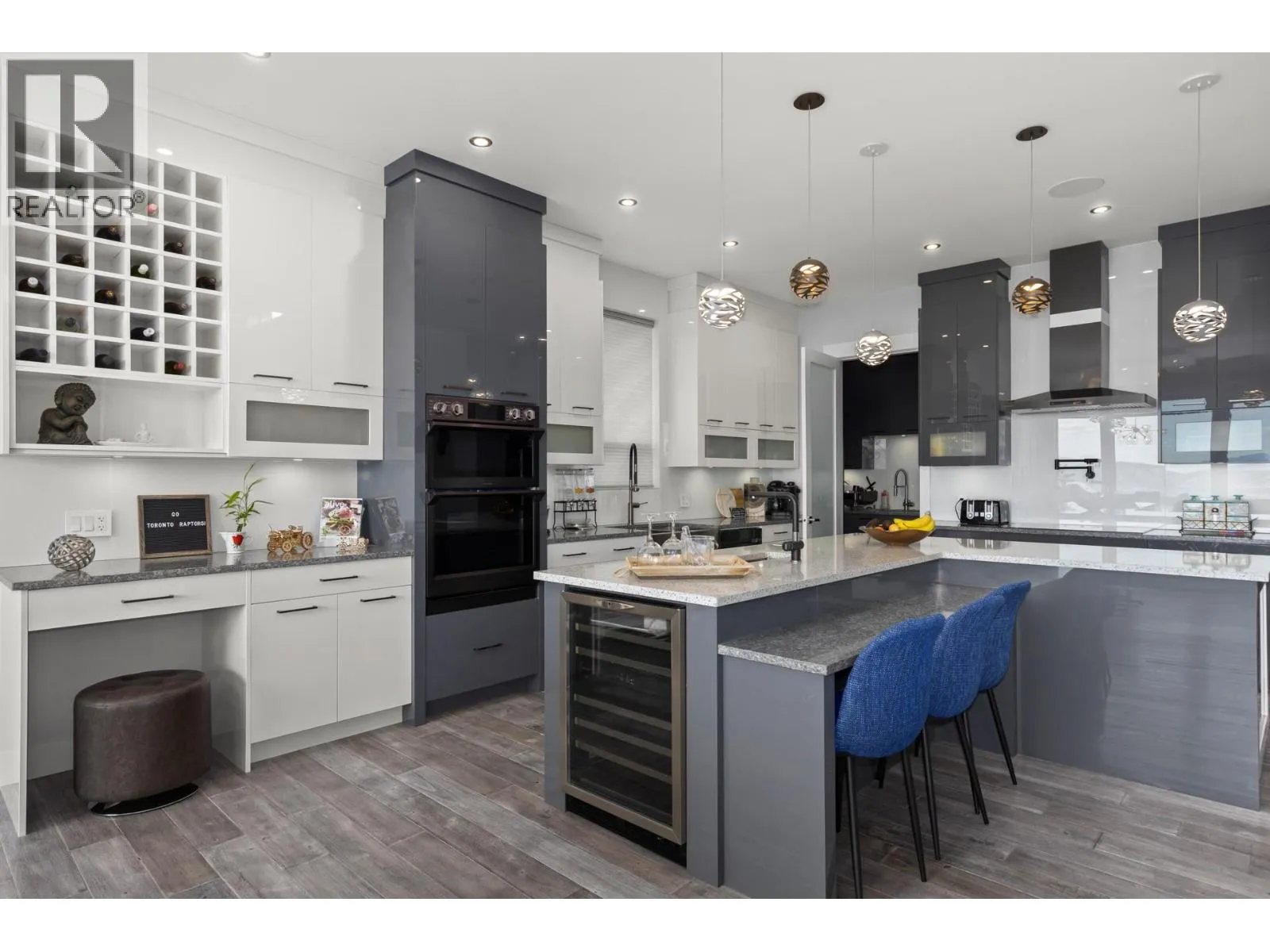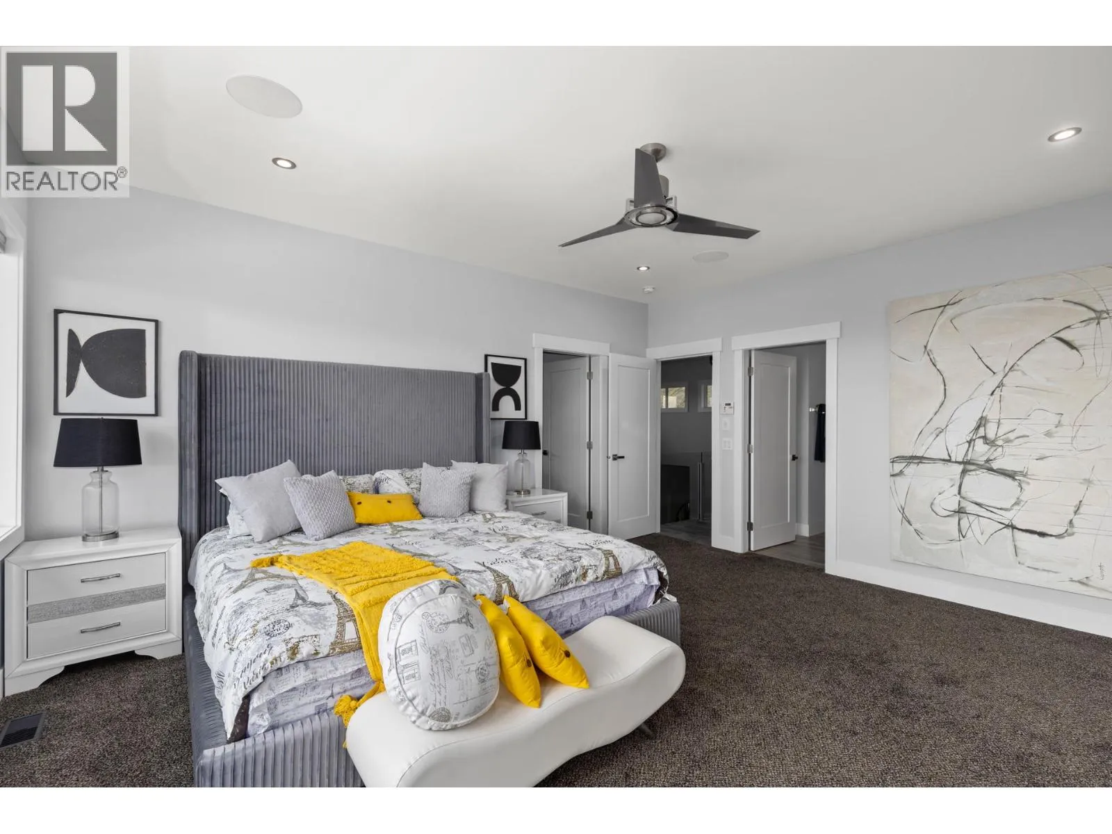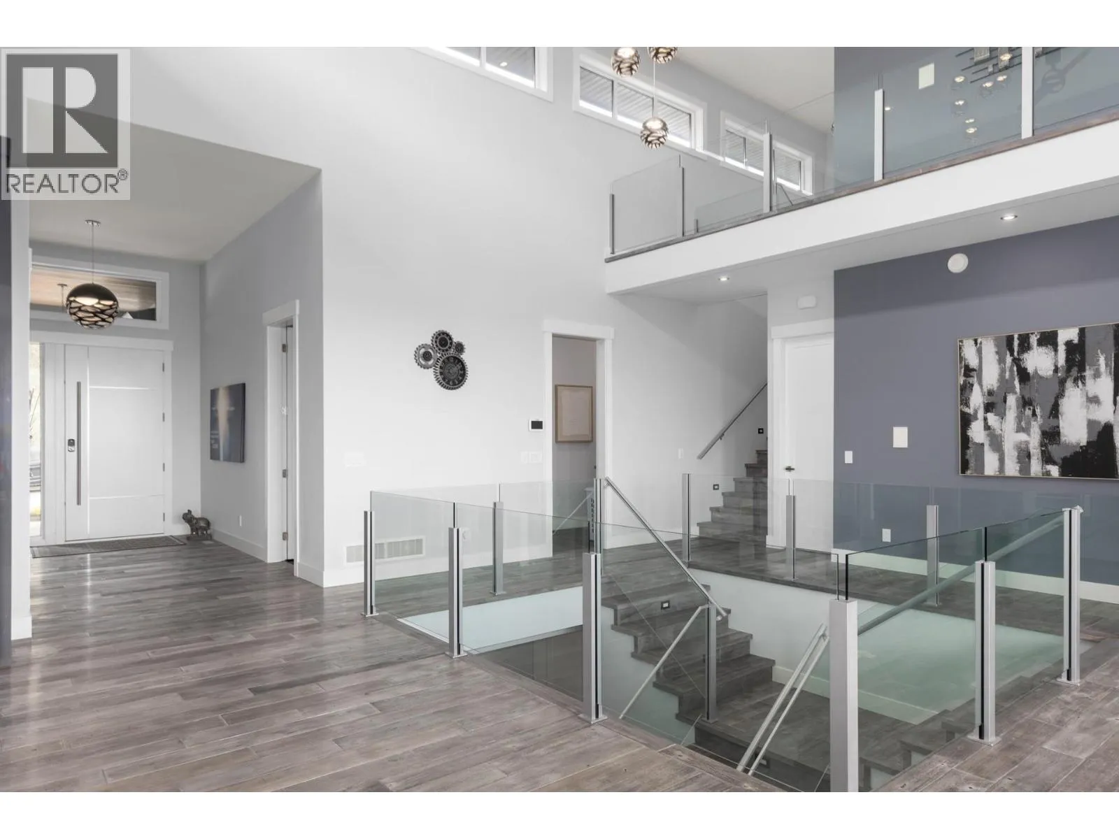 Exceptional lake-view custom home in the highly sought-after Ponds community of Upper Mission. Offering over 6,000 sq. ft. of refined living space, this architecturally designed residence captures stunning views while delivering luxury, flexibility, & income potential. The home features 6 bedrooms plus a large office & 6 bathrooms, including a legal 2-bedroom walkout suite with separate entry, laundry, 1.5 baths; ideal for multi-generational living or rental income. Grand ceilings, imperial staircases & contemporary design elements highlight the quality craftsmanship throughout. The open-concept main living area showcases a fireplace with real wood detailing & seamless access to a covered patio. The chef-inspired kitchen offers premium smart appliances, custom cabinetry, an oversized island & a fully equipped spice kitchen with dedicated ventilation, second fridge, stove, oven, sink & ample storage. The upper level is devoted to the primary retreat with lake-view balcony, massive 20"" × 10"" walk-in closet roughed in for laundry & spa-like 5-piece ensuite. Heated bathroom floors, hardwood flooring & high-end finishes throughout. The lower level includes family room with wet bar, theatre room, bedroom, storage & full bathroom with steam shower. Additional features include hide-a-hose central vacuum, pre-plumbed for POOL, low-maintenance Xeriscape garden & oversized Triple Garage. Walking distance to Canyon Falls Middle School, new Mission Village at The Ponds! (id:27476)