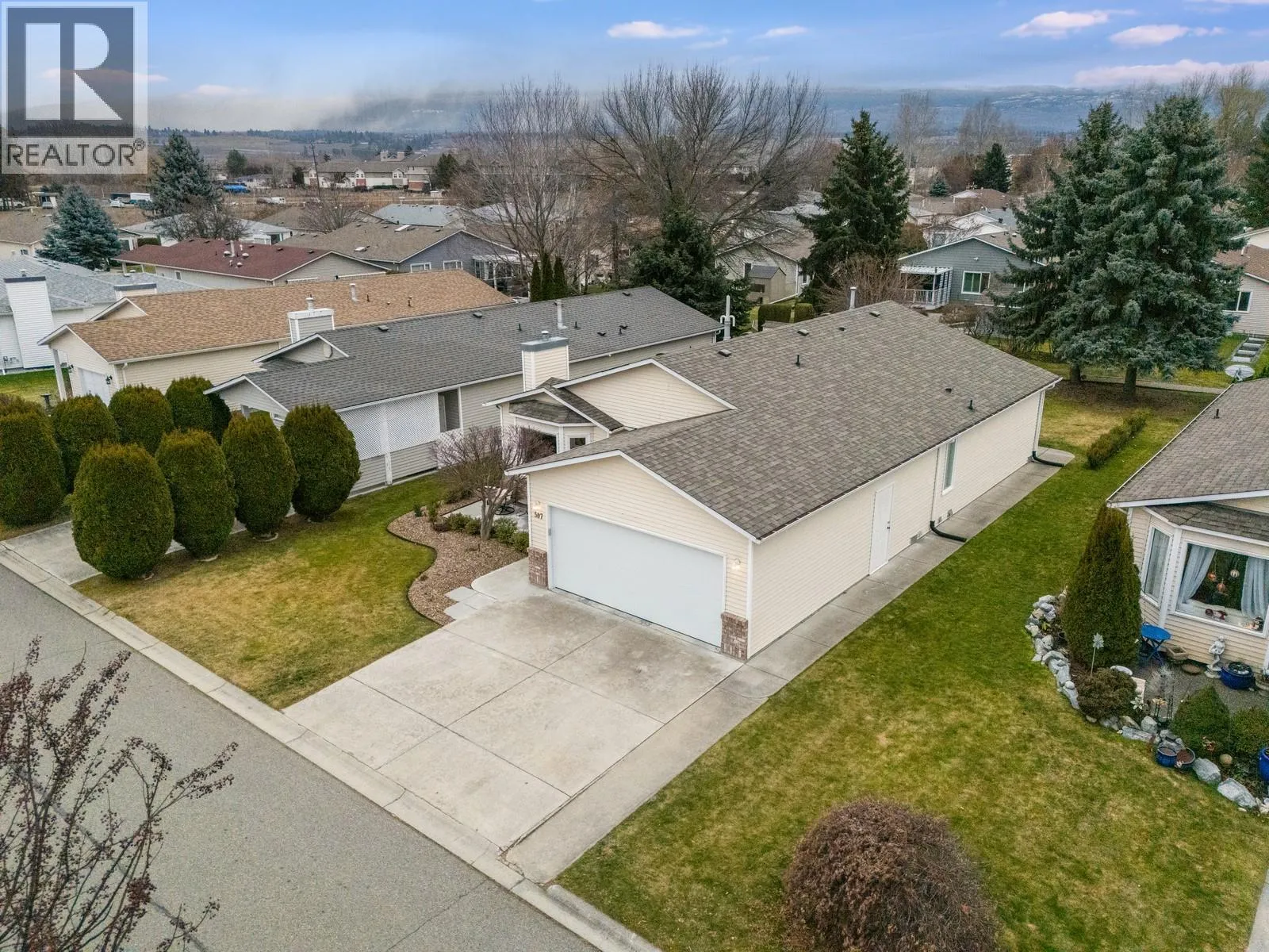 Welcome to 507â1255 Raymer Avenue, located in the desirable Sunrise Village community. This thoughtfully updated 2 bedroom, 2 bathroom home offers 1,402 sq.ft. of comfortable, functional living in one of Kelownaâs most sought-after 45+ communities. The home shows exceptionally well and includes a bright sunroom, adding valuable year-round living space, along with a screened-in patio featuring metal security shutters for added comfort and peace of mind. Inside, youâll find updates throughout including flooring, kitchen cabinetry and counters, plumbing, electrical, appliances, garage door and opener, and interior finishes, creating a truly move-in-ready feel. The primary bedroom features a walk-in closet, and major mechanical upgrades include on-demand hot water and a new furnace (2020), providing long-term reliability. The south-facing orientation brings in excellent natural light, while the oversized garage comfortably fits a full-size truck, a rare offering within Sunrise Village. A gas line for a barbecue adds convenience for outdoor entertaining. Residents enjoy access to a well-appointed clubhouse with pool, year-round hot tub, fitness room, library, billiards, and common kitchen. Please note: This home is situated on private leased land; the purchase price does not include the land. Pad rent is $600 per month. Centrally located close to shopping, transit, medical offices, KGH, Pandosy Centre, and Guisachan Village. Schedule your showing today! (id:27476)