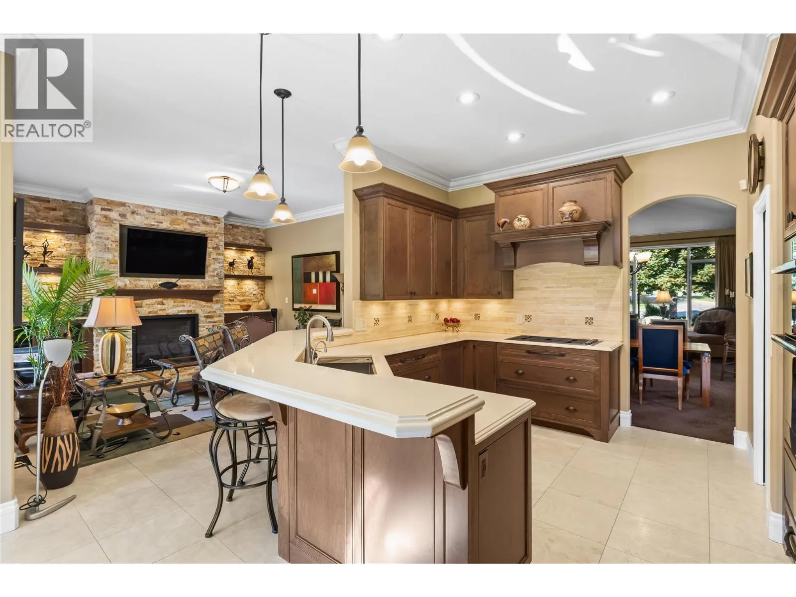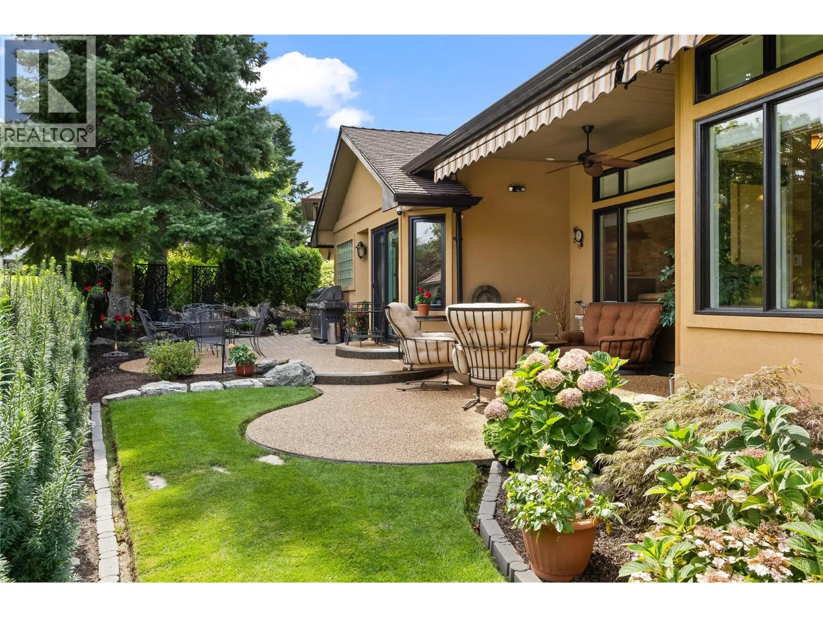 Welcome to 3992 Gallaghers Parkway in the prestigious Gallaghers Canyon Golf Resort. This classic Torrey Pines floor plan in the premier ""Canyon Community"" is true functional living. With soaring ceilings, expansive windows, and ultimate privacy, the home seamlessly blends indoor elegance with outdoor living. The sunny patio with motorized awnings and upgraded landscaping provides a serene retreat on a green belt and is a short walk to the Scenic Canyon Regional Park trails. Inside, the recent renovation has had no detail overlookedâcustom maple cabinetry, Cambria quartz countertops, NZ wool carpet and imported travertine tile flow throughout. The gourmet kitchen features premium appliances, wine fridge, and a walk in pantry, while the family room & great room each boast stone fireplaces and designer lighting. The luxurious primary suite offers a spa-inspired ensuite with heated floors, freestanding tub, dual vanities, and frameless glass, rain shower. Additional highlights include a unique, dedicated media room (or 3rd bed) with 92â screen and surround sound speakers that will take movie night to the next level! Some mechanical updates include a new furnace/AC, hot water tank and roof in 2018 and the home offers an oversized garage plus a crawl space for ample storage. Gallaghersâ amenities include an indoor pool, fitness centre, tennis, and vibrant social sceneâthis residence offers the best of resort-style living in one of Kelownaâs most desirable communities. (id:27476)