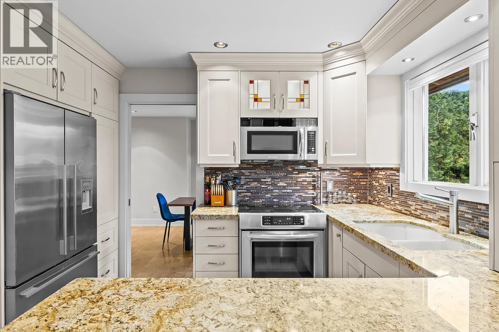 Beautifully updated family home in the heart of Kelownaâs sought-after Lower Mission. This 2,520 sq ft split-level residence offers a functional layout with multiple living areas and a private, fully fenced backyard built for entertaining. The kitchen features shaker cabinetry, granite countertops, stainless steel appliances, and a peninsula island with seating that flows into the breakfast nook and out to the pool and hot tub area. A formal dining room and living area with a gas fireplace and bay window provide bright, welcoming spaces, while a sunken family room off the kitchen offers direct access to the backyard. Upstairs are three spacious bedrooms, including a large primary with a 3-piece ensuite and walk-in shower. The lower level adds flexibility with space for a home theatre, office, or gym. The outdoor area is a standout â complete with a separately fenced inground pool, hot tub, pool house, covered patio, kidsâ play area, and RV parking. A double garage with epoxy floors and overhead storage adds functionality. Set on a quiet .234-acre lot near Mission Ridge Park and Bellevue Creek Elementary, this home combines practical family living with one of the best locations in the city. (id:27476)