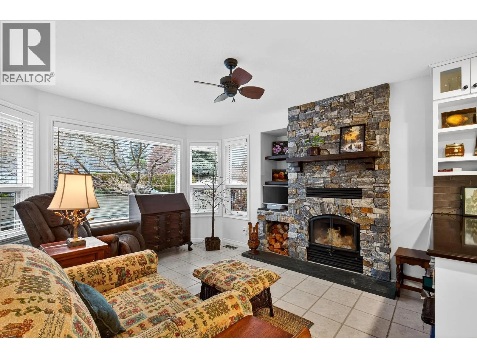 Overlooking the lush 2nd fairway, this impeccably cared-for rancher offers an elevated lifestyle in the heart of Gallagherâs Canyon. Designed for both elegance and ease, the two-bedroom home showcases soaring ceilings, dual sided gas fireplace, and a bright, flowing floor plan that seamlessly connects indoor and outdoor living. Step outside to a private patio with serene golf course vistasâperfect for hosting friends or enjoying quiet moments surrounded by nature. The spacious kitchen features stone countertops, custom cabinetry, and an open connection to the dining and living areas. The spacious primary suite is a true sanctuary, highlighted by expansive windows, direct access to the patio, a walk-in closet, and a luxurious ensuite complete with a deep soaker tub, walk-in shower, and dual sinks. Additional highlights include a separate family room, full guest bathroom, laundry room, and a double garage. Living in Gallagherâs Canyon means embracing an unparalleled resort-style lifestyle with access to two championship golf courses, tennis courts, indoor pool, fitness centre, hot tub, games room, art studios, and miles of scenic walking trails. All of this, set within a welcoming community and just 15 minutes from downtown Kelowna. (id:27476)