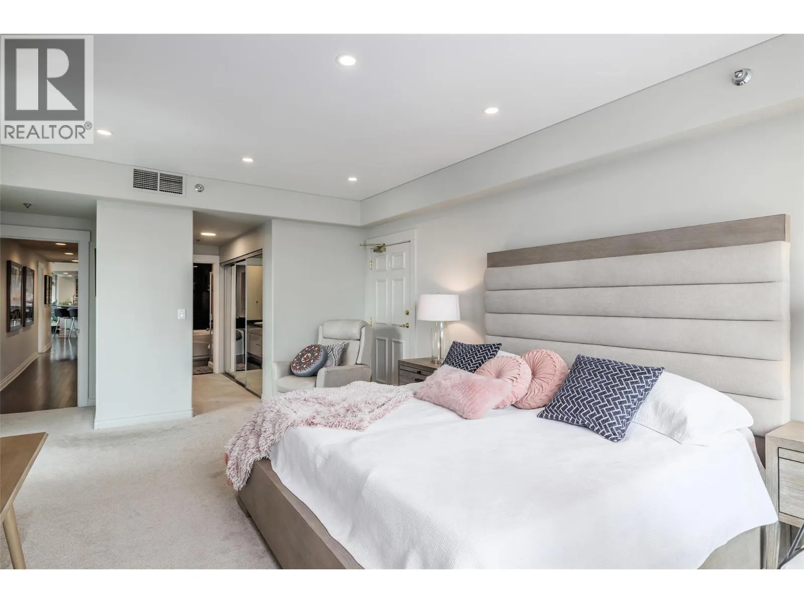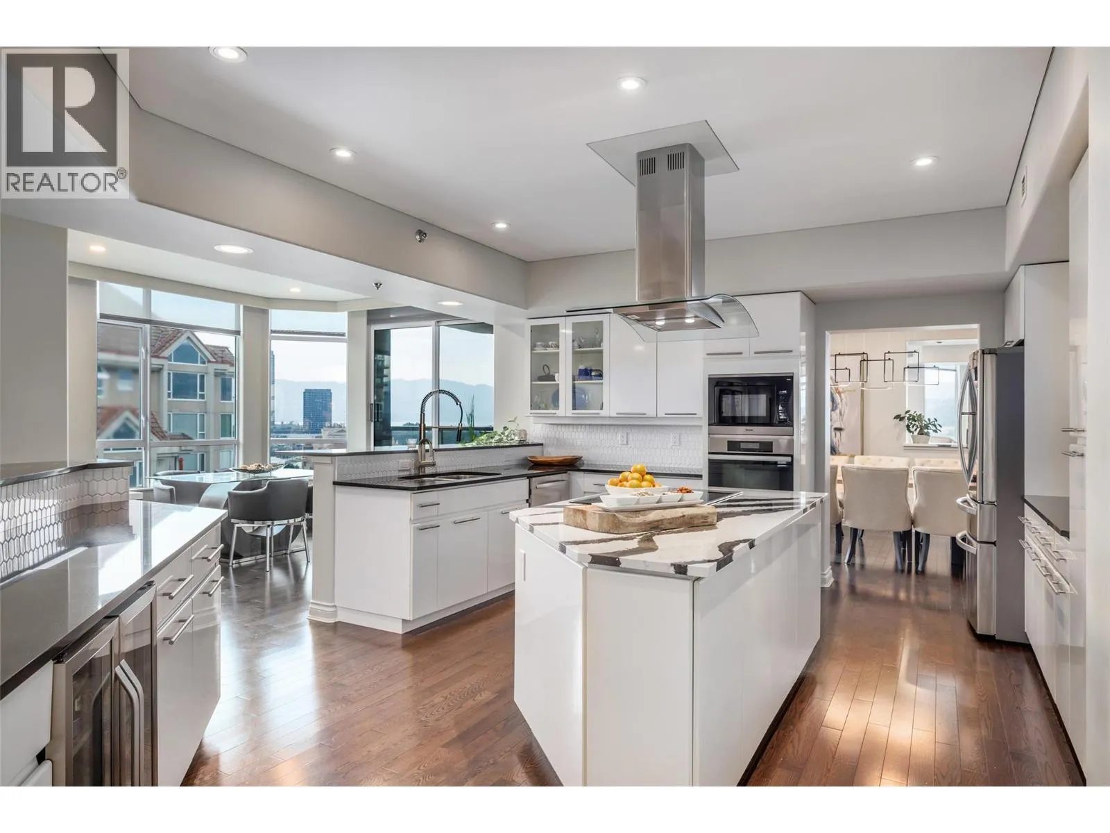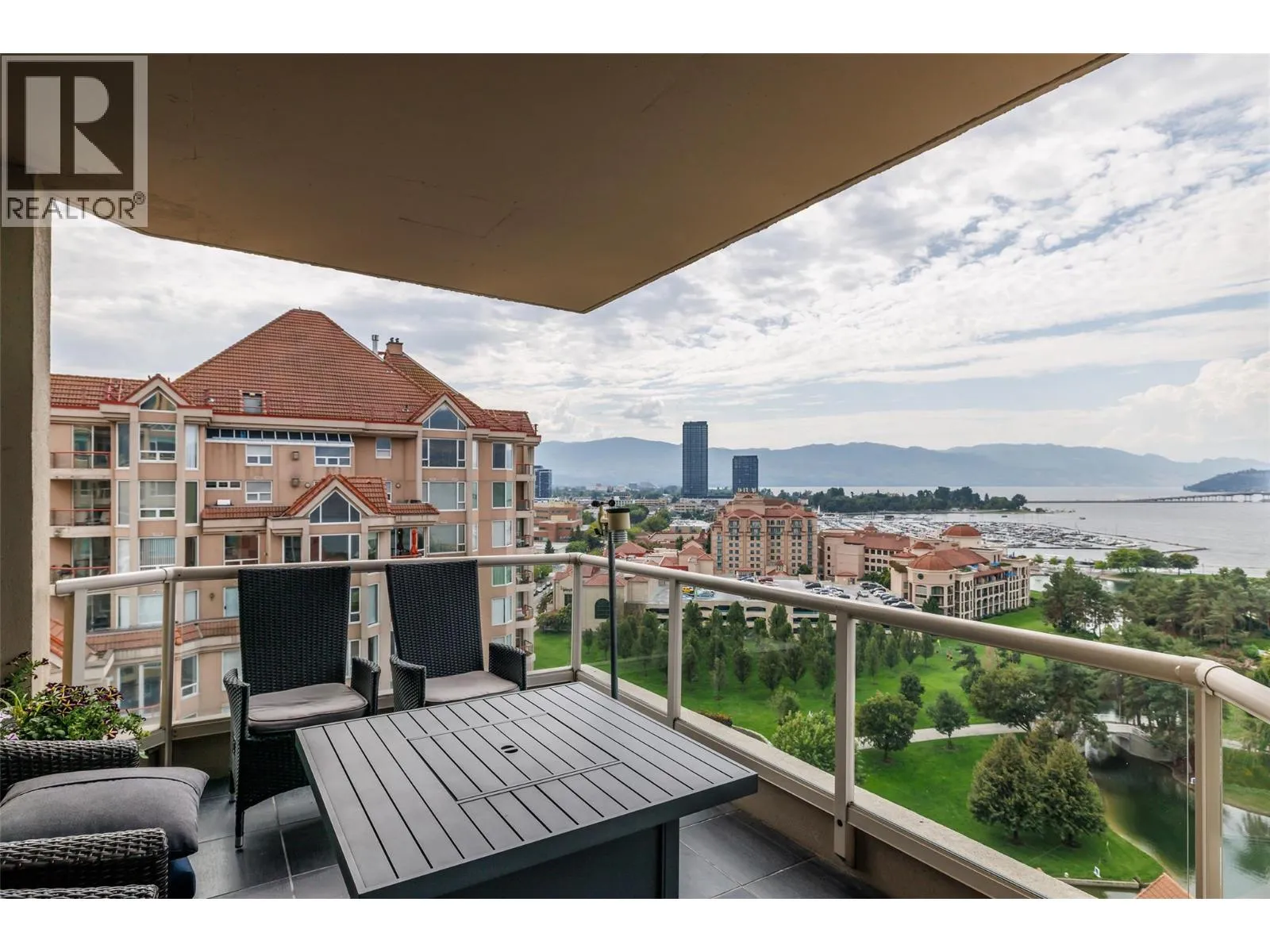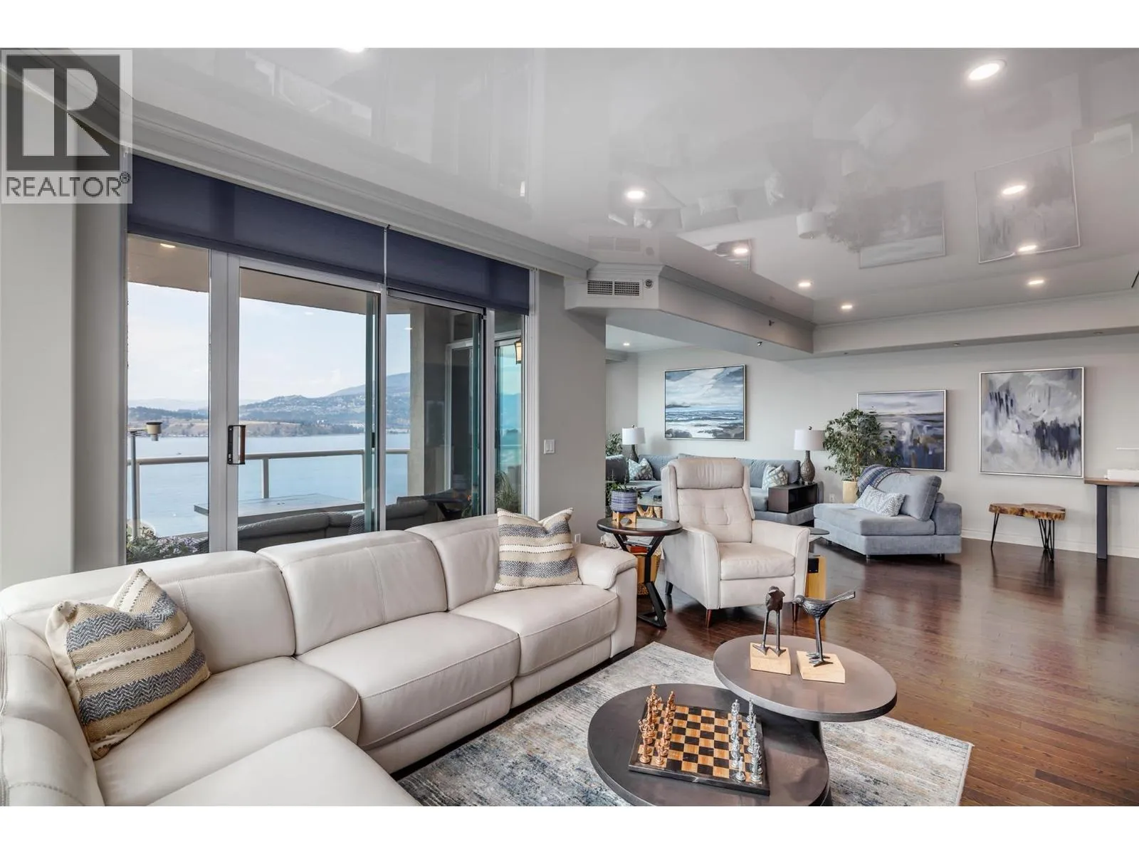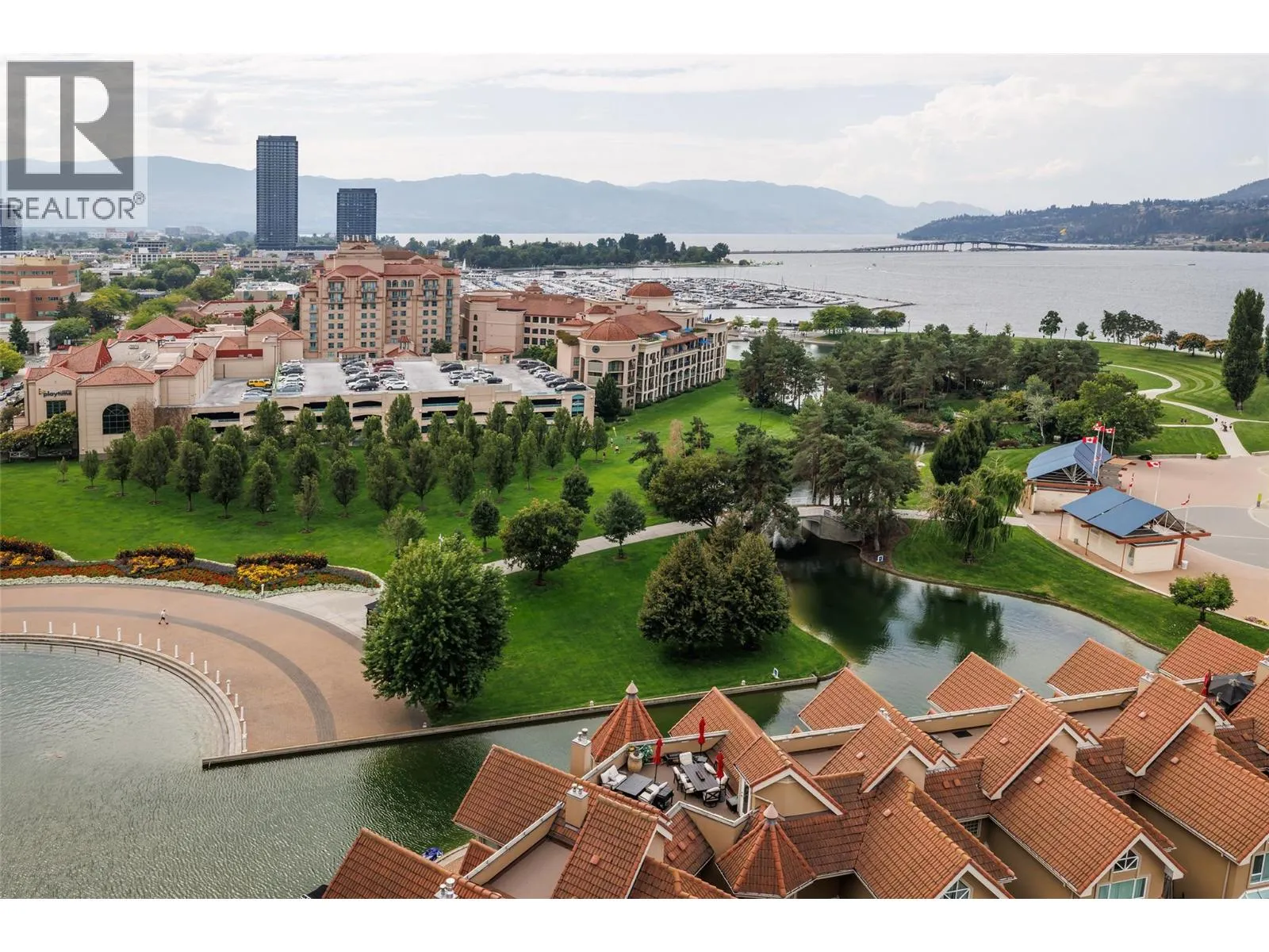 RARELY AVAILABLE - Waterfront Sub-Penthouse at the center of Kelownaâs downtown core! Set directly on the lake with access to private moorage. The Penthouse comes with 2962 square feet all on one floor at âThe Lagoonsâ. Enjoy sweeping views of The Lake, City, and Mountains from your 4 private decks with Italian non-slip tiling. The layout features 3 bedrooms each with their own ensuite, plus a guest bath and den. The kitchen is equipped with two islands, granite and quartz countertops, custom cabinetry and premium appliances by Miele, KitchenAid, and LG. The formal dining area with wet bar flows into the grand living room that is framed by floor-to-ceiling windows and hosts the gas fireplace. The Master Bedroom has large bay windows, deck access, a generous walk-in closet, and a 5-piece spa-inspired ensuite with soaker tub and tiled shower. Additional highlights include hardwood flooring, extensive built-ins, integrated media wiring by Beyond Audio and meticulous finishings throughout. Residents of The Lagoons enjoy resort-style amenities: indoor and outdoor pools, hot tub, sauna, gym, clubhouse, bike storage, and secure parking. This is the pinnacle of waterfront city livingâluxury, convenience and breathtaking views in one. (id:27476)