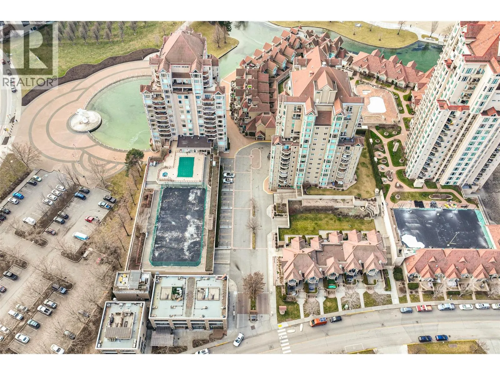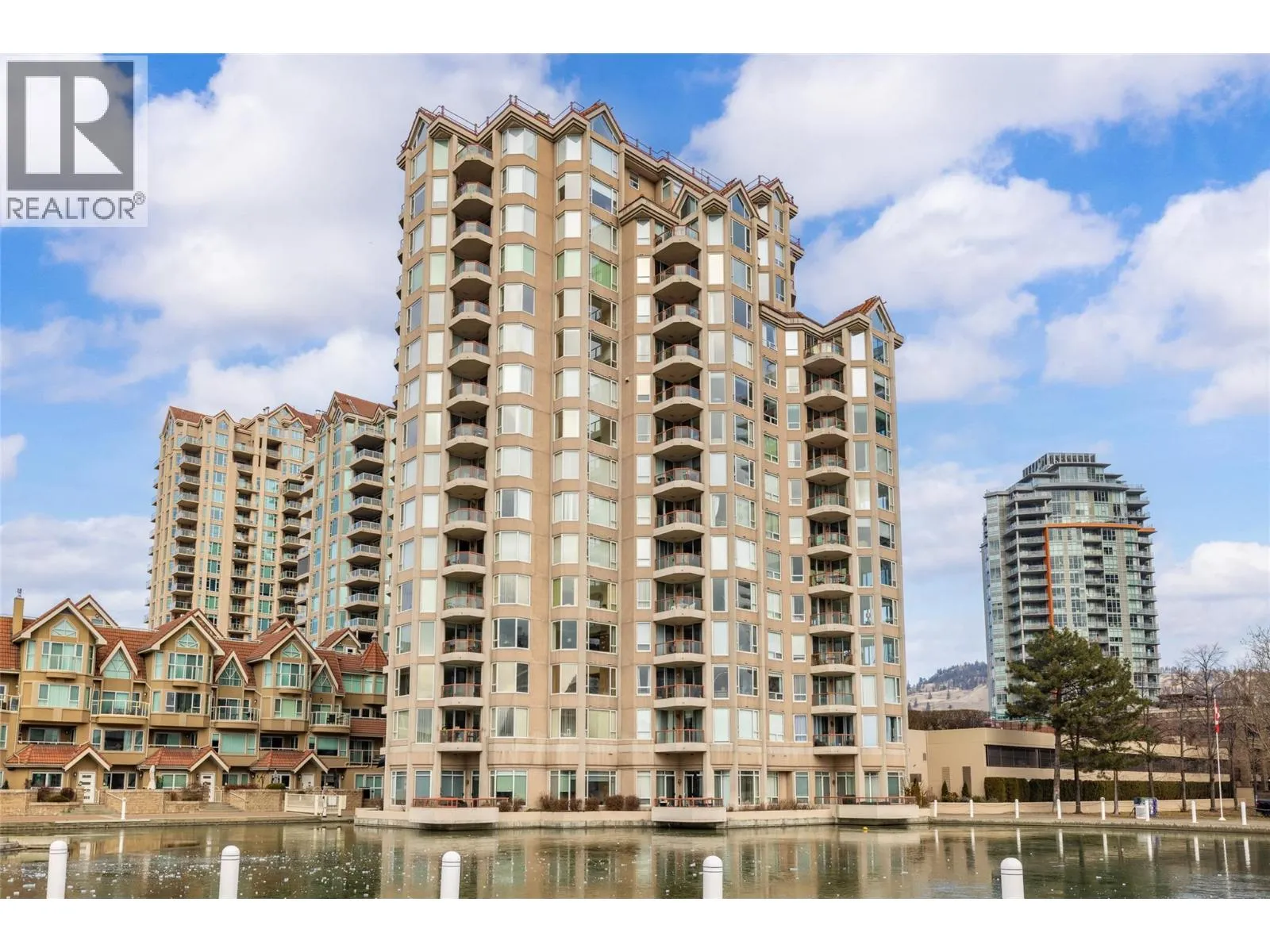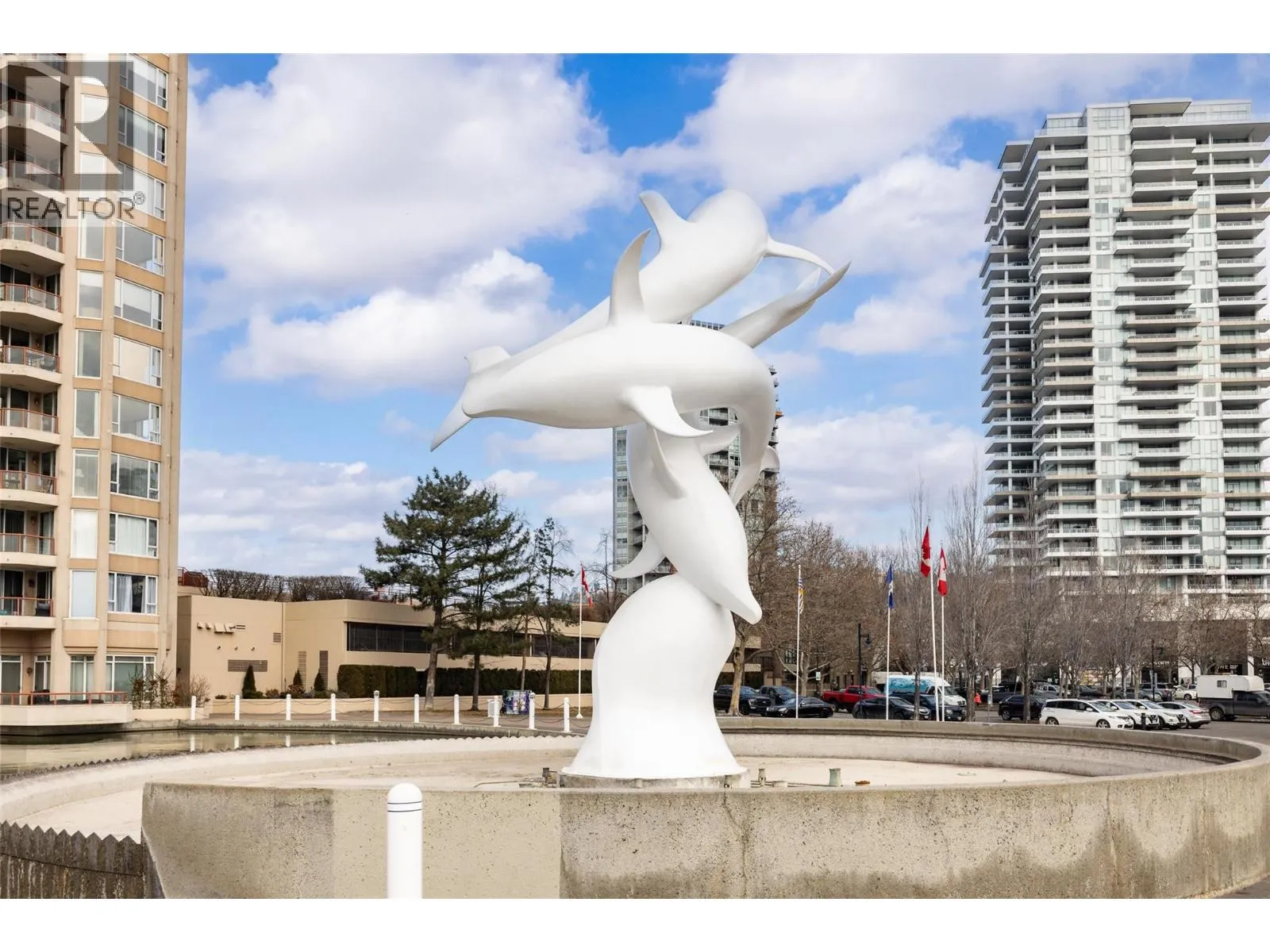 Iconic waterfront living in the heart of Kelownaâs Cultural District! Perfectly positioned on the waterfront, this beautiful two bedroom two bathroom lakeview condo offers a front-row seat to the very best of downtown Kelowna living. Inside, expansive walls of windows flood the home with natural light and frame views of Okanagan Lake, the bridge, the boardwalk, and the iconic Dolphins fountain below. The thoughtfully designed floor plan blends comfort and function, with a generous living area, ideal for both everyday living and entertaining. The kitchen features bar-style seating, under-cabinet lighting, ample cabinetry, and abundant counter space, seamlessly opening to the dining area where lake and city views elevate every meal. Step outside to not one, but two private patios, perfect for morning coffee, sunset dinners, or a glass of Okanagan wine as the city lights come alive. The primary bedroom is a true retreat, complete with a walk-in closet and a private ensuite, while the second bedroom and full bathroom provide flexibility for guests, a home office, or family. The Dolphins offers resort-style amenities including an outdoor pool, hot tub, tennis court, fitness centre, and immaculately maintained grounds. Right outside your doorstep youâll find Kelownaâs Cultural District, with world-class dining, galleries, theatres, boutique shopping, and microbreweries just steps away. Walk to the beach, marina, yacht club, boardwalk, festivals, and waterfront parks, or simply enjoy the energy of downtown from your own balcony. Whether youâre seeking a full-time residence, a high-end urban retreat, or a premier waterfront investment, this is lakefront living at its most iconic, where culture, convenience, and the Okanagan lifestyle meet. (id:27476)