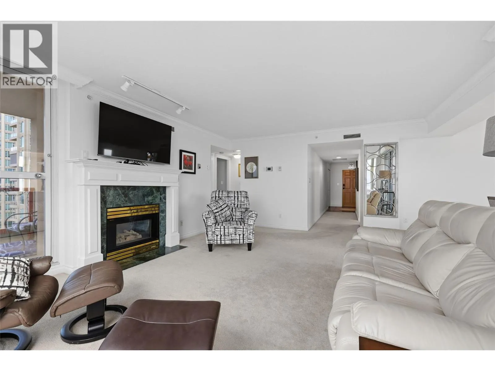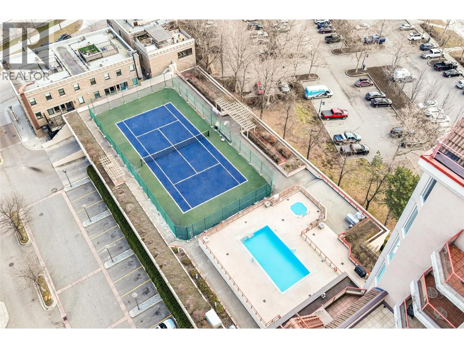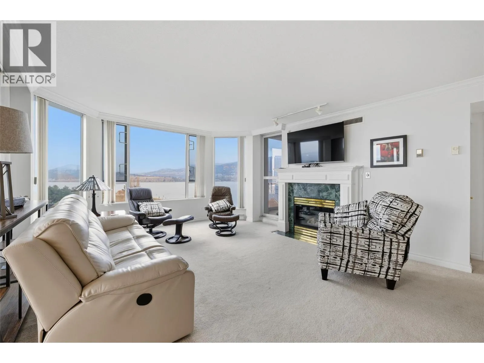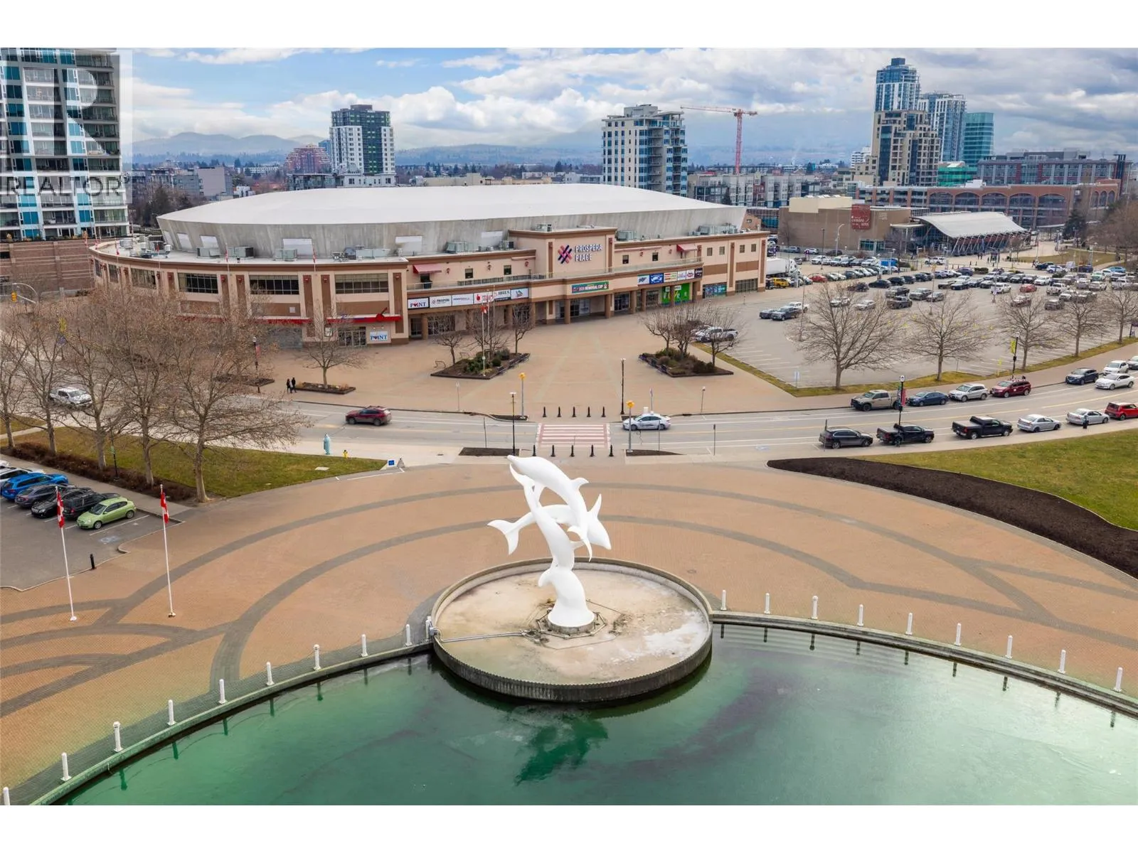Iconic waterfront living in the heart of Kelownaâs Cultural District! Perfectly positioned on the waterfront, this beautiful two bedroom two bathroom lakeview condo offers a front-row seat to the very best of downtown Kelowna living. Inside, expansive walls of windows flood the home with natural light and frame views of Okanagan Lake, the bridge, the boardwalk, and the iconic Dolphins fountain below. The thoughtfully designed floor plan blends comfort and function, with a generous living area, ideal for both everyday living and entertaining. The kitchen features bar-style seating, under-cabinet lighting, ample cabinetry, and abundant counter space, seamlessly opening to the dining area where lake and city views elevate every meal. Step outside to not one, but two private patios, perfect for morning coffee, sunset dinners, or a glass of Okanagan wine as the city lights come alive. The primary bedroom is a true retreat, complete with a walk-in closet and a private ensuite, while the second bedroom and full bathroom provide flexibility for guests, a home office, or family. The Dolphins offers resort-style amenities including an outdoor pool, hot tub, tennis court, fitness centre, and immaculately maintained grounds. Right outside your doorstep youâll find Kelownaâs Cultural District, with world-class dining, galleries, theatres, boutique shopping, and microbreweries just steps away. Walk to the beach, marina, yacht club, boardwalk, festivals, and waterfront parks, or simply enjoy the energy of downtown from your own balcony. Whether youâre seeking a full-time residence, a high-end urban retreat, or a premier waterfront investment, this is lakefront living at its most iconic, where culture, convenience, and the Okanagan lifestyle meet. (id:27476)