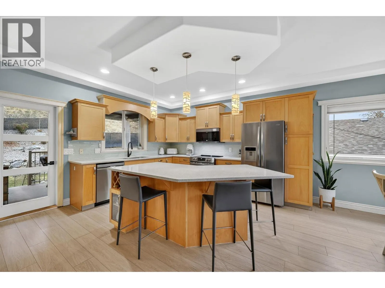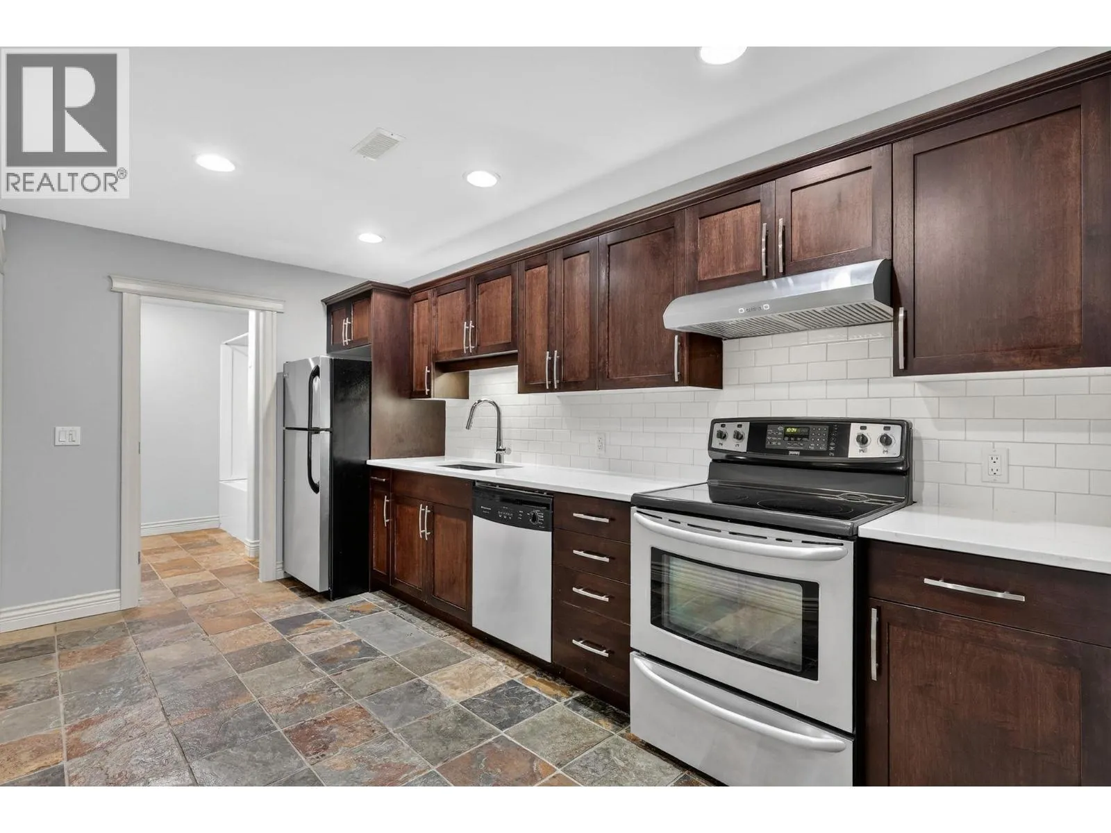 Imagine carefree mornings where your teen walks to school while you step out for a nature hike or latte at nearby Mission Village. This suited 5-bed, 3-bath Upper Mission home offers over 3,000 sq. ft. of immaculate living space with a renovated, fully fenced backyard. Since 2015, updates include lighting & plumbing fixtures, flooring, appliances, countertops, paint, & exterior improvements, with a new gas hot water tank in 2026. The grade-level walk-up floorplan features 9' ceilings, 3 beds & 2 baths on the main, plus a spacious living area opening to two patios. Enjoy sunrise views from the east-facing patio & evening BBQs with a peek-a-boo lake view from the west-facing covered patio leading to the gated yard. The open-concept kitchen offers a large quartz island, formal dining space, & casual eating area. A stone-surround fireplace adds subtle separation, while the primary bed includes a 5-pc ensuite, walk-in closet, updated window treatment, & patio access. Downstairs features a 4th bedroom or office, laundry, & direct access to a truck-sized garage, plus ample driveway parking. At the rear, a bright self-contained 1-bed + den in-law suite offers approx. 786 sq. ft., ideal for extended family or guests. Close to transit, Canyon Falls MS, OKM Secondary, & Mission Village at the Ponds with Save-On-Foods, Starbucks, Shoppers Drug Mart, banks, & daily conveniences. A safe spot for kids & you canât beat this location. View today. (id:27476)
