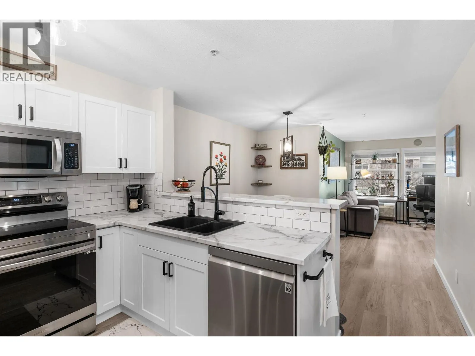 OPEN HOUSE Sat and Sun (Feb 7&8), 10am-12pm. Welcome to resort-style living at The Verve, one of Glenmore's most sought-after communities. This updated 1 bedroom plus den, 1 bathroom condo offers a bright and functional layout, perfect for first time buyers, investors, or those looking to enjoy the Okanagan lifestyle. The kitchen has been tastefully renovated with modern finishes, while new Life Proof vinyl flooring has been installed throughout the home. Are you worried about storage? Extra built-in storage throughout the home adds a fresh, contemporary feel and the unit also comes with 1 storage locker too. The bedroom is very specious and has enough room for a king bed. This unit comes with 1 parking stall big enough to park a F150. Step outside and enjoy The Verve's exceptional amenities including an outdoor pool, beach volleyball, BBQ area, bike storage, and landscaped grounds. Centrally located in Glenmore, you are just minutes from downtown Kelowna, UBCO, shopping, restaurants, parks, and transit. Give us a call to book your showing today! (id:27476)