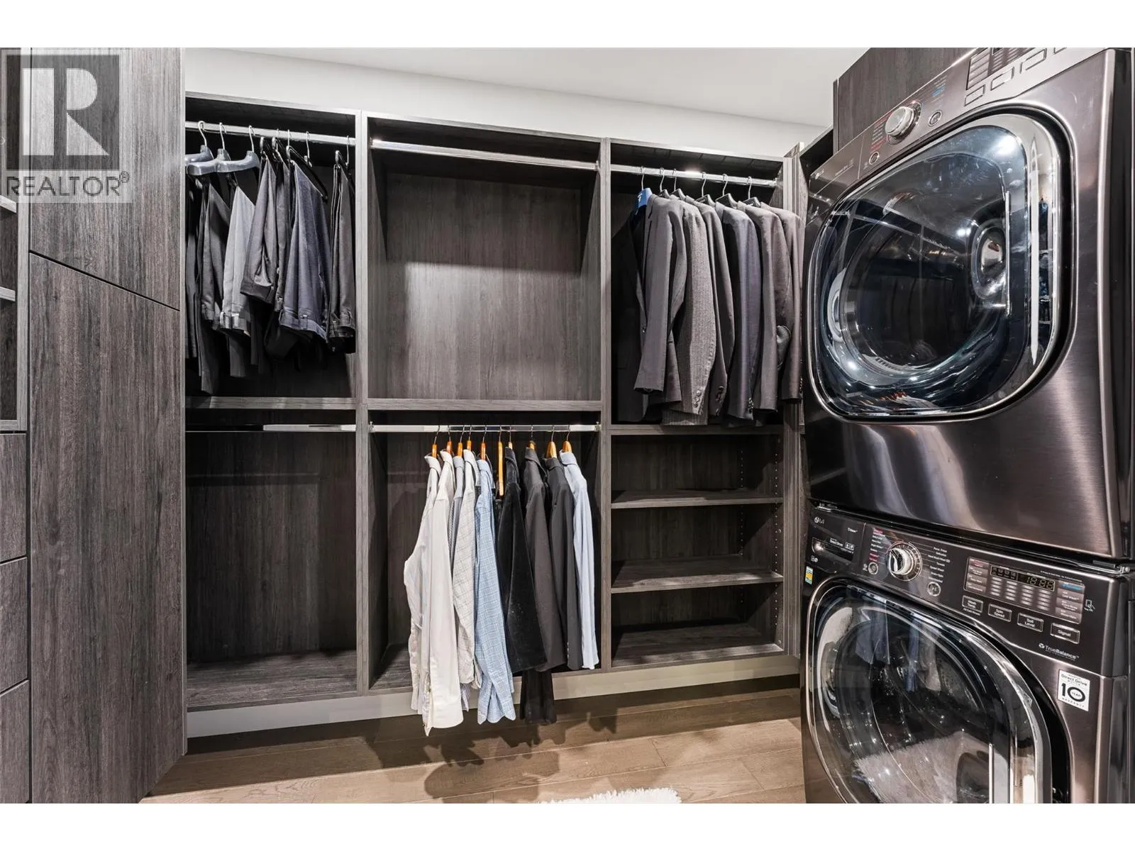 Set on a quiet no-through road in McKinley Beach, this contemporary residence offers a rare sense of privacy paired with uninterrupted views of Okanagan Lake. Designed across 3 levels, the home showcases soaring ceilings, wide-plank hardwood floors, and expansive walls of glass that capture sweeping lake and mountain vistas. The main level is anchored by a dramatic great room with a wood-burning stove and floor-to-ceiling windows, seamlessly connecting to the chefâs kitchen. Here, an eight-burner Fisher & Paykel gas cooktop, two Bosch wall ovens, oversized island and full butlerâs pantry with built-in appliances makes entertaining effortless. The dining area opens to a covered deck with glass railings, in-ceiling heaters, integrated speakers, an inviting space to enjoy the view year-round. Two bedrooms with a shared bath located on this level. Upper floor is dedicated to the primary retreat, featuring a private patio with hot tub, a spa-inspired five-piece ensuite with freestanding soaker tub, and a walk-in closet with custom built-ins. A rooftop patio with turf expands outdoor living. Below, the lower level offers a fourth bedroom, mudroom, and a versatile recreation room with two oversized garage doors, ideal for a home gym. Two car garage with epoxy floors, potential for a 4 car garage. Hunter Douglas electronic blinds, Lutron lighting, and Honeywell Home security. Residents enjoy access to McKinleyâs amenity centre with pool, gym, hot tub, pickleball courts, & more. (id:27476)