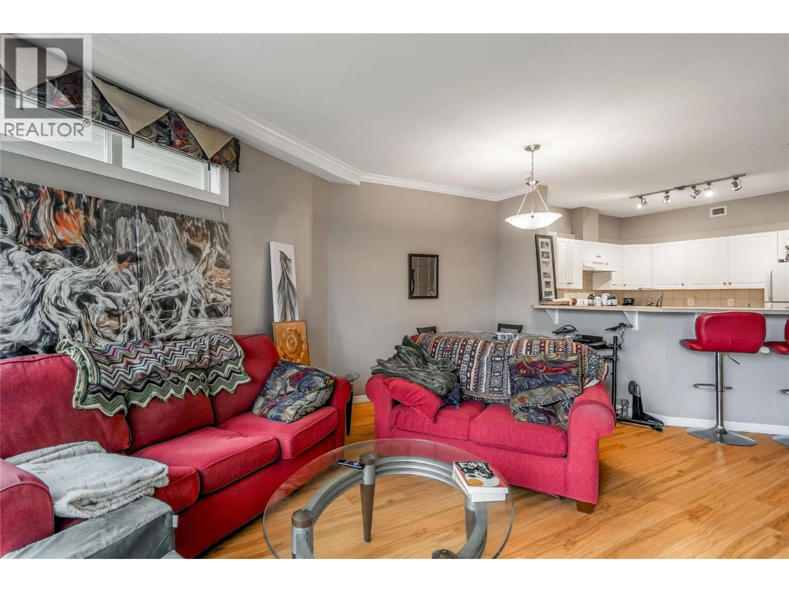 Welcome to #435-1088 Sunset Drive! - Great value for this 2 bed, 2 bathroom corner unit in Discovery Bay! Features a split floor plan which is ideal for roommates and those looking for privacy. The open concept kitchen has a functional layout, breakfast bar, living and dining room areas. The generous sized deck has great views of the outdoor pool and recreation areas below. Discovery bay is a luxury lakefront complex with quick access to the lake, has heated swimming pool, hot tubs, club house and even an awesome gym! One secure underground parking space, Heating and cooling is included in strata, owner just pays electricity and internet/tv! Live the downtown lifestyle in this amazing community! Located in the South building. Make sure this one is on your list. (id:27476)