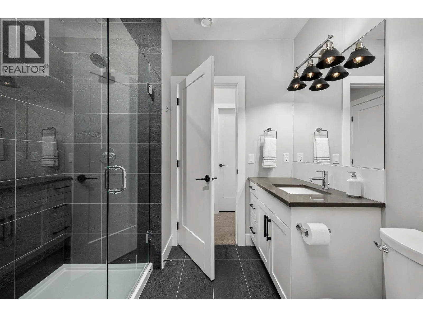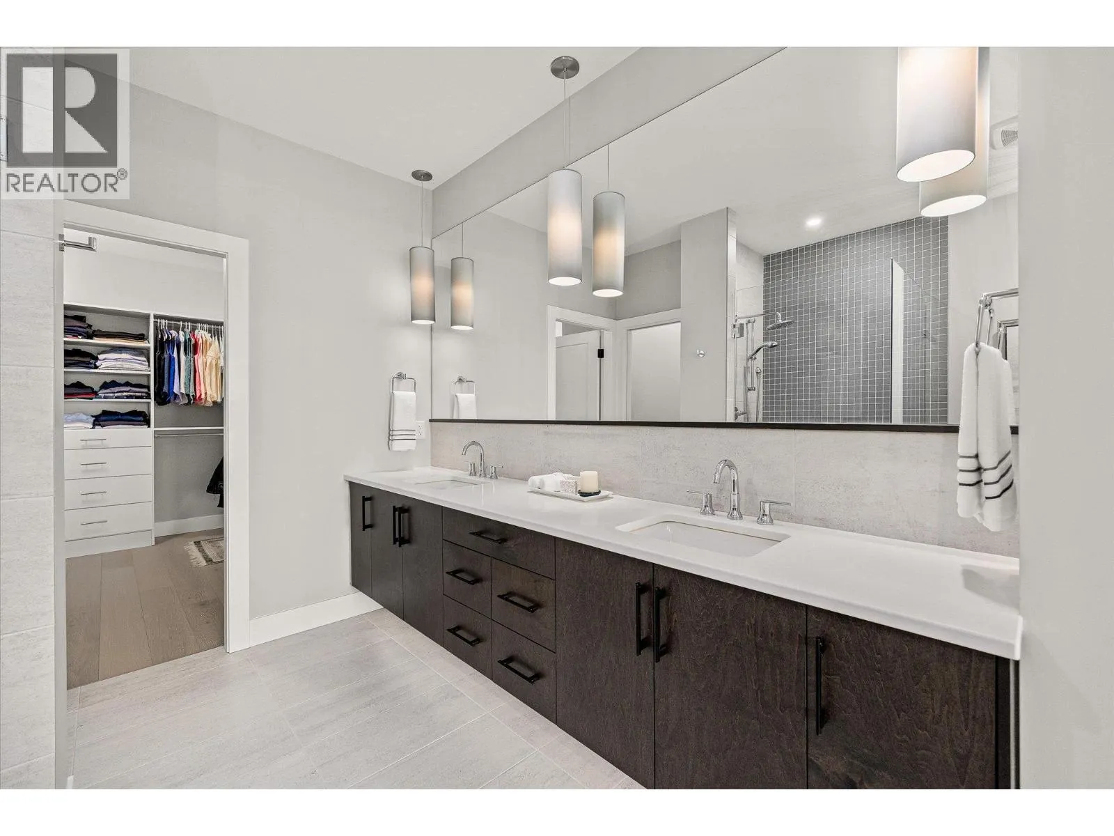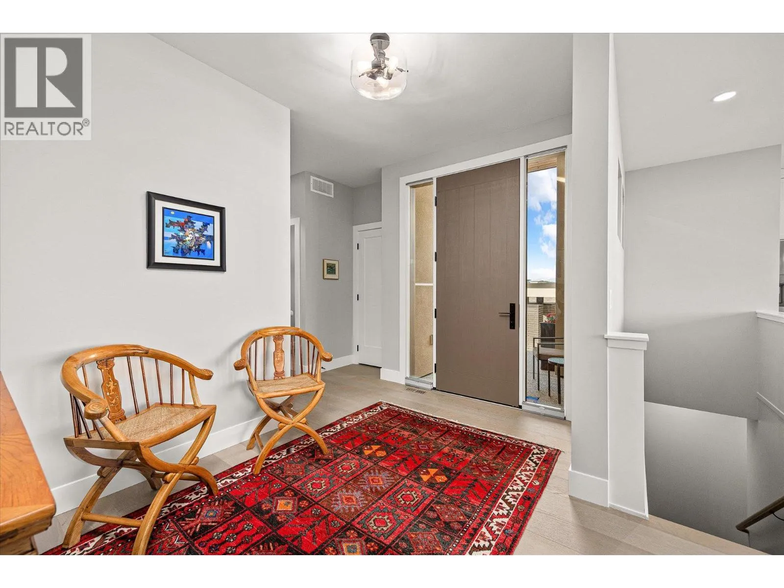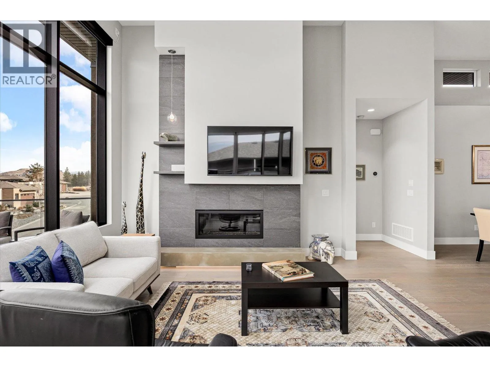 Welcome to Kelownaâs Upper Mission, where this 2020-built 1/2 duplex pairs easy living w/gorgeous Okanagan Lake views from both the main level & the walk-out lower level. A rancher w/walk-out basement design, this home is ideal for empty nesters or an executive couple who want comfort, style and low maintenance without giving up space. With over 2700sqft of living space, the main level is bright & inviting with a great-rm layout, soaring ceilings, a cozy gas f/p, and a wall of windows framing the stunning lake views - complete with automated blinds. The kitchen is made for entertaining, featuring a large quartz sit-up island, quality millwork, premium appliances and a walk-in pantry with coffee bar. Step outside to the lakeview patio with covered & uncovered seating, glass railings, sunshades, exposed aggregate and a gas hookup - perfect for summer evenings & morning coffee. The primary bdrm enjoys lake views & a spa-inspired 5-piece ensuite w/heated floors, soaker tub, custom tiled shower, dual vanities and a large closet with custom built-ins. Downstairs, the bright walk-out level features 10' ceilings & offers a spacious family rm with/gas f/p, a king-size bdrm w/cheater ensuite + office/den that could double as a guest bdrm. Finished with a brick & stucco exterior, low maintenance, irrigated landscaping, dbl garage w/EV rough-in & extras like radon mitigation, b/I vac., & security system, this home delivers relaxed, lock & leave living with an elevated Upper Mission vibe! (id:27476)