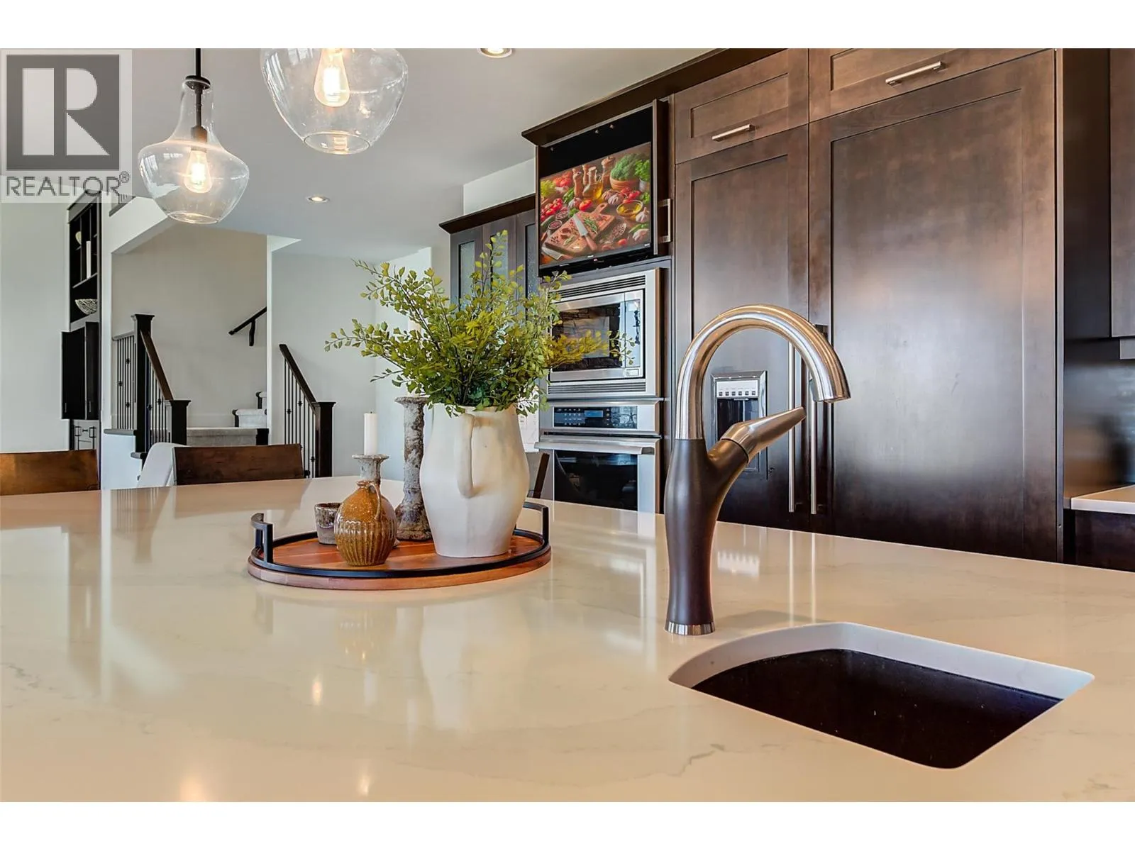 Former TOMMIE AWARD WINNING HOME, 180 degree unobstructed lake views, location, luxury, and low maintenance Synlawn. Extensively updated 5 bed executive home in Upper Mission with expansive lake views, designed to accommodate the active family and those who love to entertain. Over height ceilings, premium Kolbe wood windows, detailed finishes, hardwood floors, custom cabinetry, 2-sided stone fireplace in vaulted great room. Designer Kitchen with Thermador, Miele, and Sub-Zero appliances for those who like to cook and entertain. Generous room sizes, all 5 bedrooms have ensuites or adjacent bathrooms. Large master bedroom suite is situated on its own level for ultimate privacy with large walk in closet, and adjoining spa-like Ensuite, Thermasol Steam Shower, private balcony, and separate heat pump for ultimate comfort. On the lower level you'll find the ""Entertainment centre"", radiant in floor heat, Home Gym, massive stepped media room, king sized recreation room with high ceiling, full Bar, pool table area, access to inground salt water pool with key operated safety cover, and putting green. Control 4 home automation system with programable lighting, and sound system throughout. 3 car heated garage with suspended slab for all the toys, outside RV storage/parking with water, sewer, and power hook ups! New heat pump, furnace, and washer & dryer. Near schools, Mission Village shopping, parks, walking trails. Meas. approx. (id:27476)